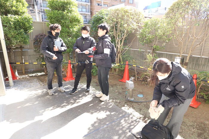 この日は、足場、長尺シート、タイルをメインに現地で確認を行いました。