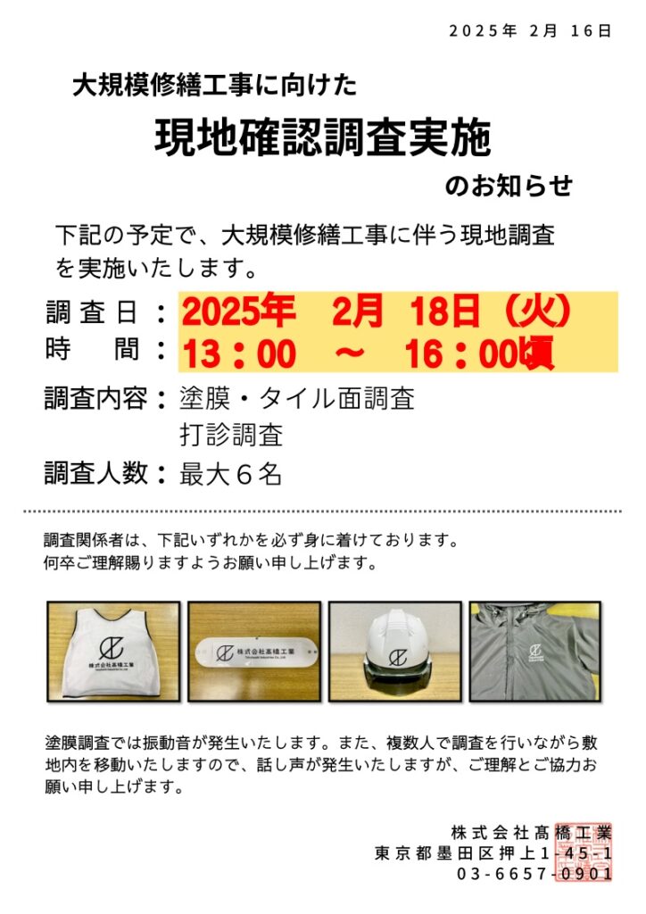 2月16日 理事会 2025.02.17その他 HOME ブログ その他 2月16日 理事会 理事会に参加し、1月31日の現場調査の報告及び、3月1日の工事説明会に向けた打ち合わせを行いました。 また、次回は2月18日(火曜)13時から調査を行います。 その他 アスベスト調査+タイルサンプリング 網戸の取り外し 関連記事一覧 弊社のカフェがTVで紹介されます。 2025.03.21その他 4月29日(火曜・祝)第2回こども稲荷例大祭が開催されます。 2025.04.16その他