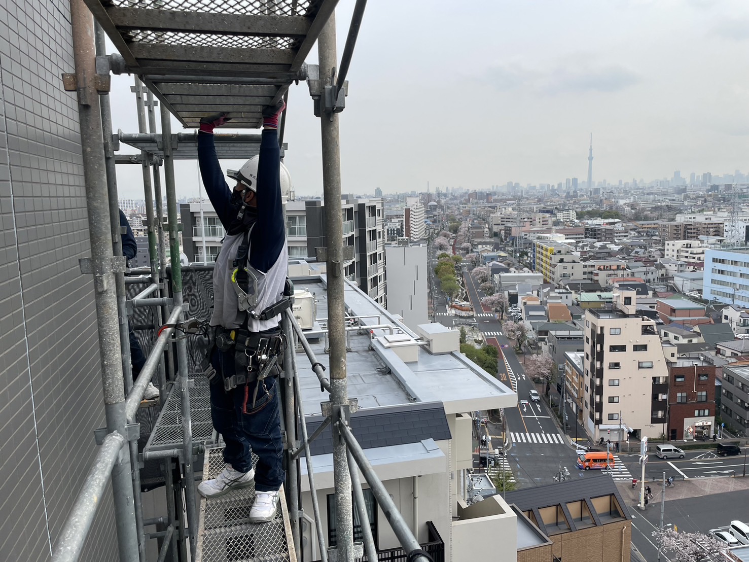 4月11日 金曜日 2025.04.11工事情報 HOME ブログ 工事情報 4月11日 金曜日 仮設足場組立 A棟 西面、南面は屋上まで足場組み上がりました。 すべての3,4,5号室の方のバルコニーへの出入りが始まります。 シーリング工事 バルコニー内のシーリングの打ち替え工事が始まりました。 窓周りが打ちたてのため触らないように注意して下さい。 打ちたてのお部屋には窓に注意喚起を貼っております。 下地調査工事 バルコニー内の下地調査になります。 打診棒と目視によりタイルと塗装壁のヒビ、剥がれ、浮き、欠損等調べております。 4月12日 予定 ・仮設足場組立 ・シーリング工事 ・下地調査 工事情報 4月10日 木曜日 4月12日 土曜日 関連記事一覧 4月3日 木曜日 2025.04.03工事情報 6月13日 金曜日 2025.06.13工事情報 5月27日 月曜日 2025.05.27工事情報 5月17日 土曜日 2025.05.17工事情報