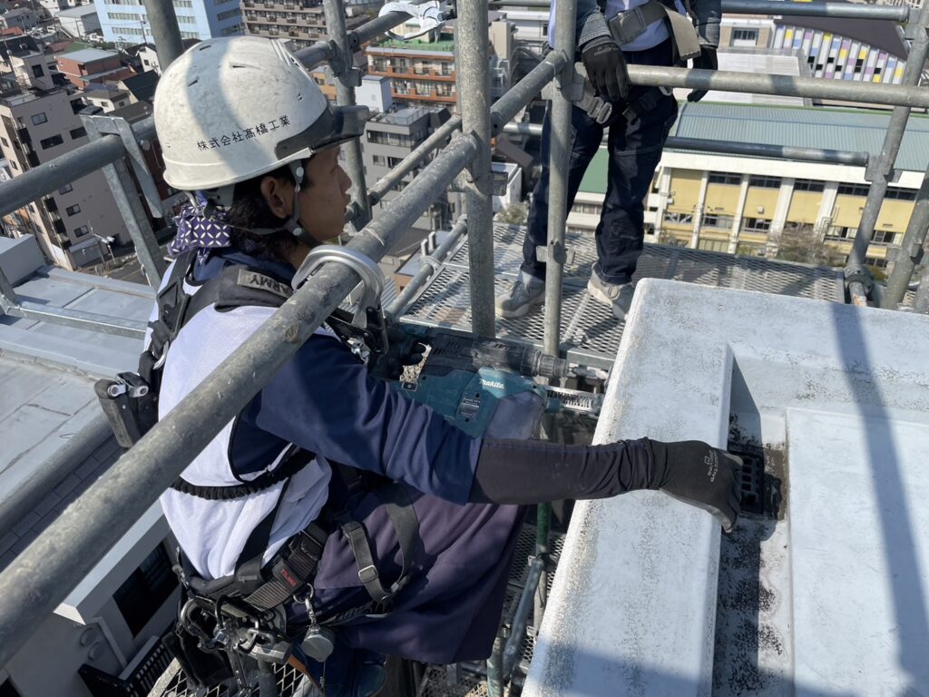 シーリング作業は天候の変化に敏感になりながら作業箇所を状況に応じて変更しております。