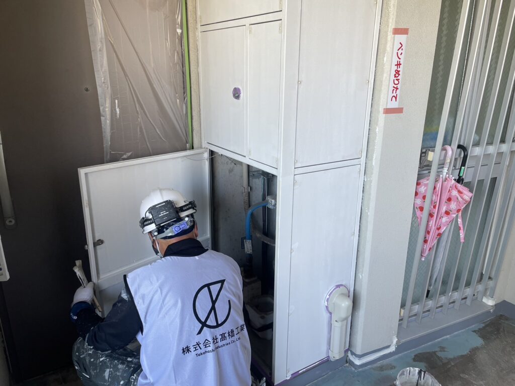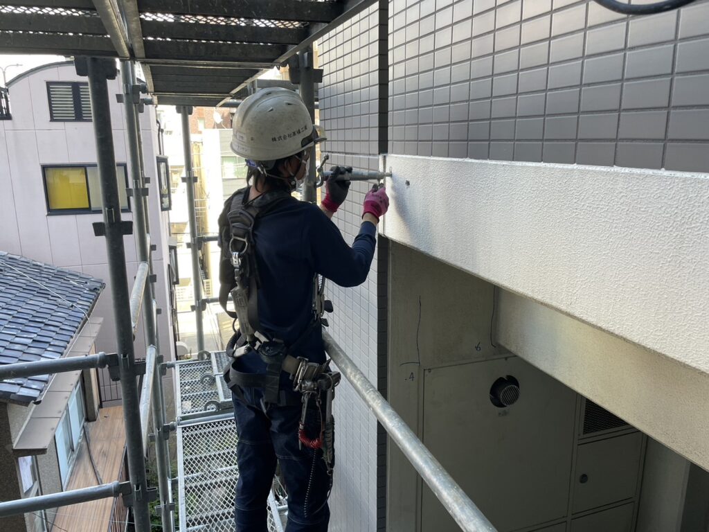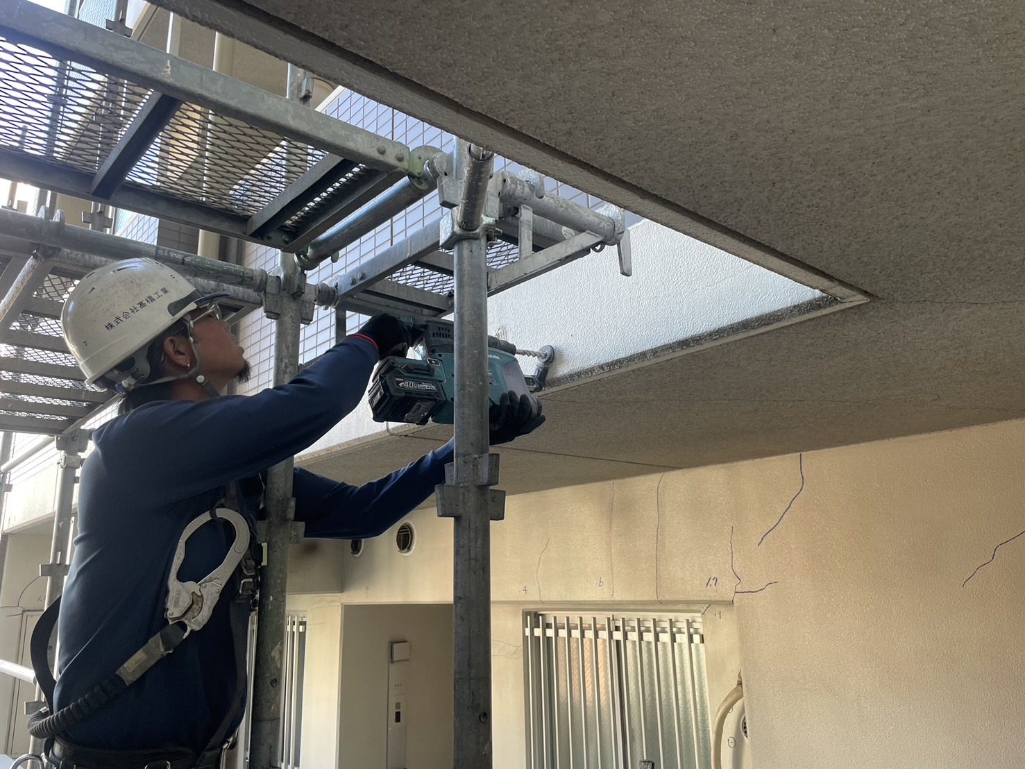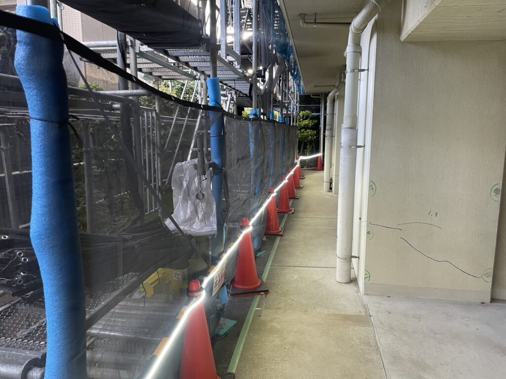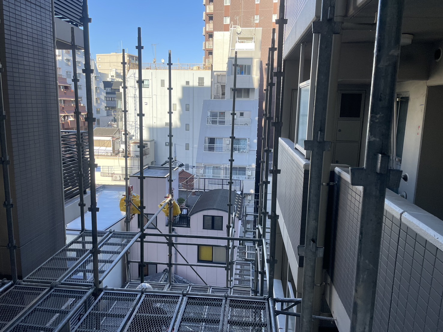バルコニー内のシーリング撤去は2階~13階まで作業が進んでいます。