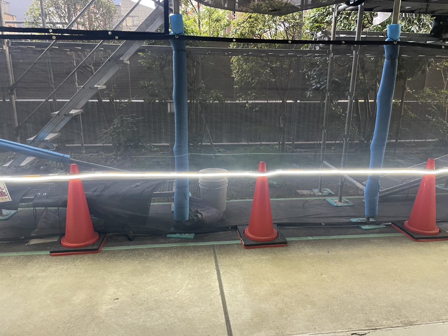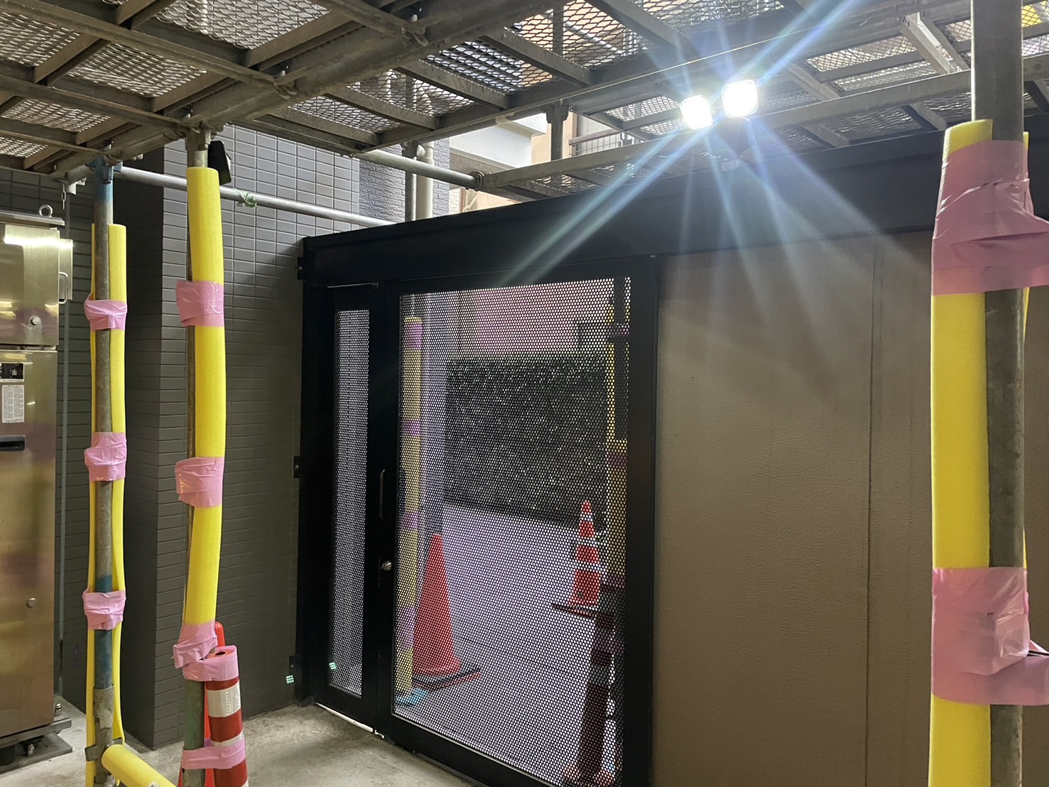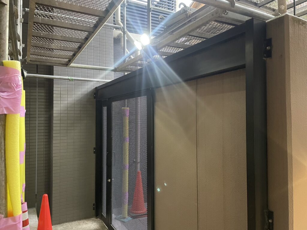 駐輪場の出入口、南面足場にライトを設置いたしました。