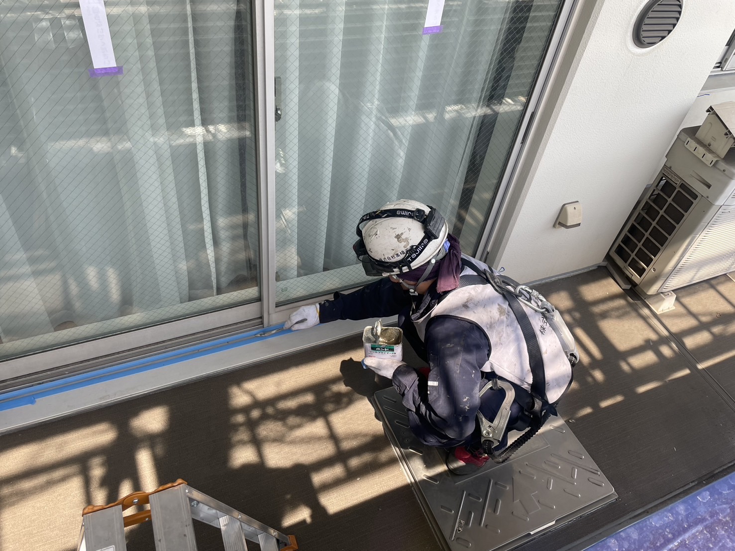 引き続きバルコニー内の撤去、プライマー塗布、をおこないました。
