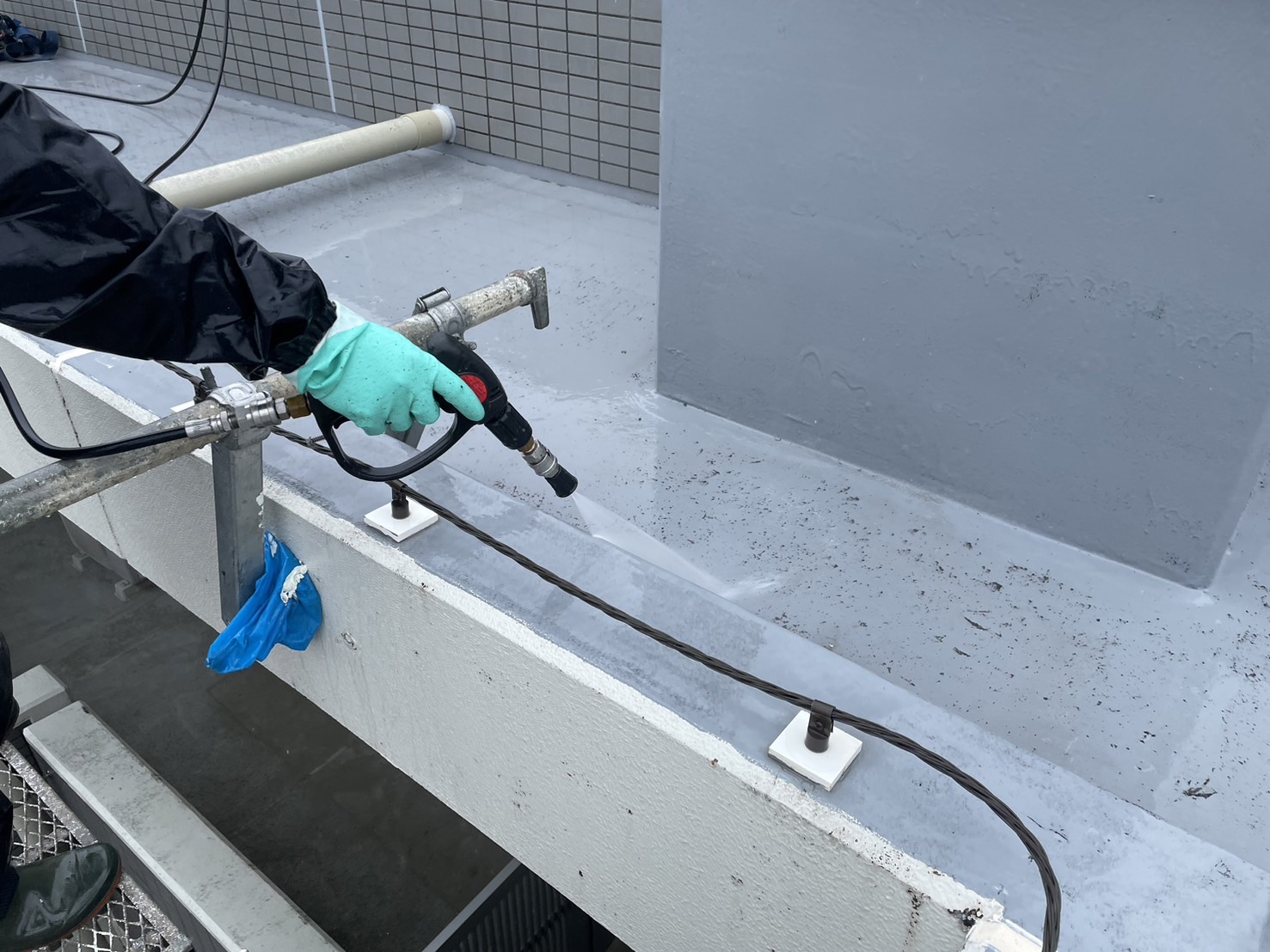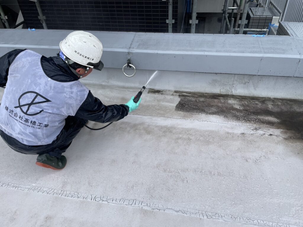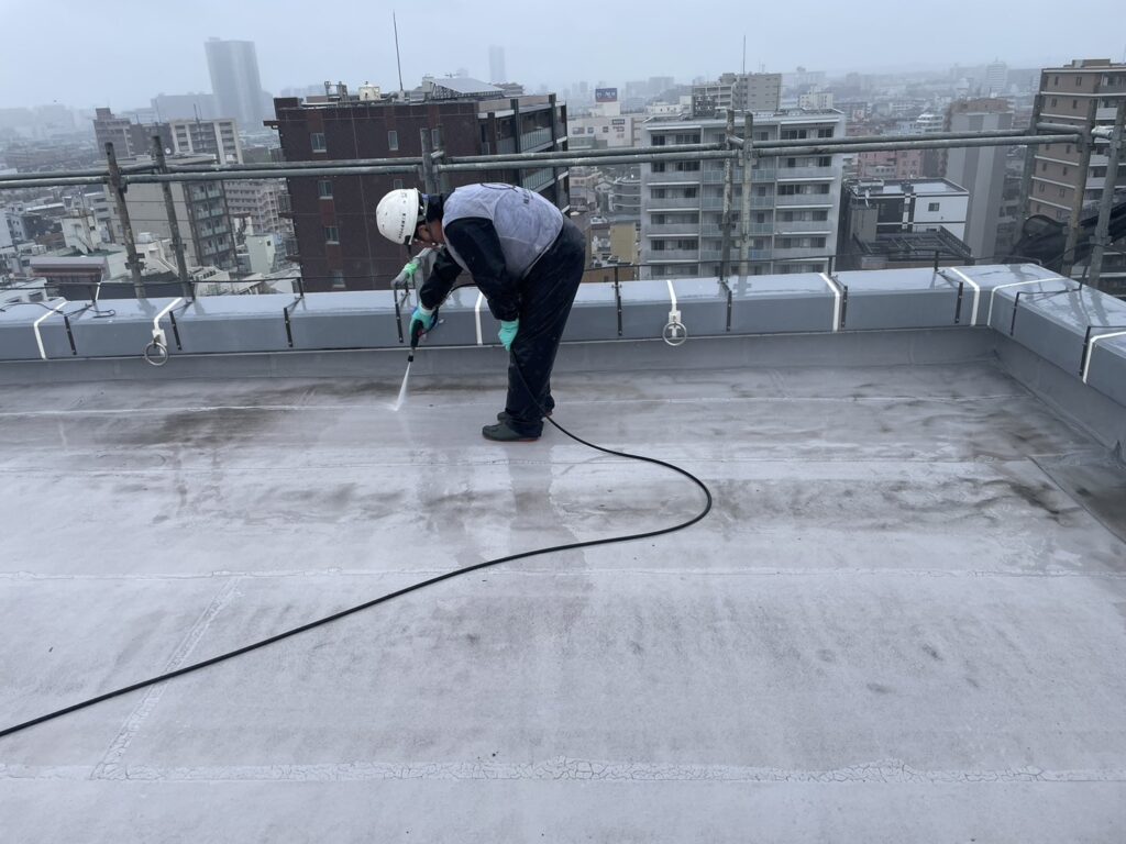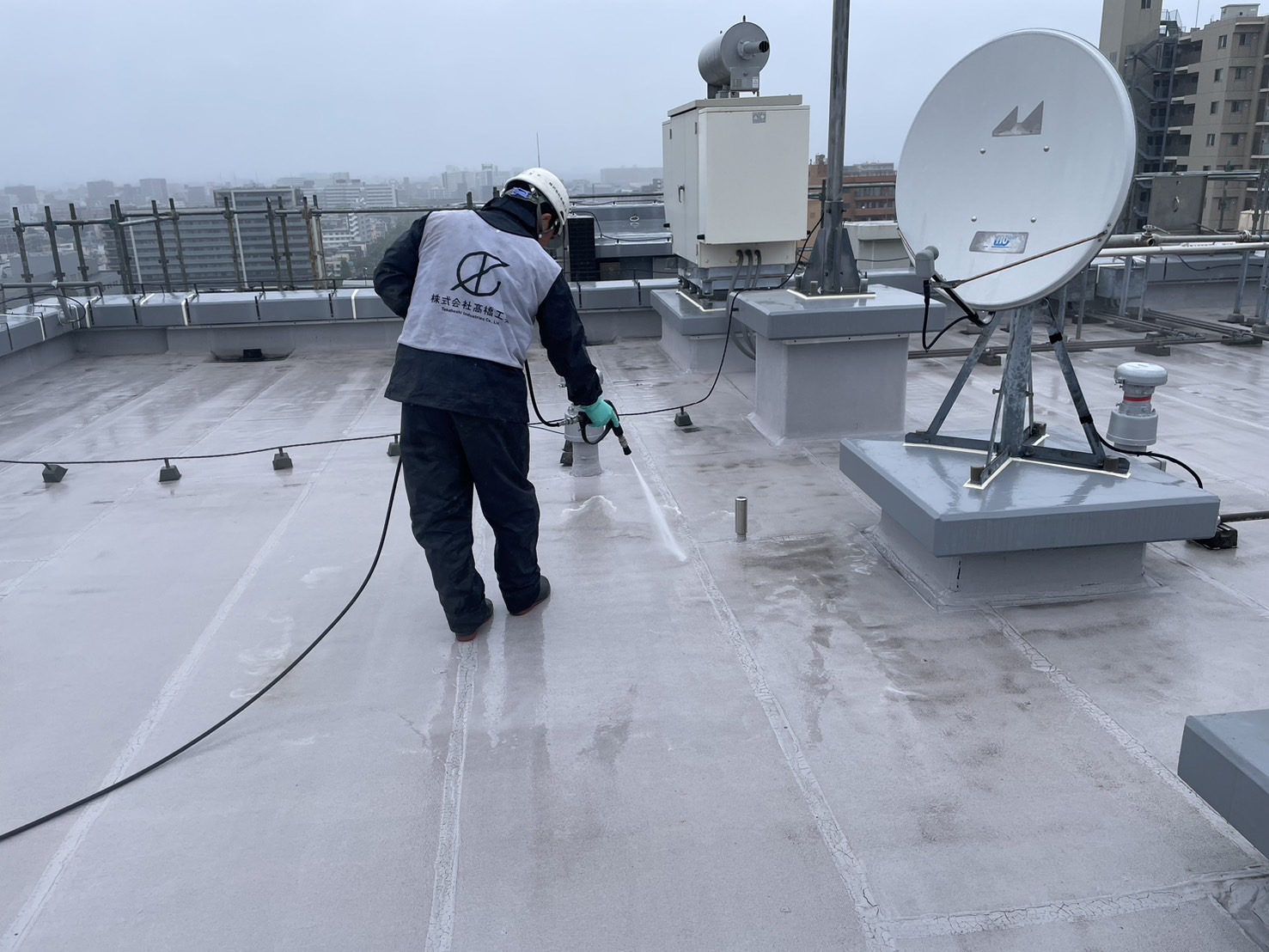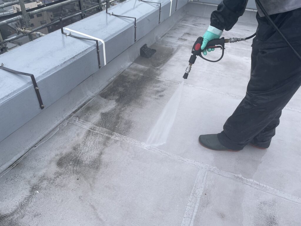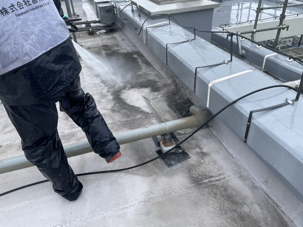 屋上、庇、パラペット、排水溝の高圧洗浄工事をおこないました。