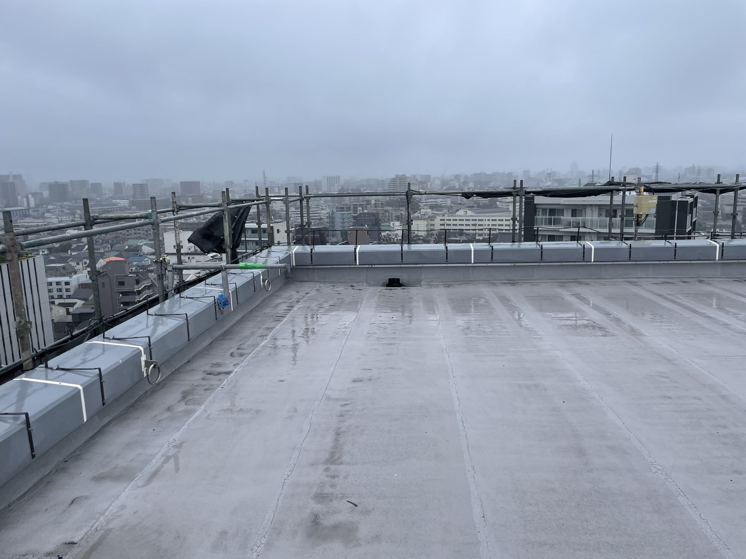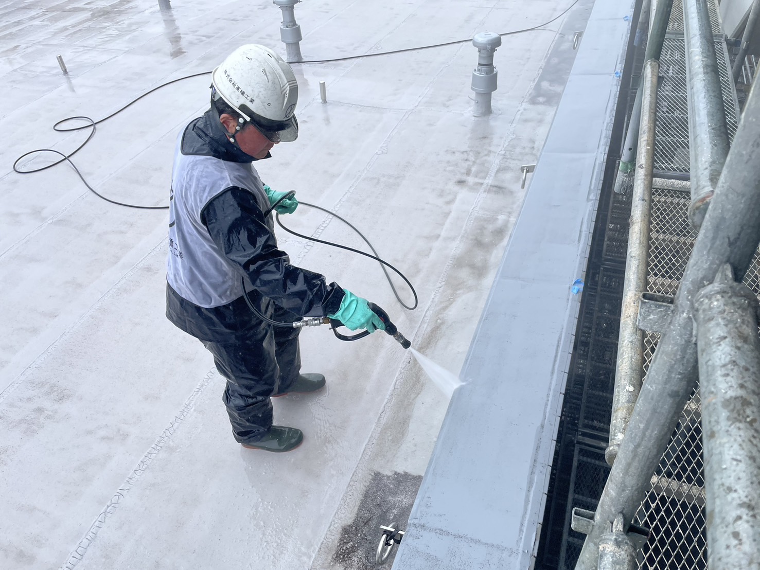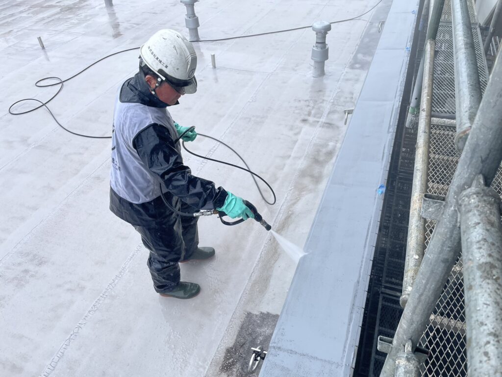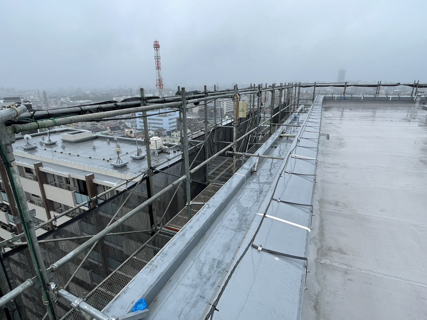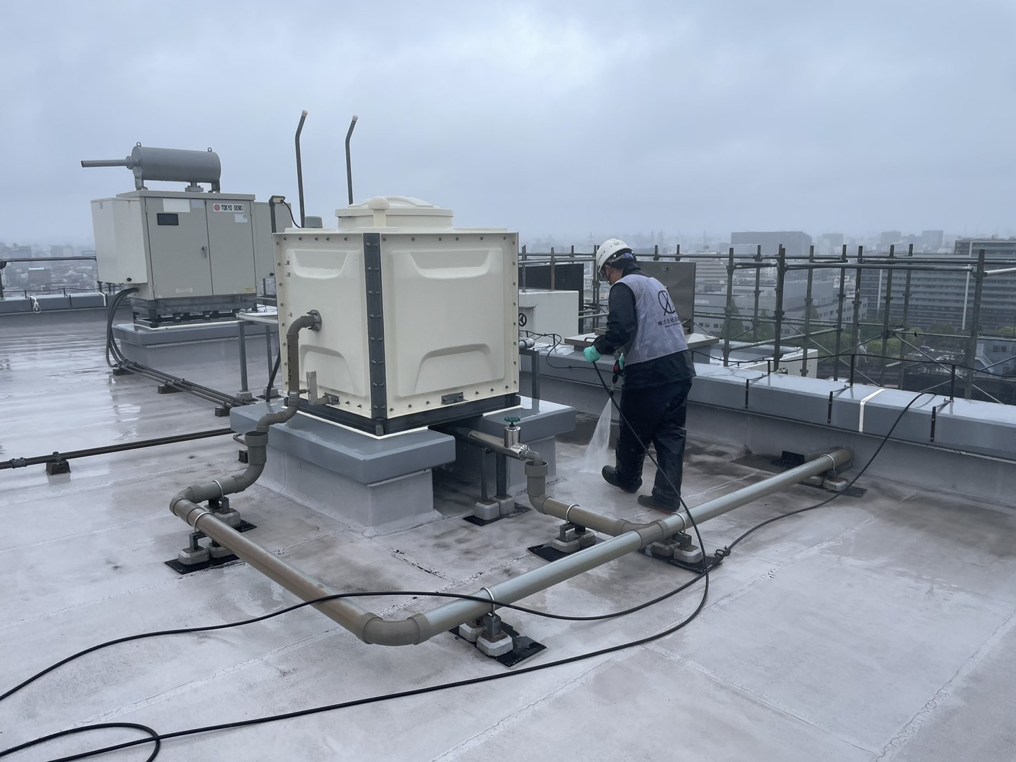 屋上、庇、パラペット、排水溝の高圧洗浄工事をおこないました。