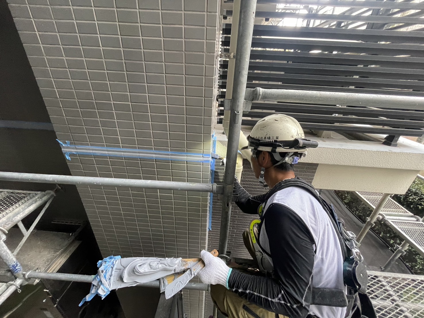 A棟北面、B棟南面の外壁のシーリング打ち替えをおこないました。