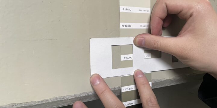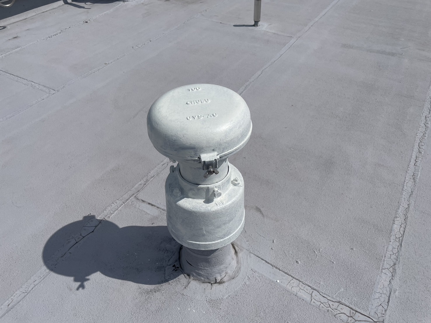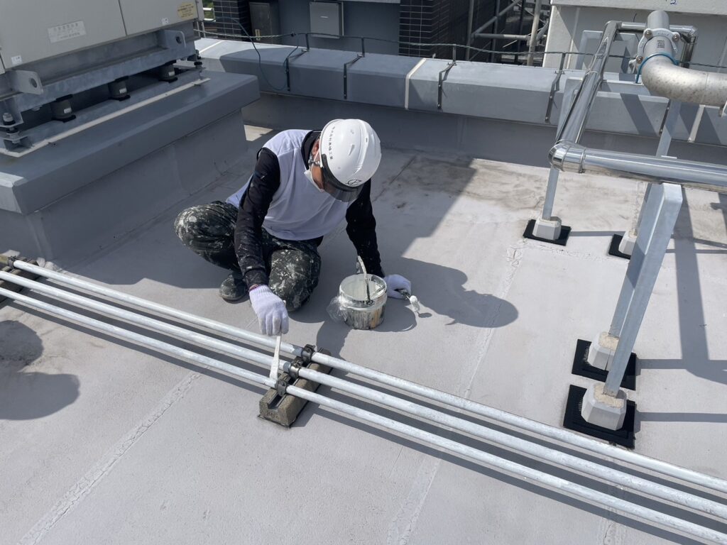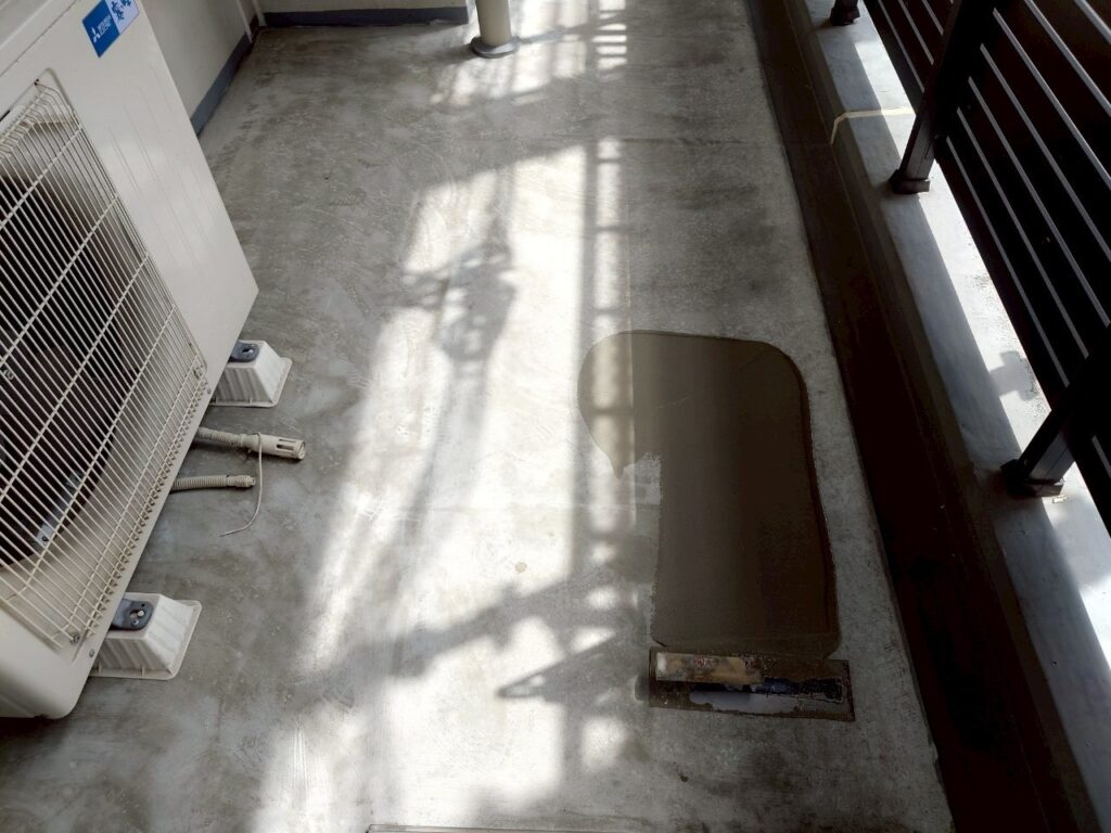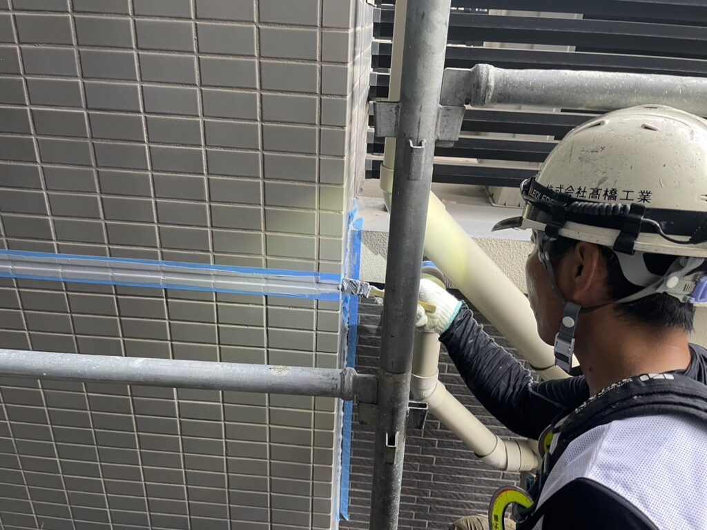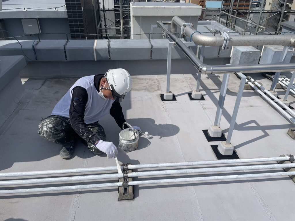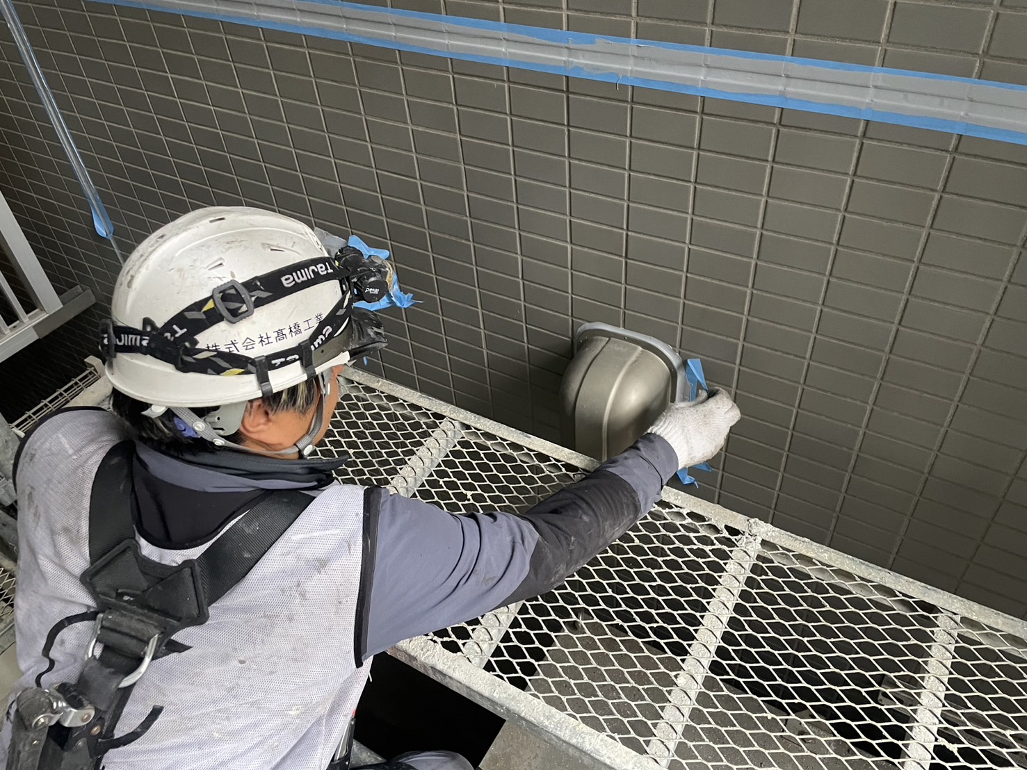 屋上、共用部のケレン(やすり掛け)、錆止め(下塗り)、中塗りをおこないました。