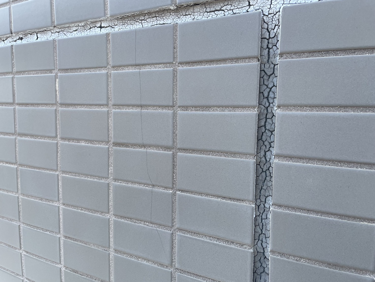 外壁のシーリングは経年劣化等によりゴムの伸縮せいがなくヒビ割れをおこしている箇所が多かったです。
