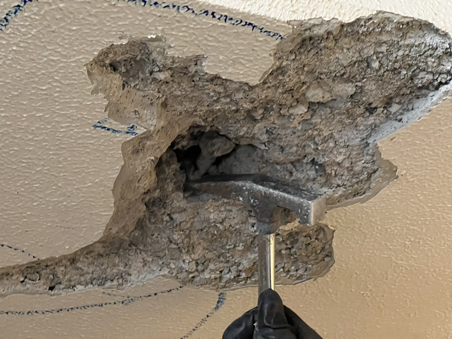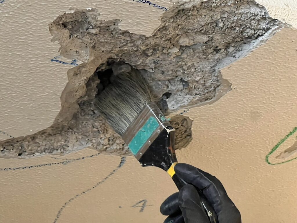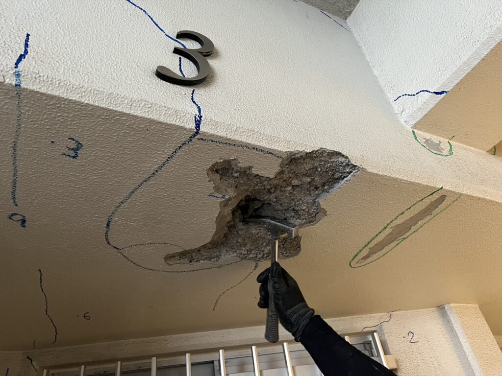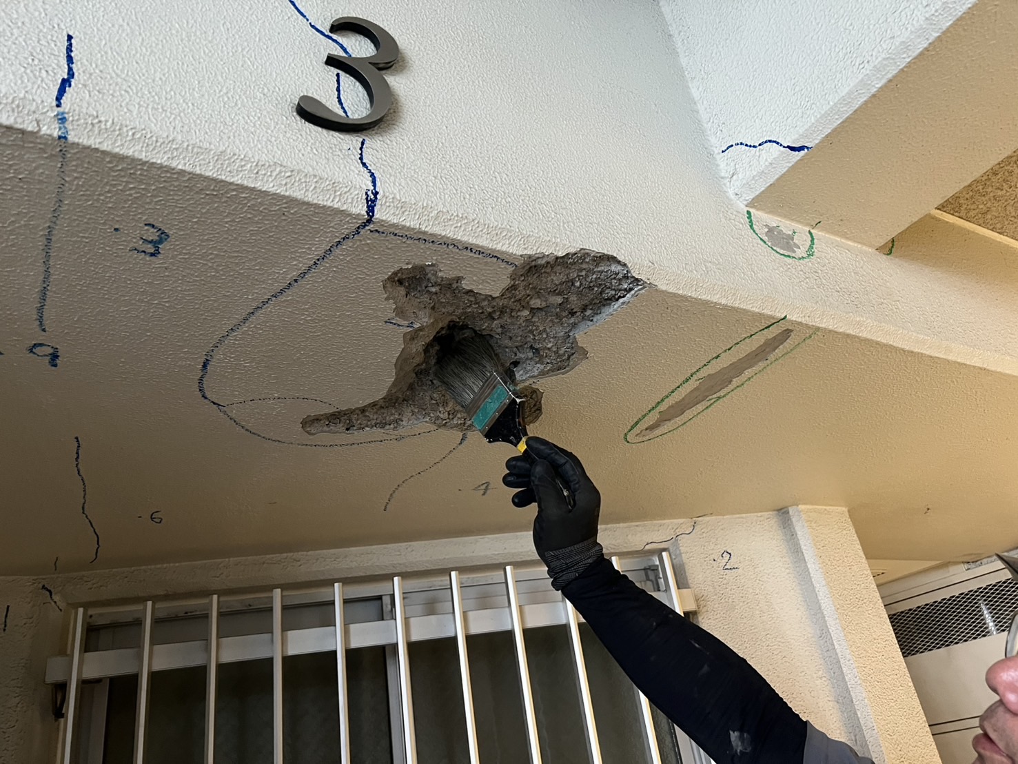 共用部壁内の骨材が多く強度が少し弱いジャンカの補修をおこないました。