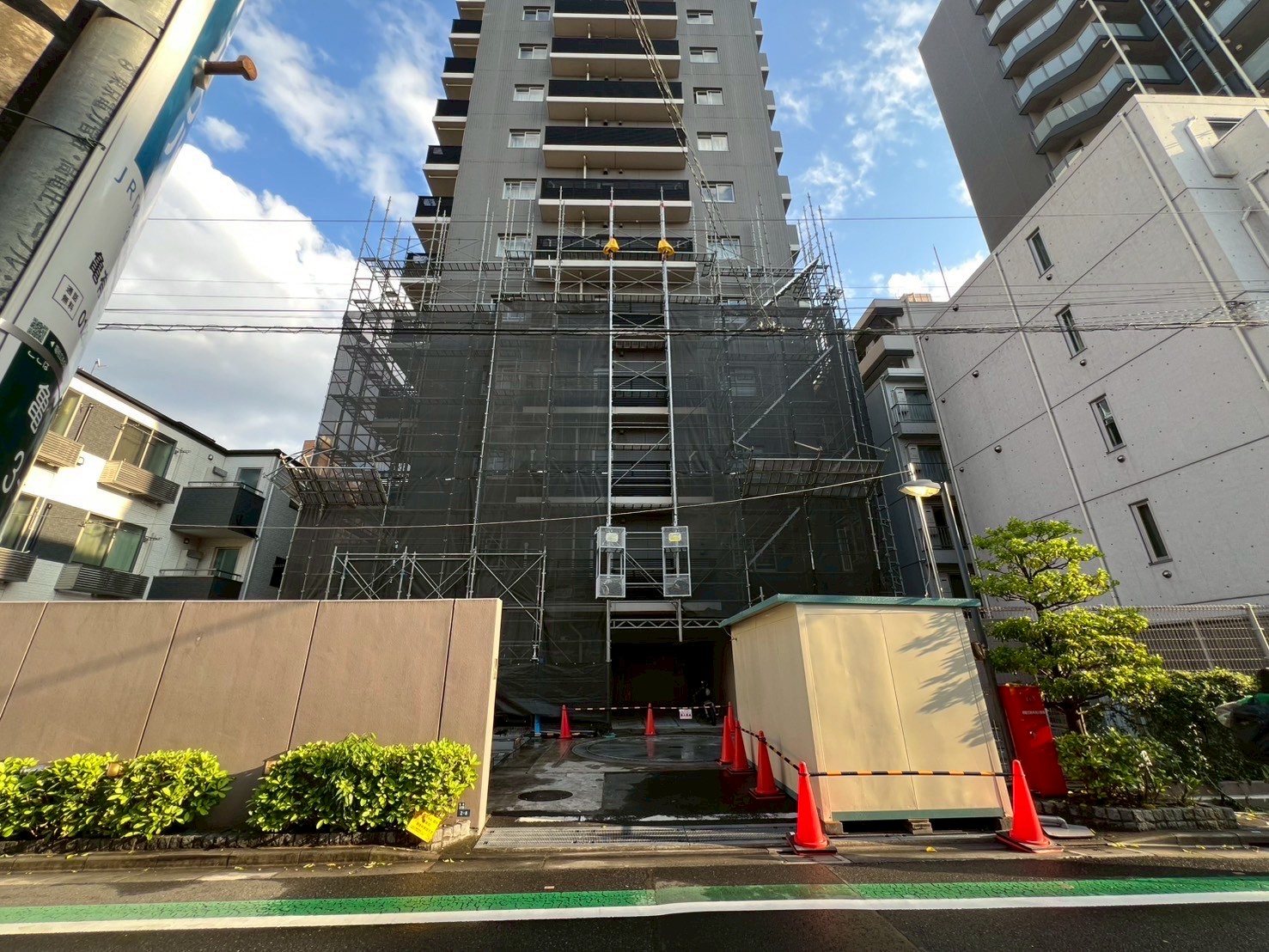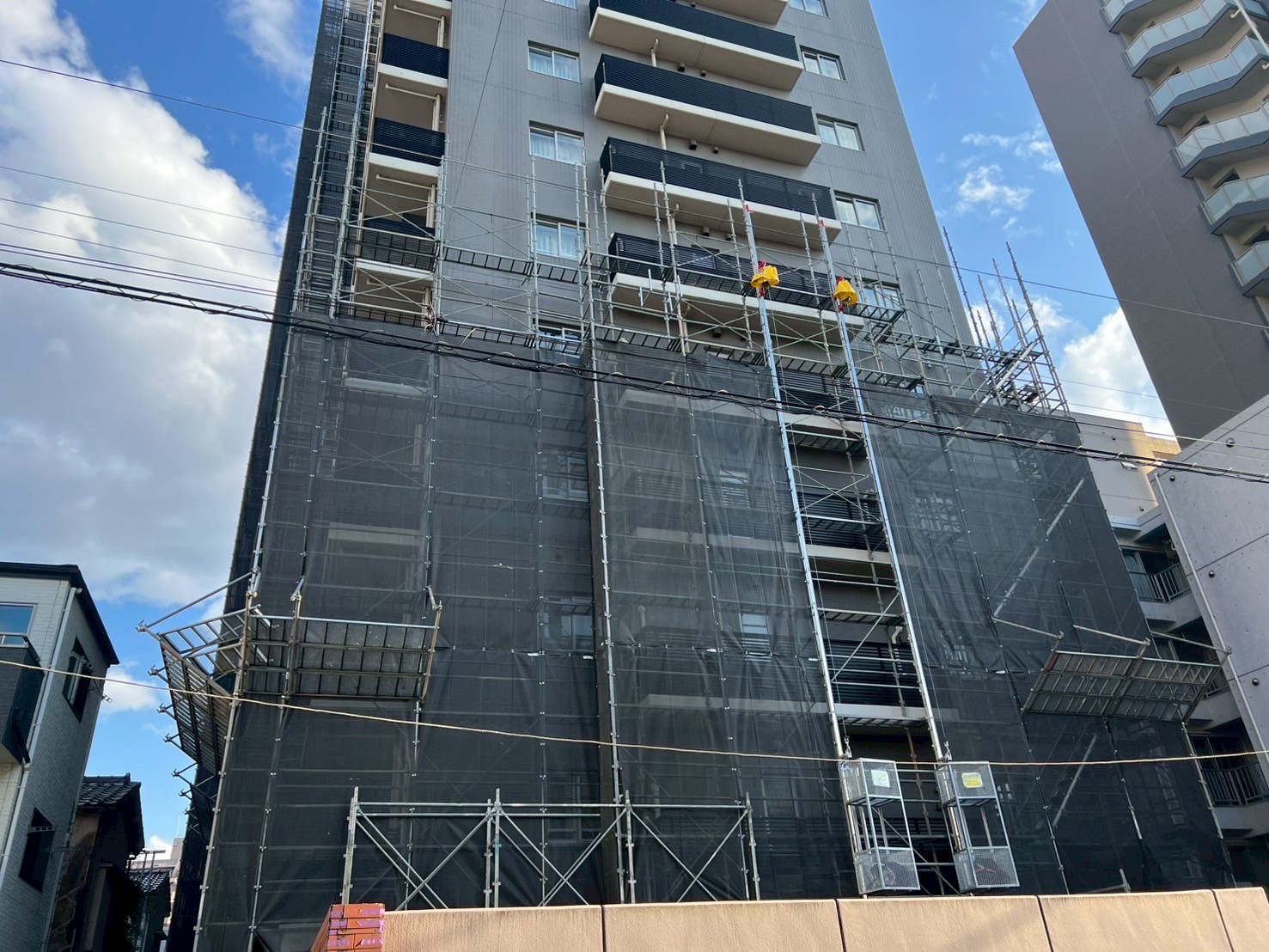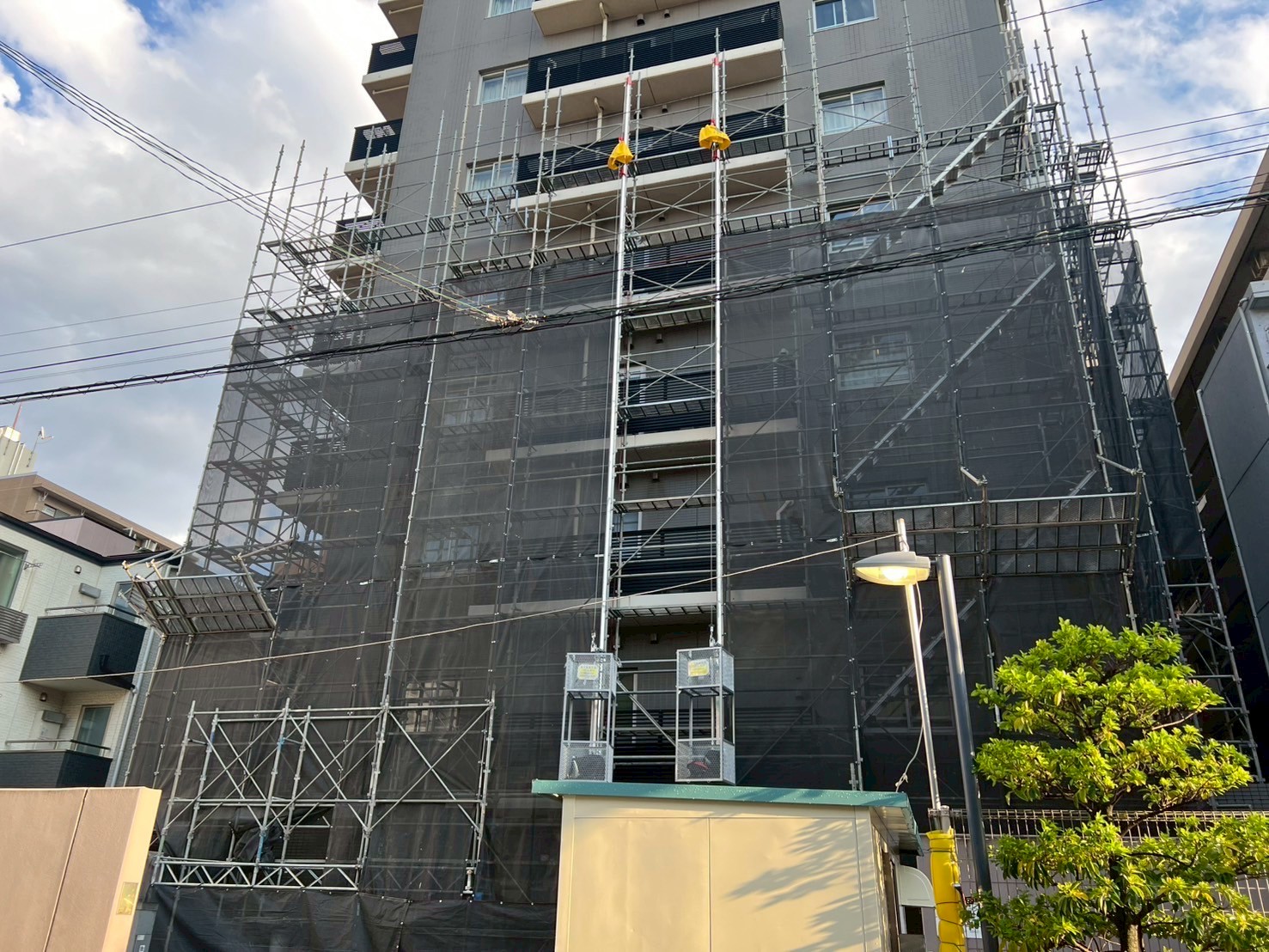 1階エントランス周り(エントランスポーチ)に朝顔(落下防止養生)を設置いたしました。