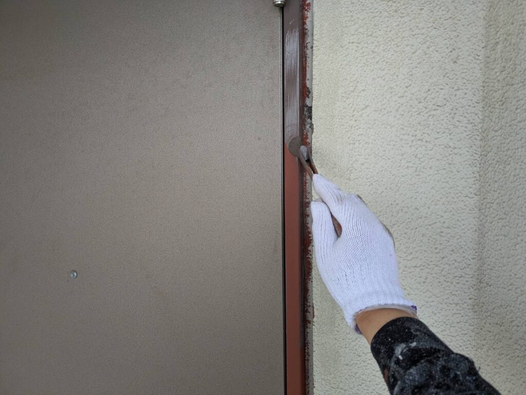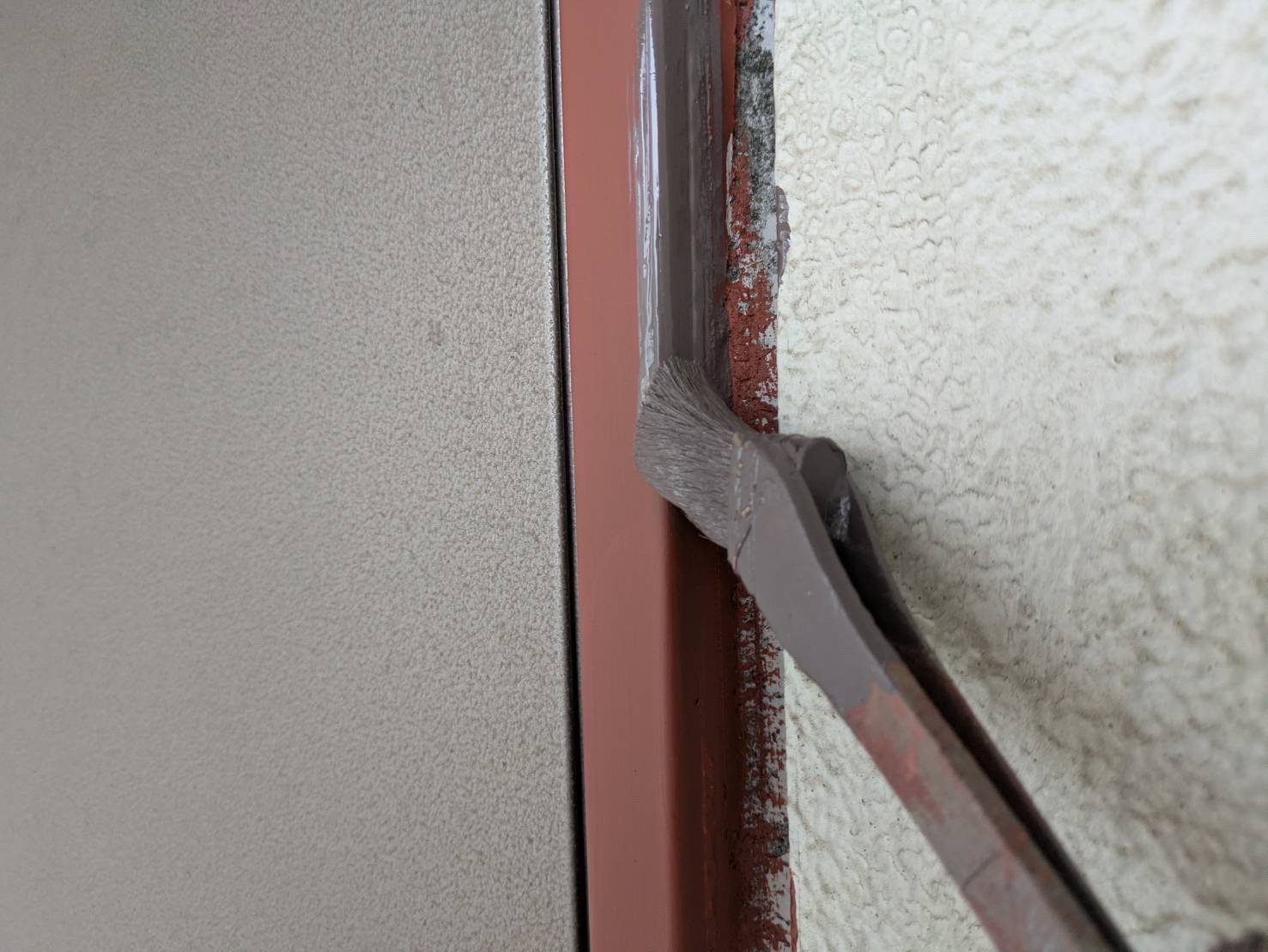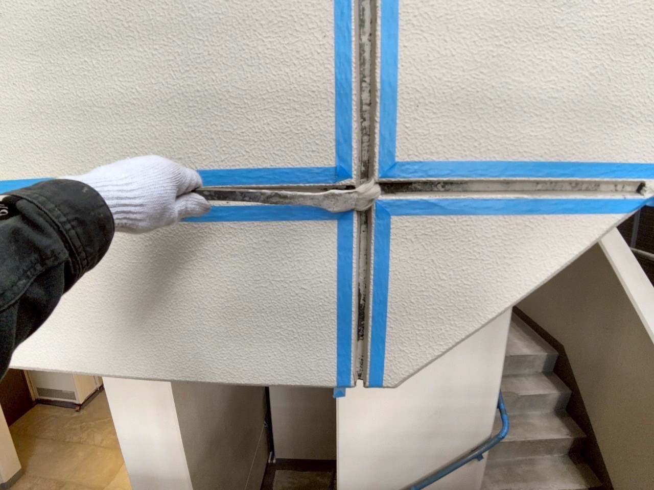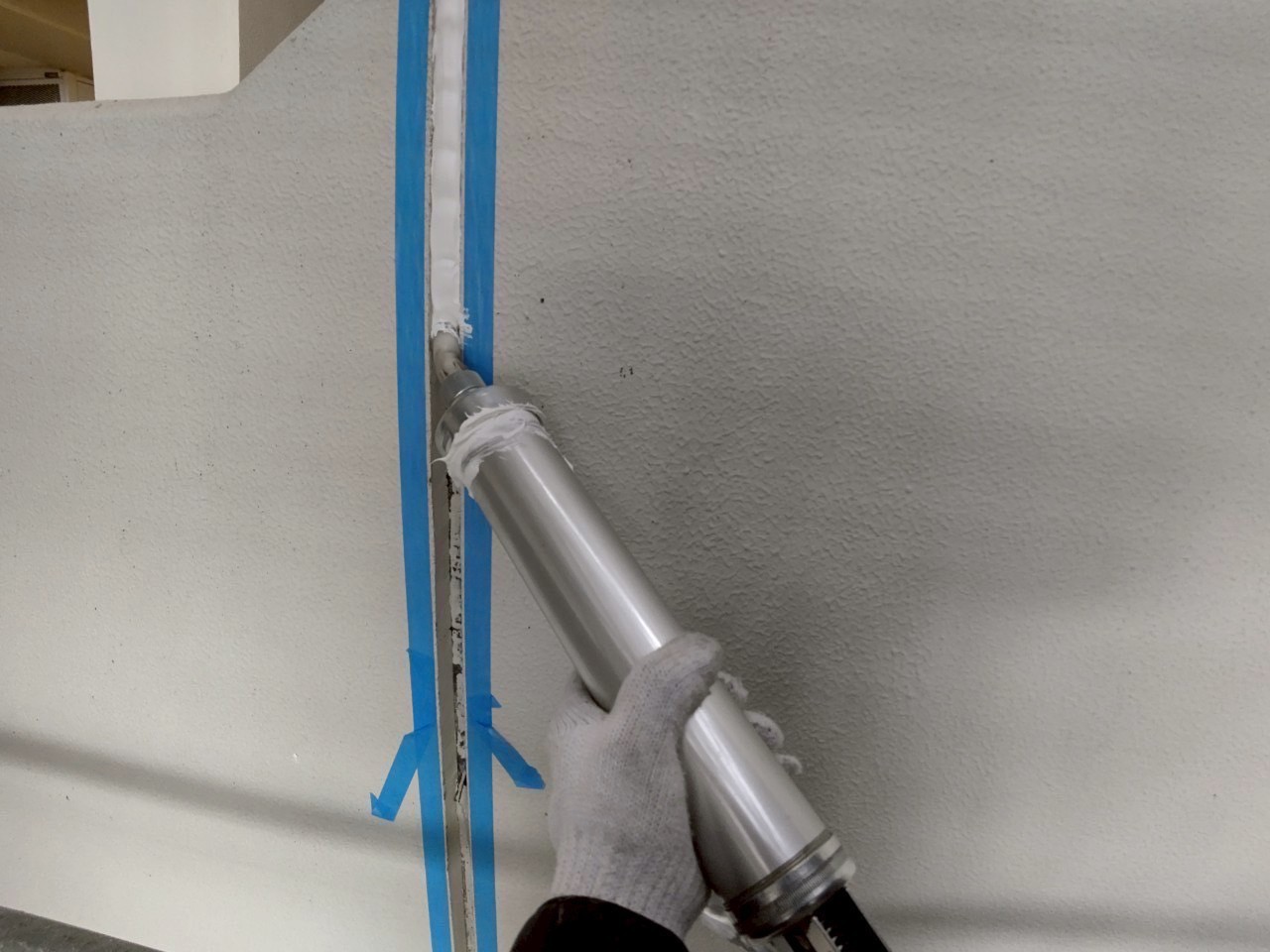 A棟北面外壁と共用部鉄部枠のシーリング補修をおこないました。