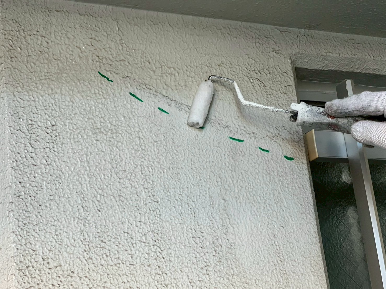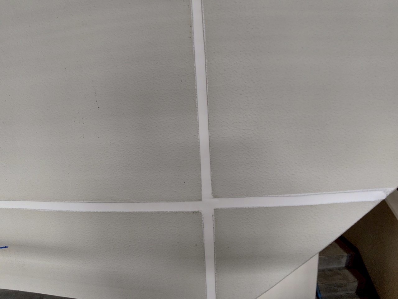 上塗りの仕上げは廊下にの天井、内壁の塗装後になります。