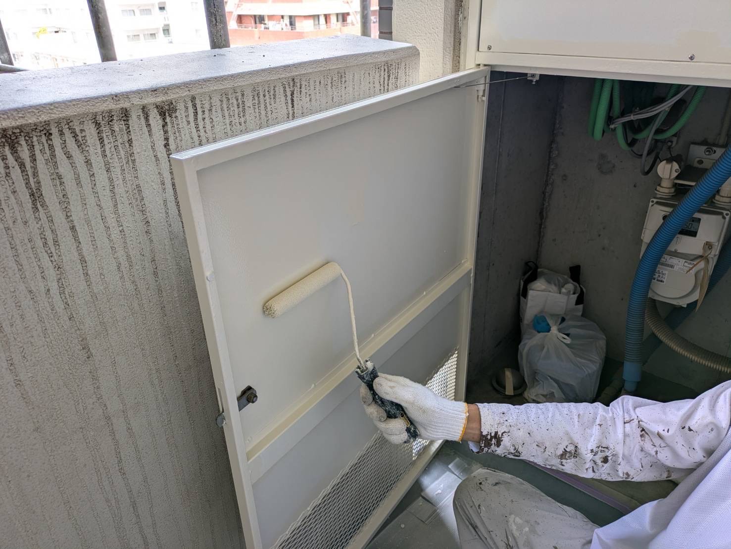 共用部の鉄部塗装は中塗り作業までをゴールデンウイークまでに完了を予定しております。