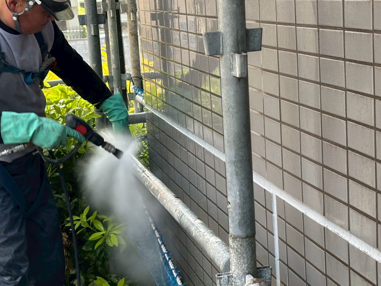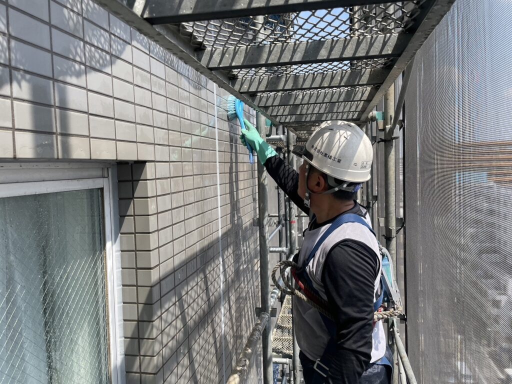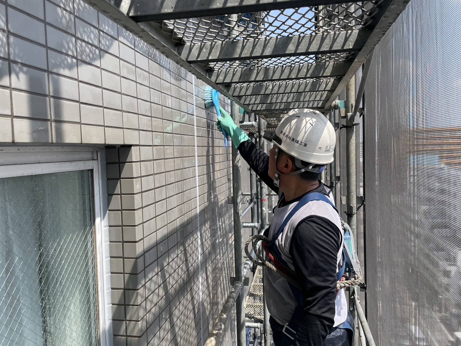 タイルに経年劣化によりついた汚れや、タイル目地から出てきた炭酸カルシウム等による白い汚れを