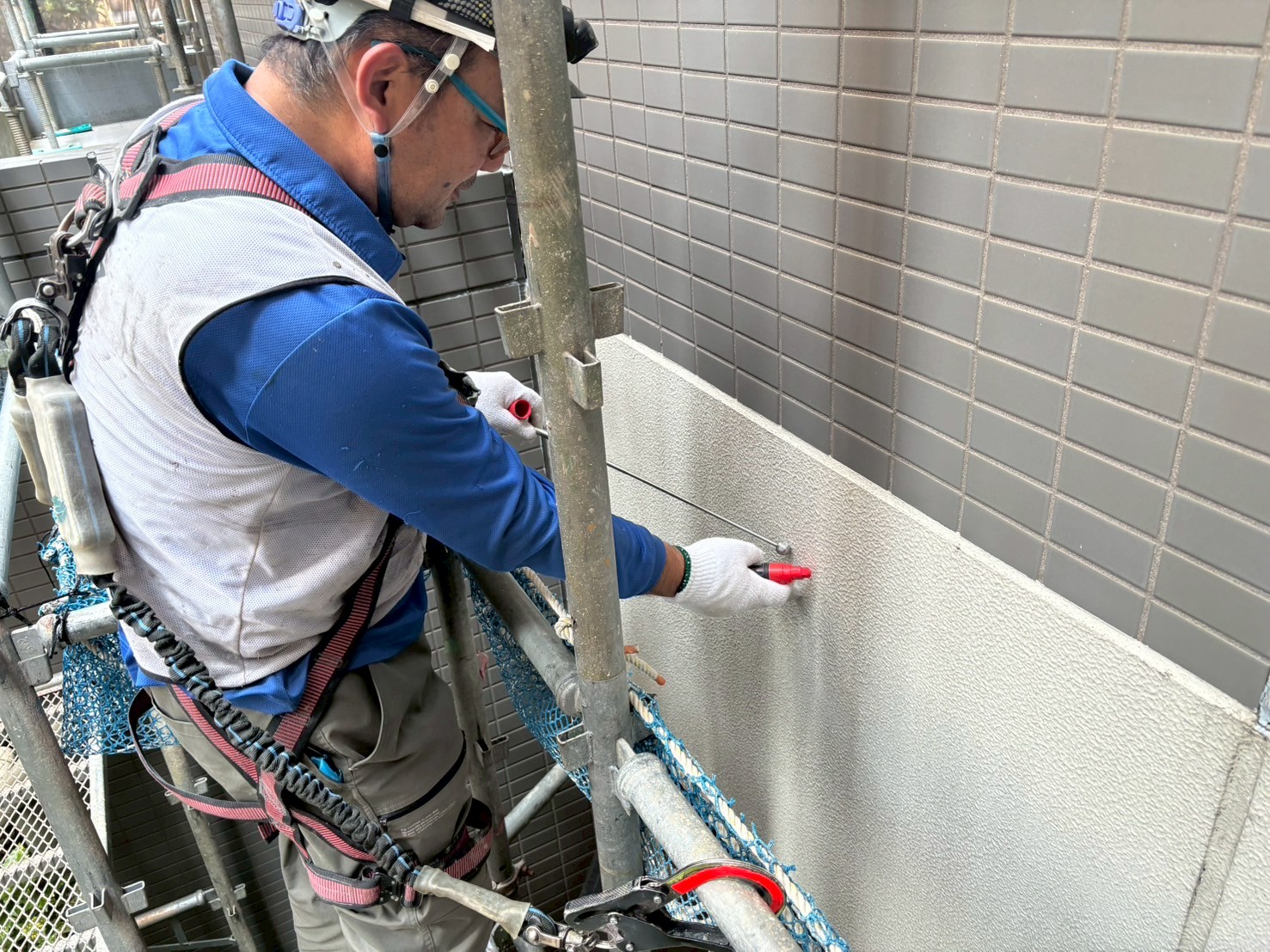 補修が必要な箇所マーキングをし図面に落としていく作業になります。