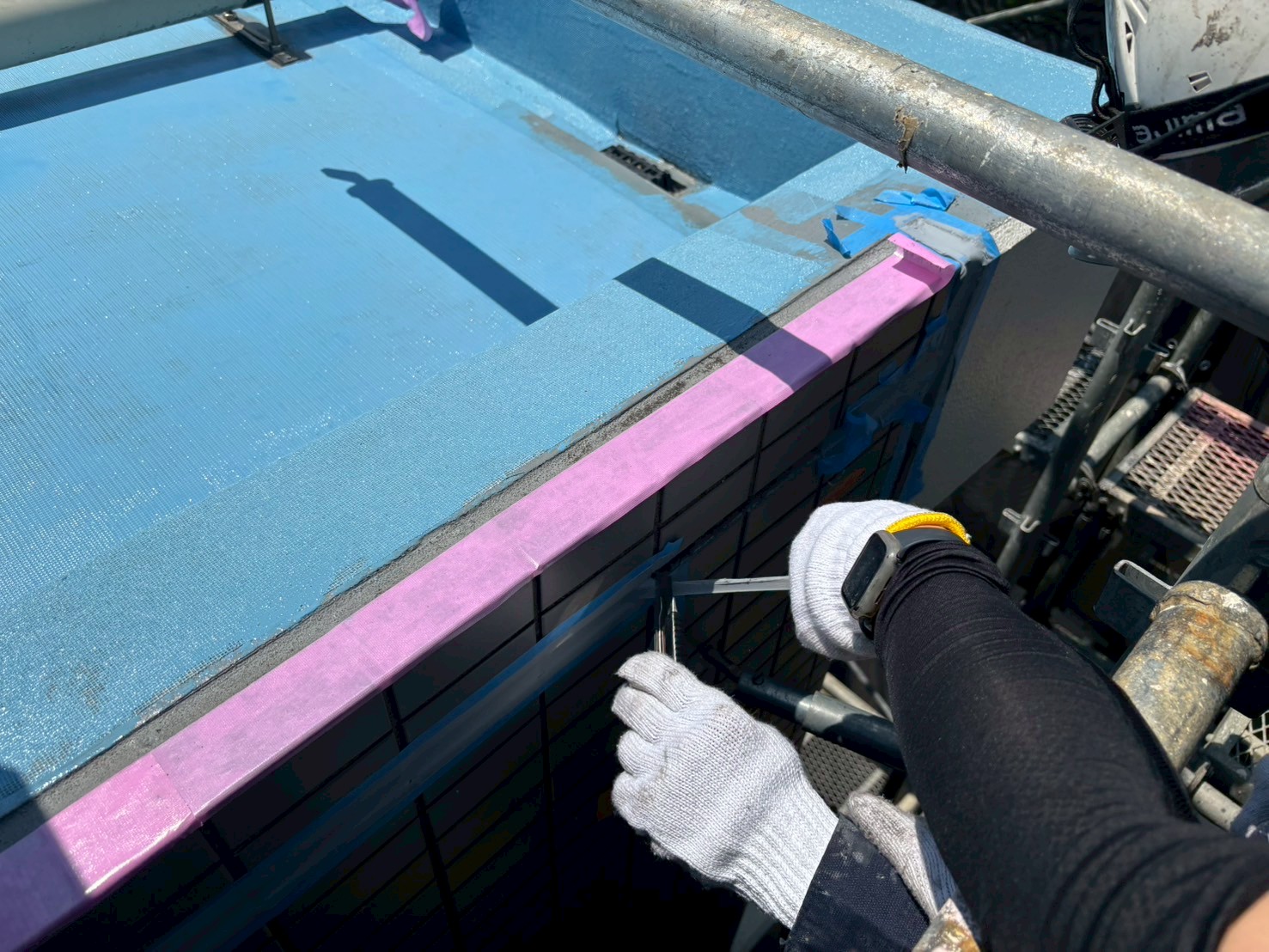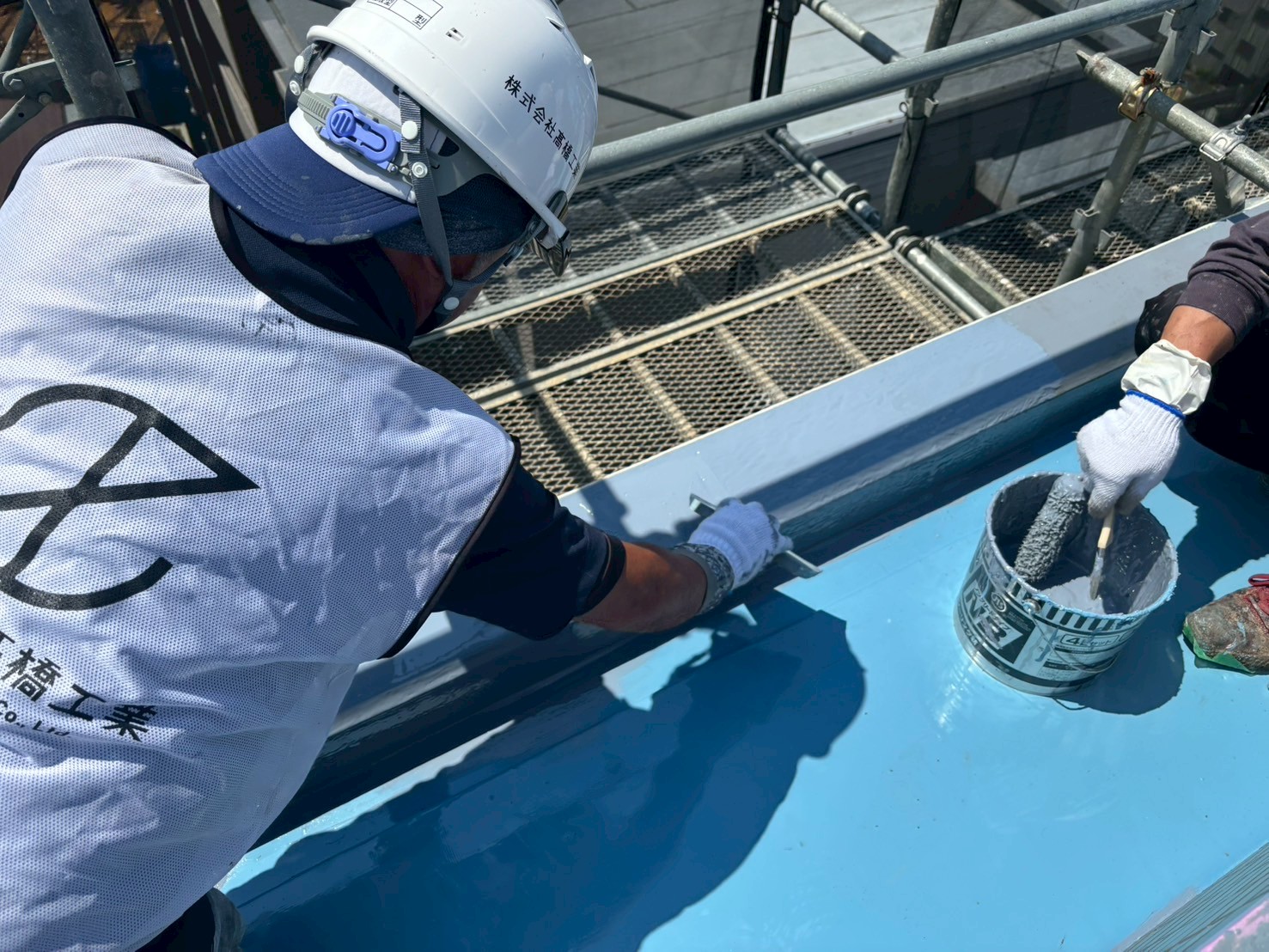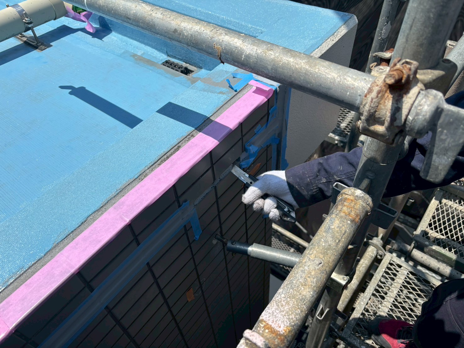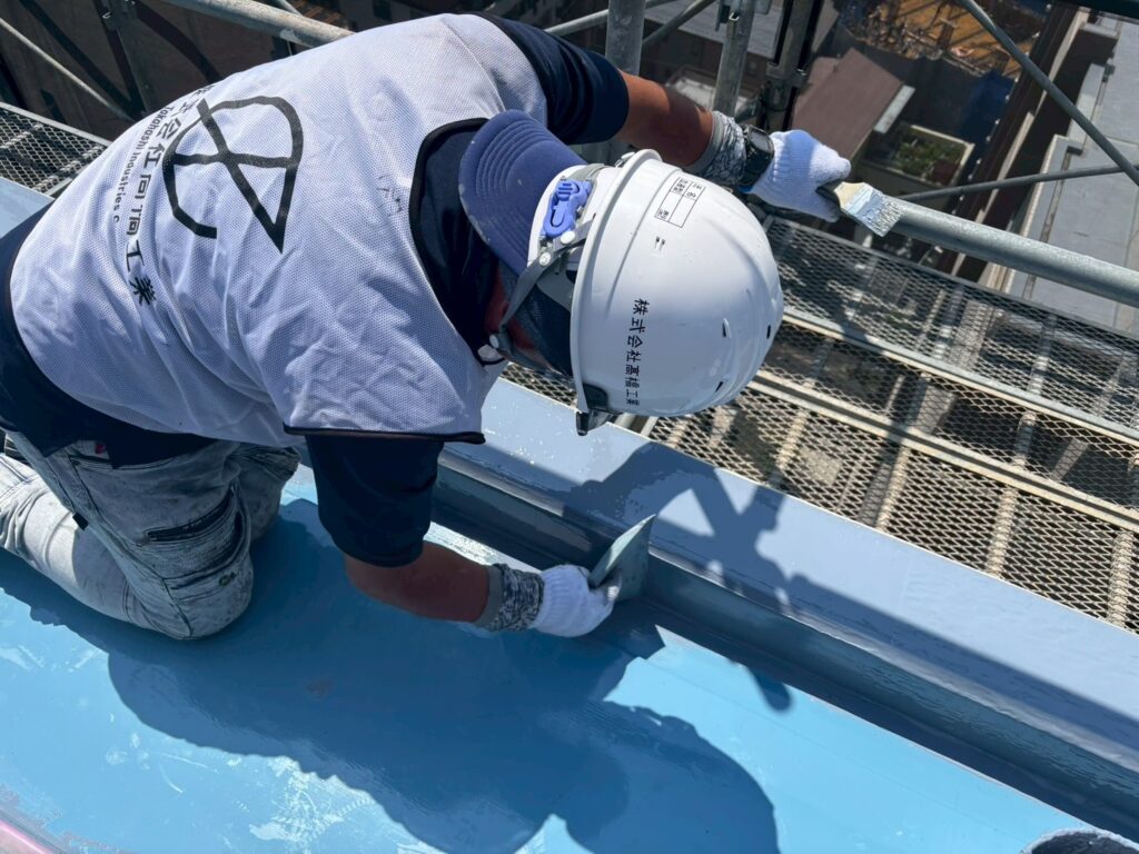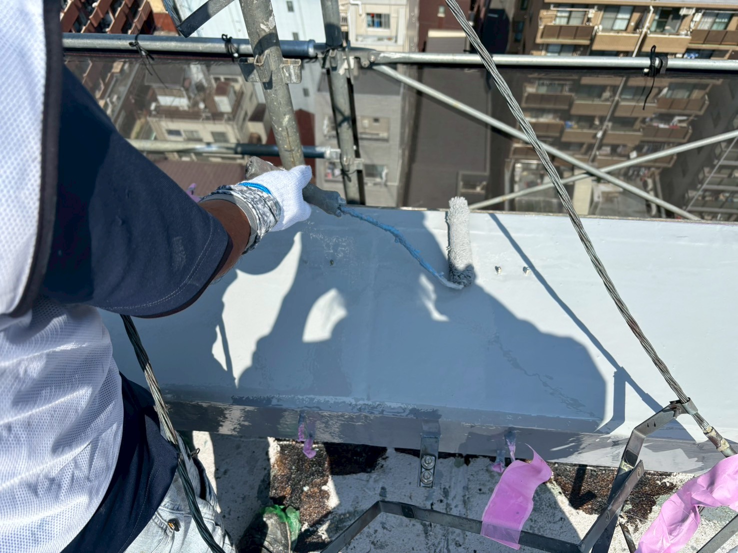 B棟のパラペット、庇のウレタン防水をおこないました。