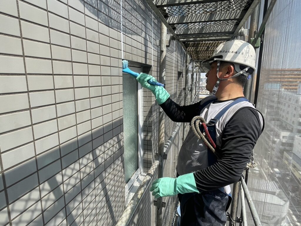 B棟外壁目地、窓周りのシーリング打ち替えをおこないました。