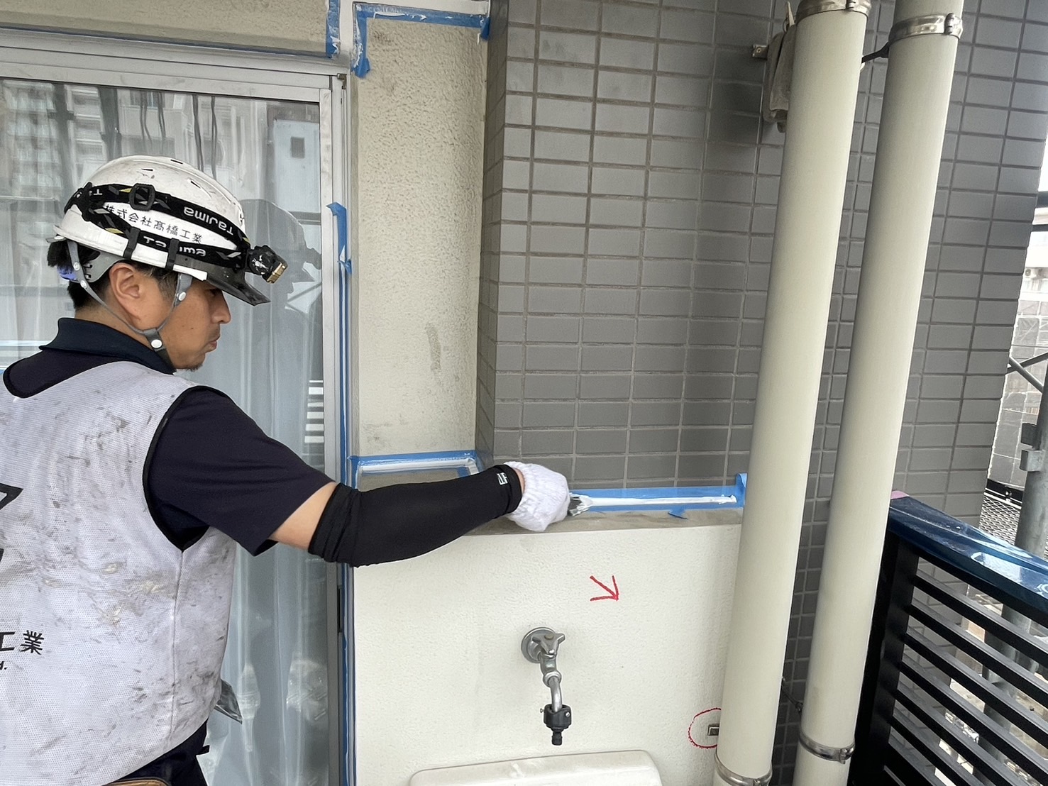 B棟バルコニー内のシーリング打ち替えをおこないました。