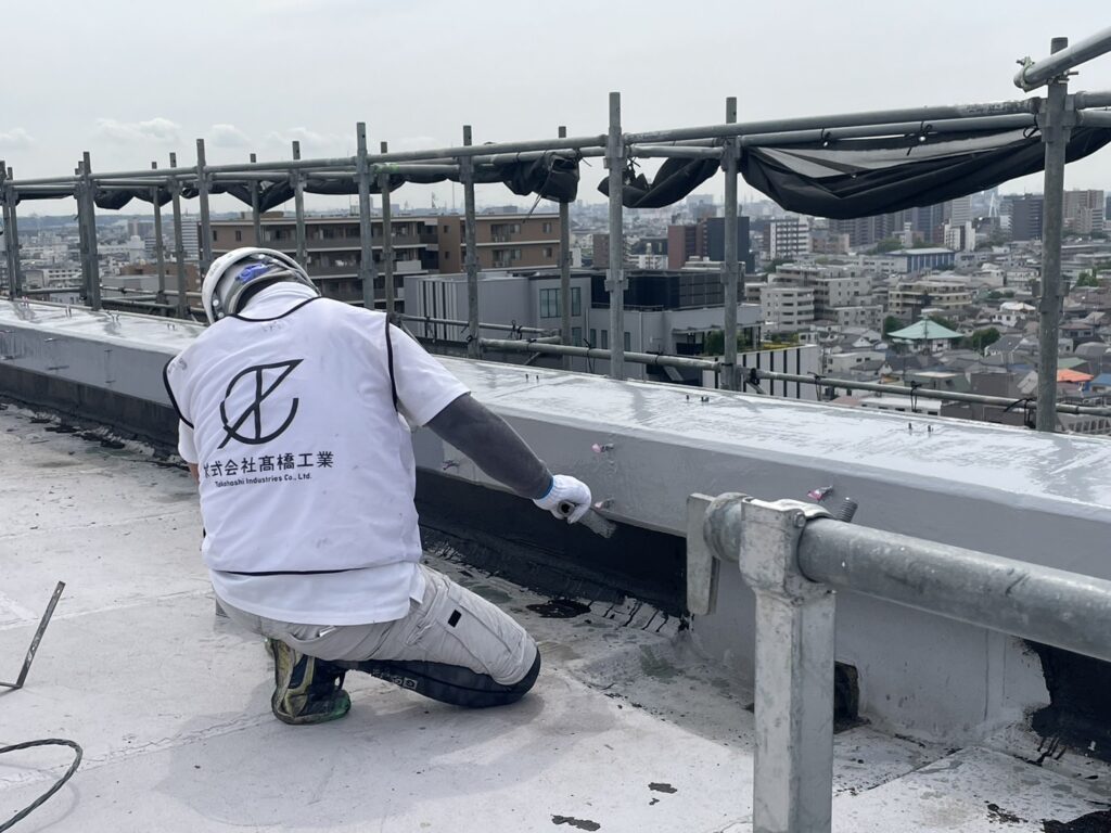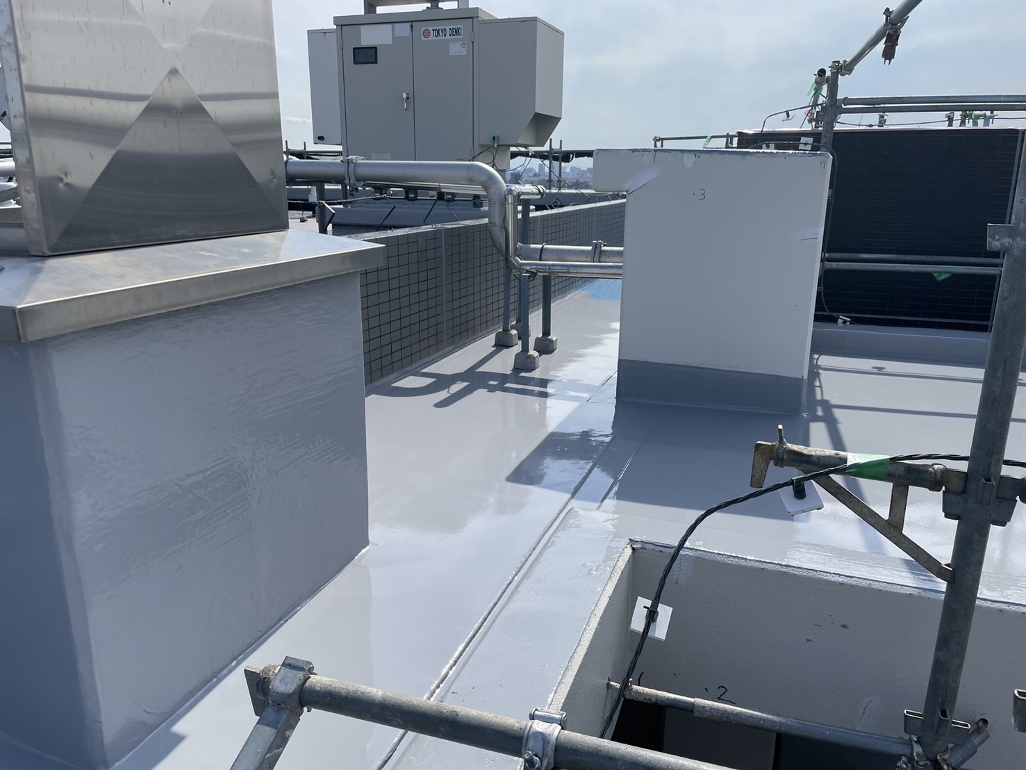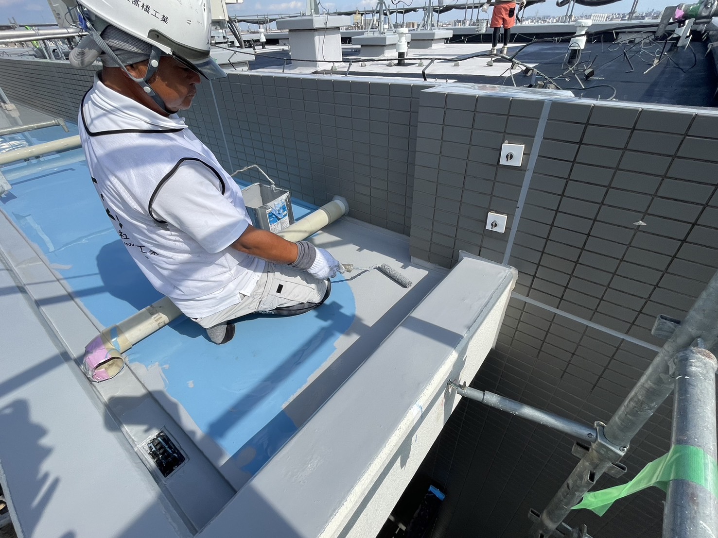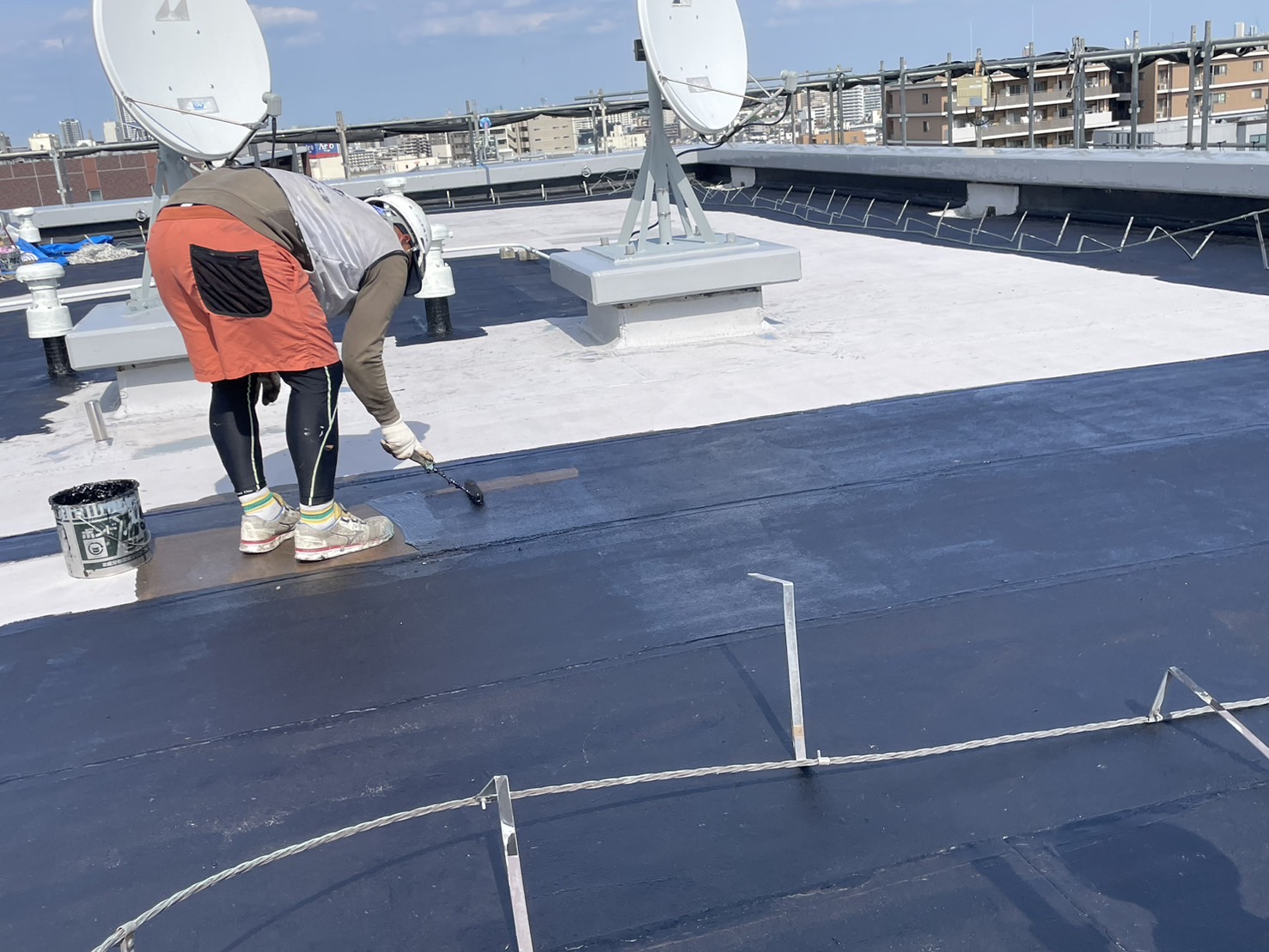 リベース塗布により既存の防水層を活性化させ新しい防水層の密着を良くする役割があります。