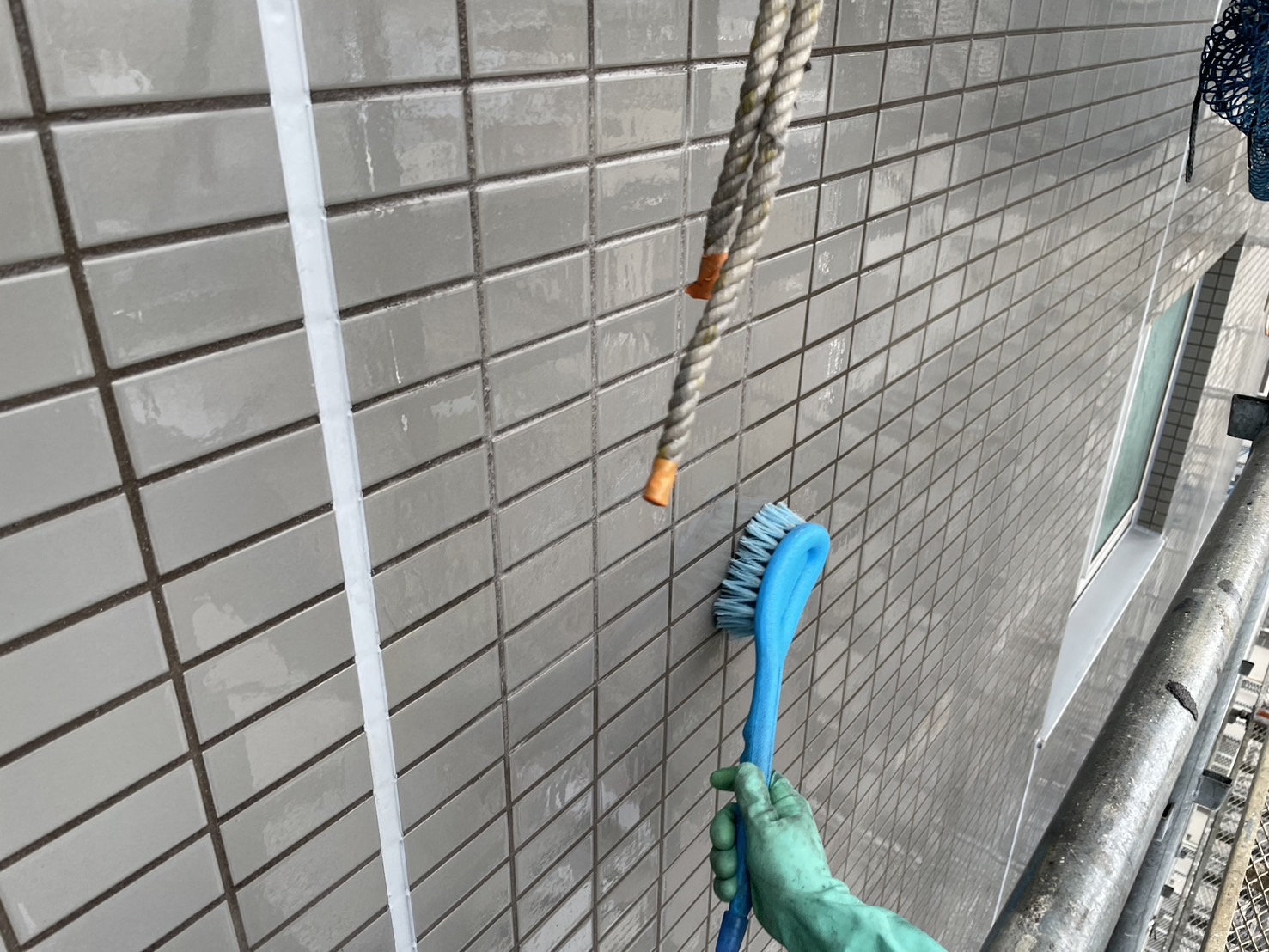 経年劣化の影響や排気ガス等の空気中の汚れを落とし綺麗なタイルに戻りました。
