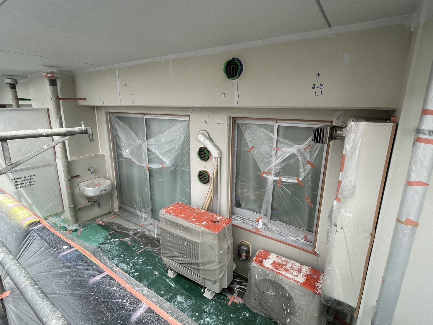 天井作業後は内壁の塗装をおこない一度サッシ(窓)の養生を剥がす予定をしております。