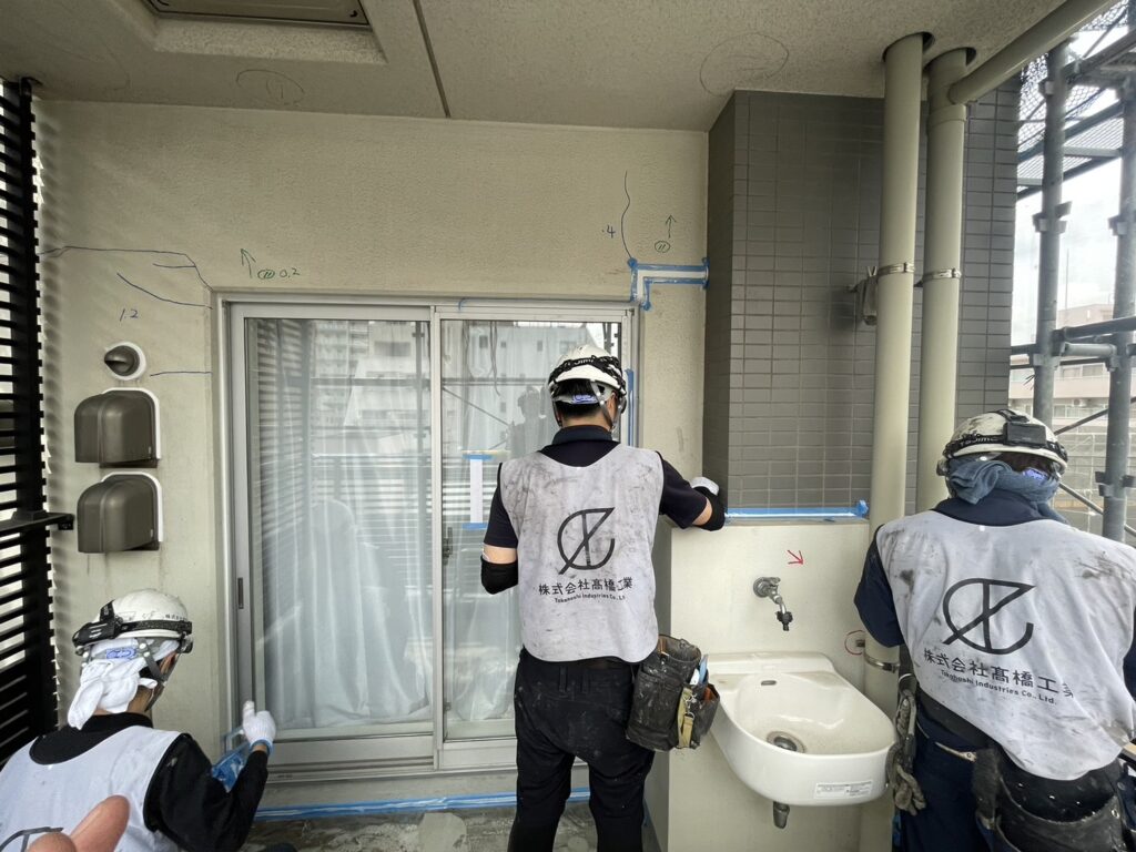 調査完了後はタイル張替え、塗装面の補修をおこなうため、騒音・振動が発生する工事が始まります。