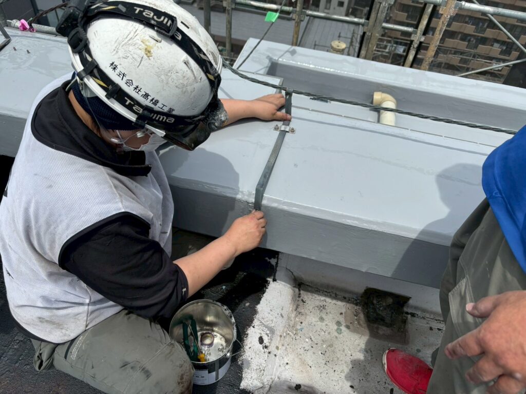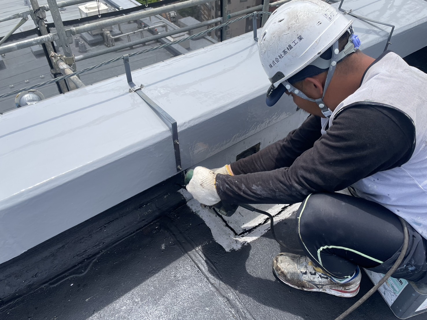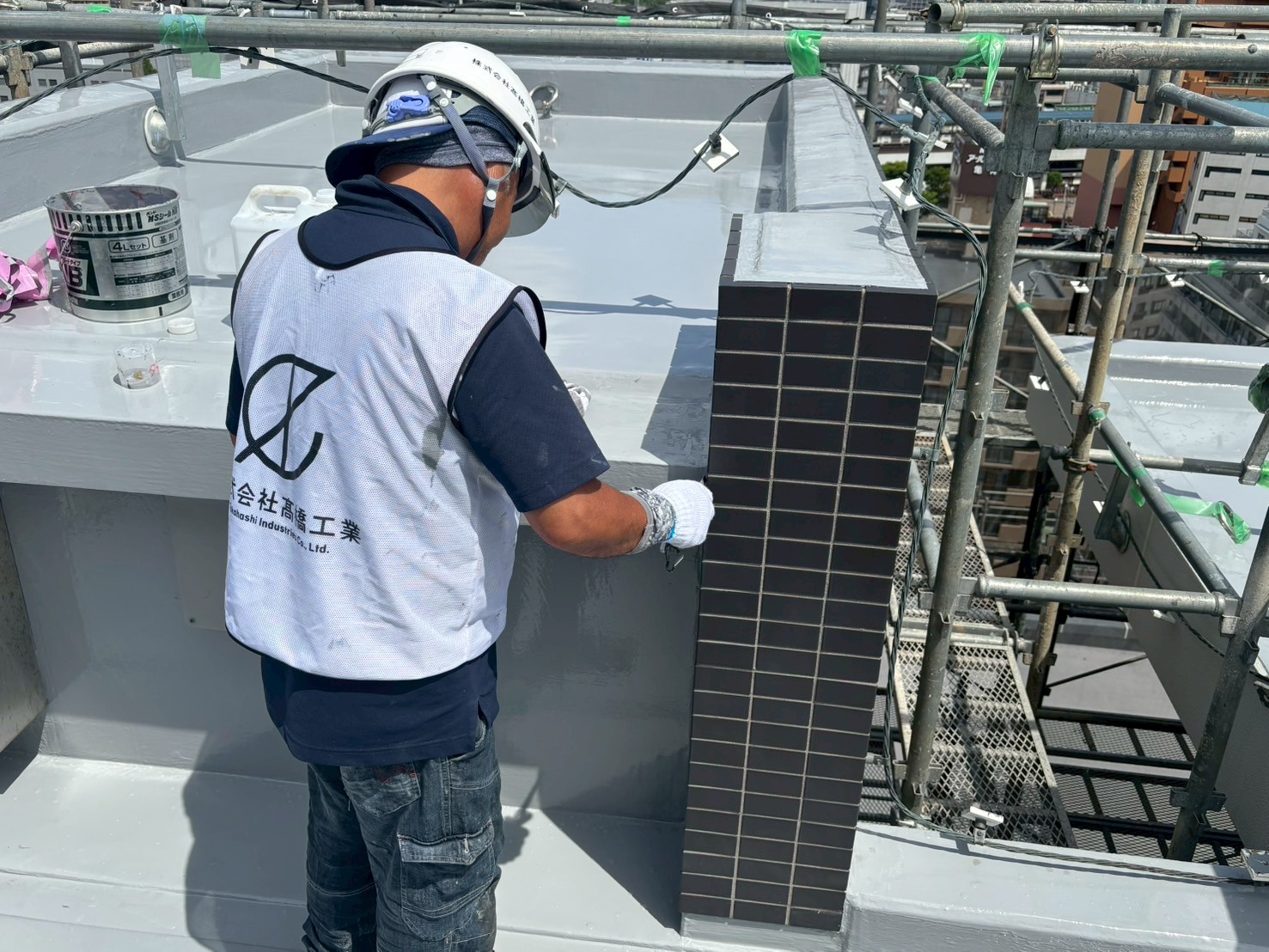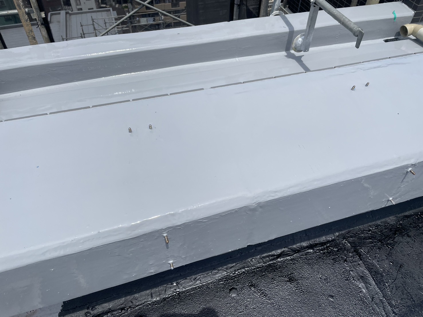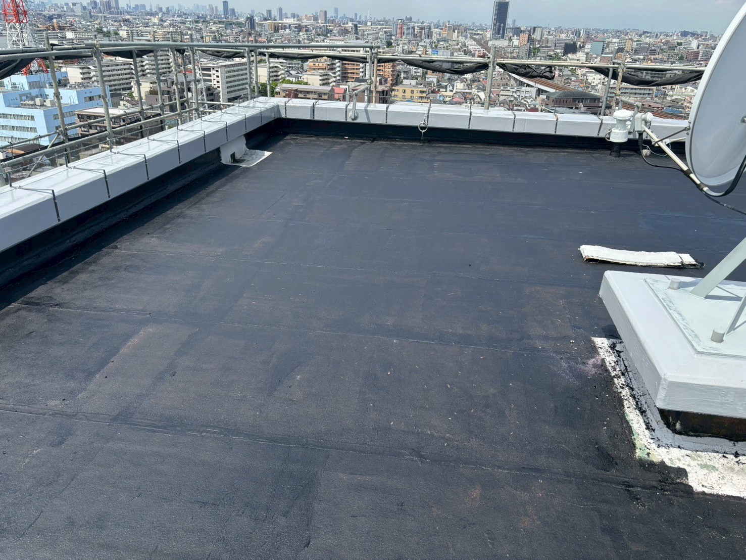 A棟屋上のウレタン防水は完了し、次回からはトーチ防水工事が始まります。
