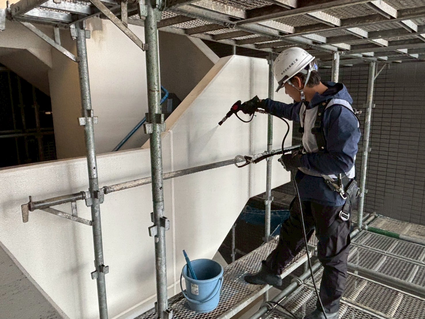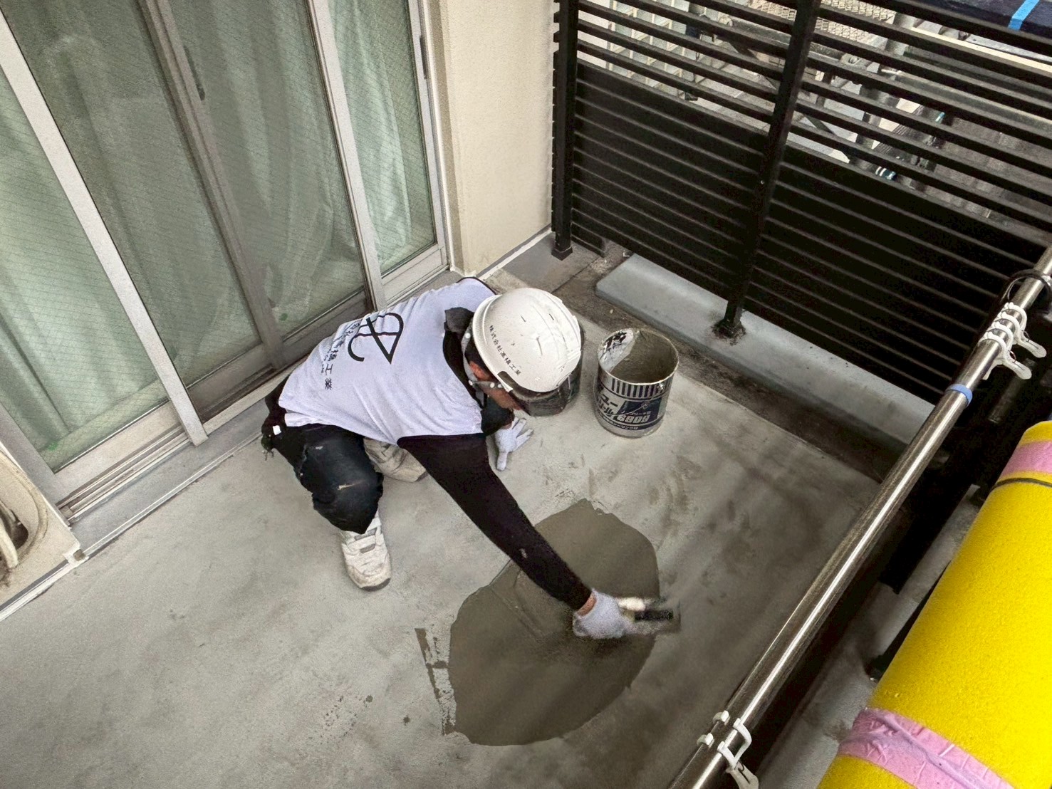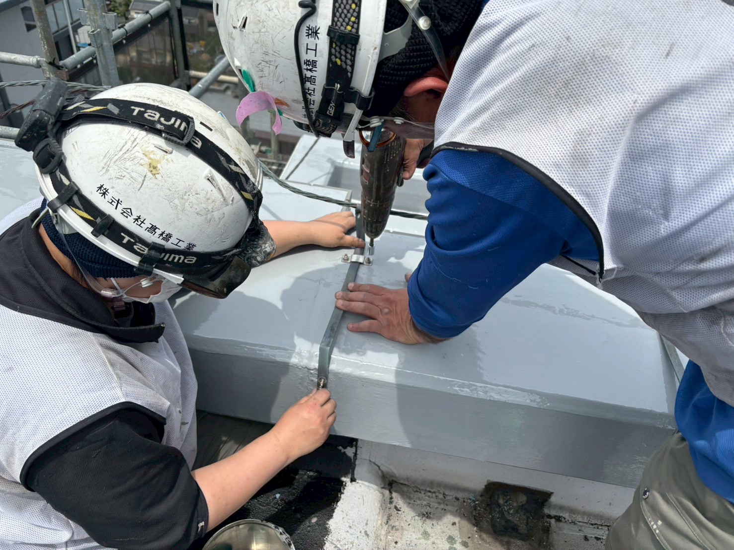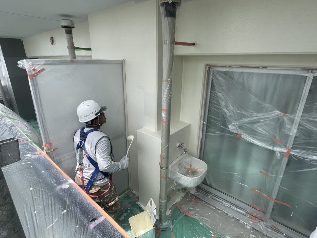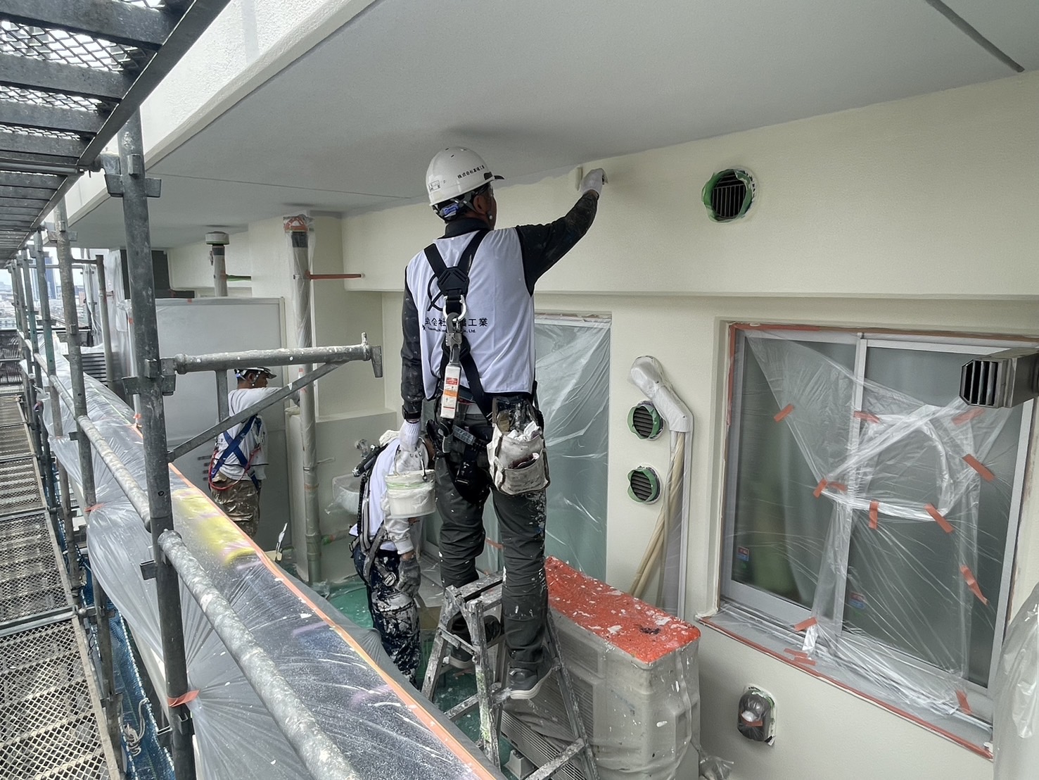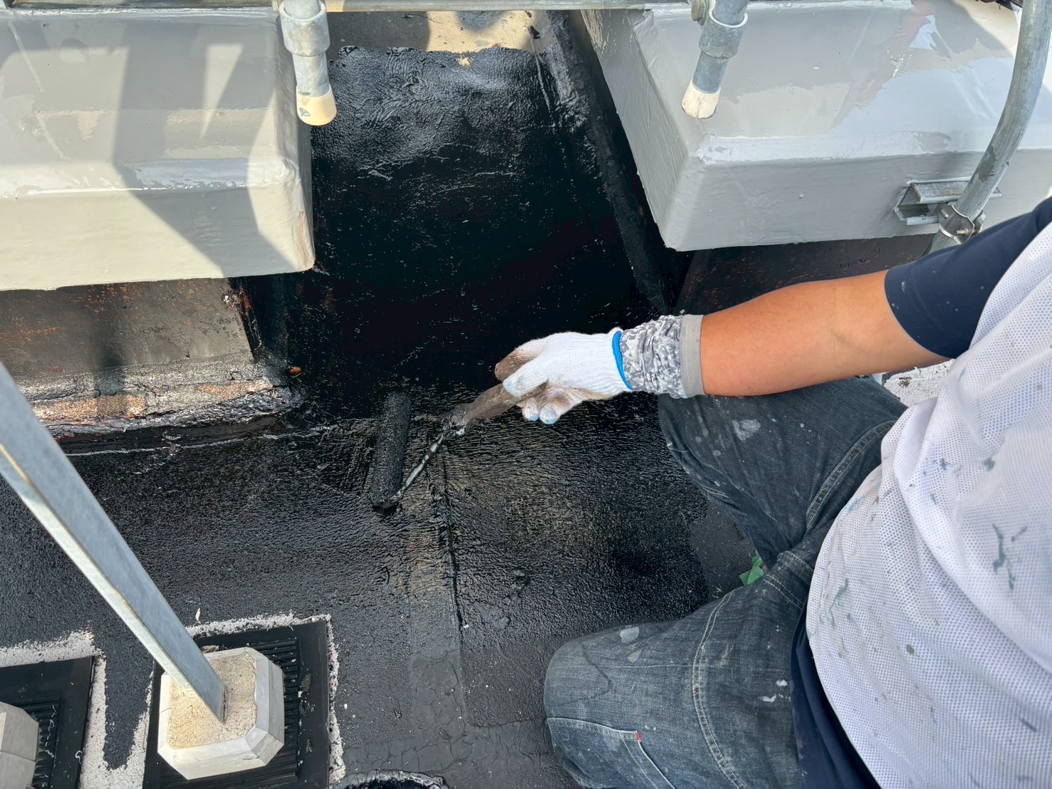 A棟屋上のウレタン防水は完了し、次回からはトーチ防水工事が始まります。