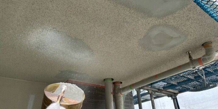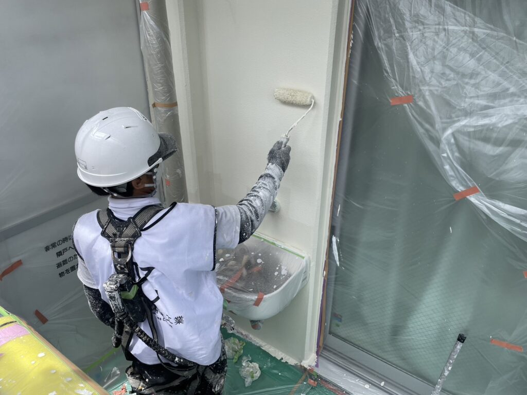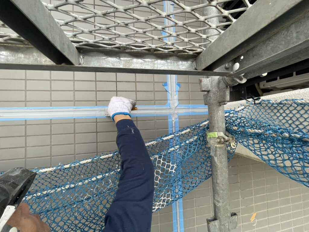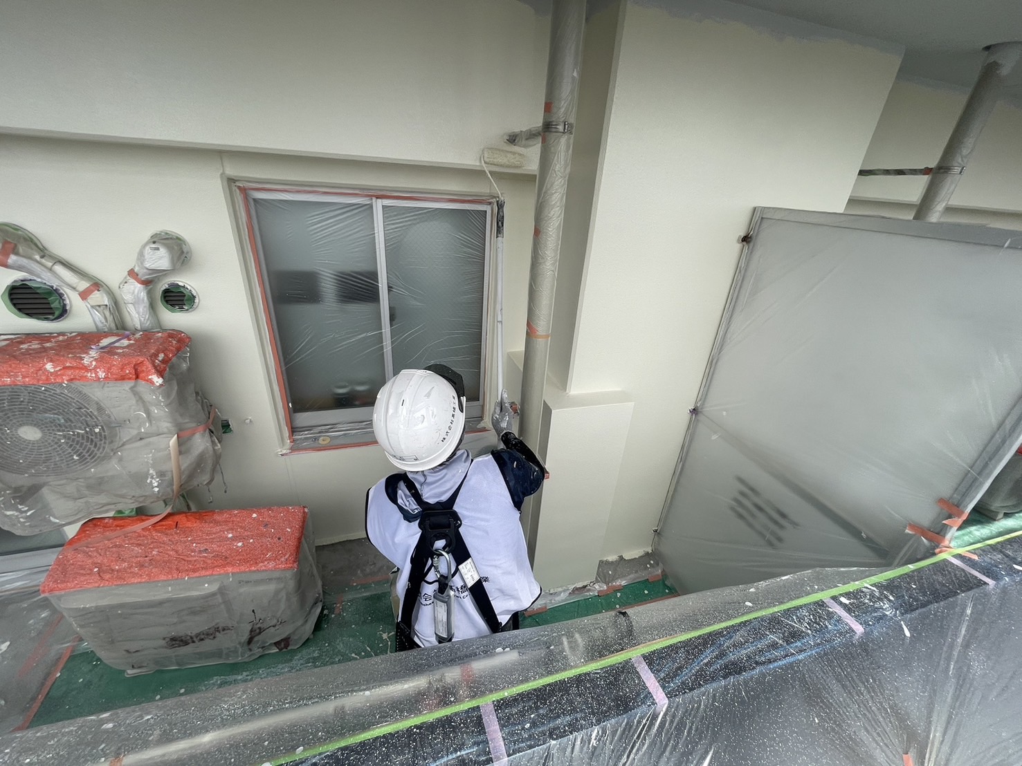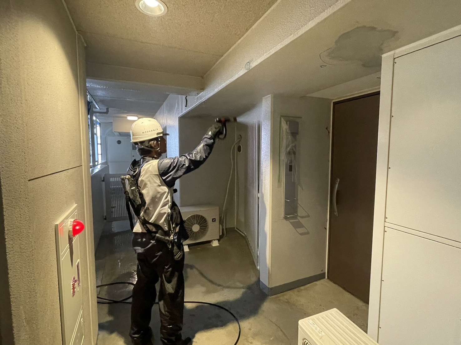 8階から2階は養生作業と壁の肌合わせ、下塗りをしております。