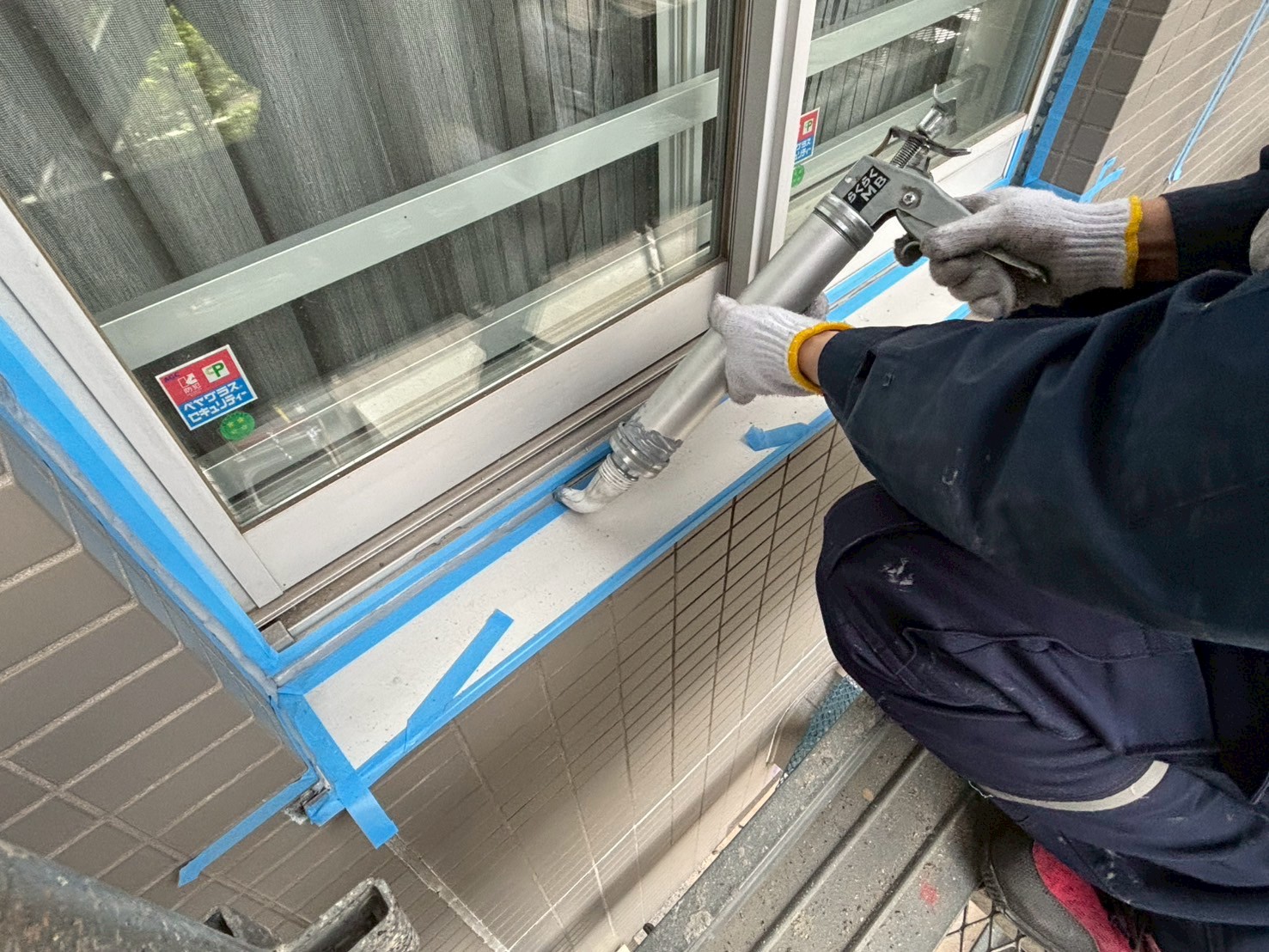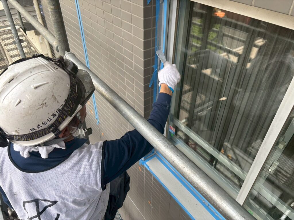 B棟外壁、サッシのシーリング打ち替えをおこないました。
