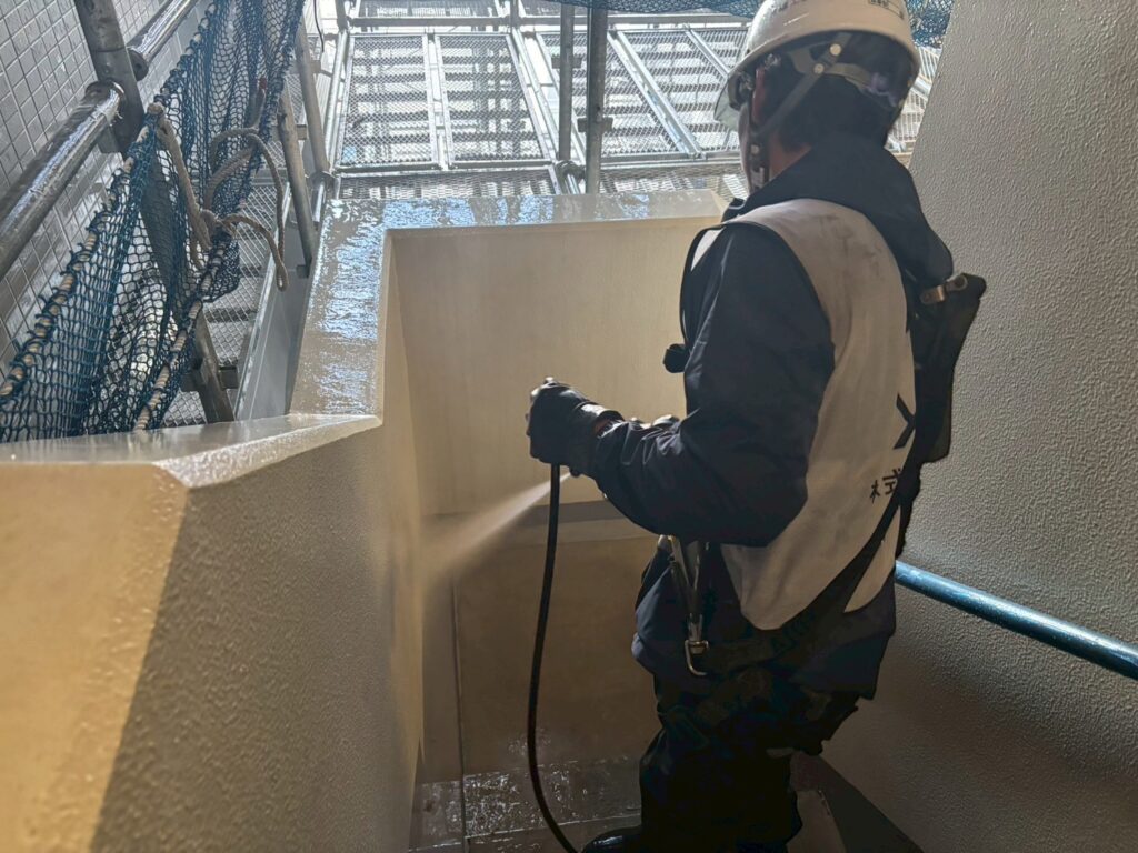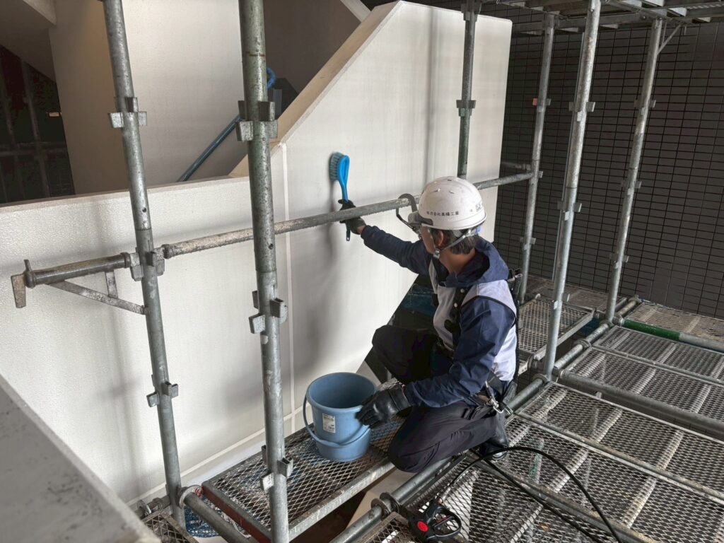 明日16日(金)も引き続き廊下・階段の洗浄工事をおこないます。