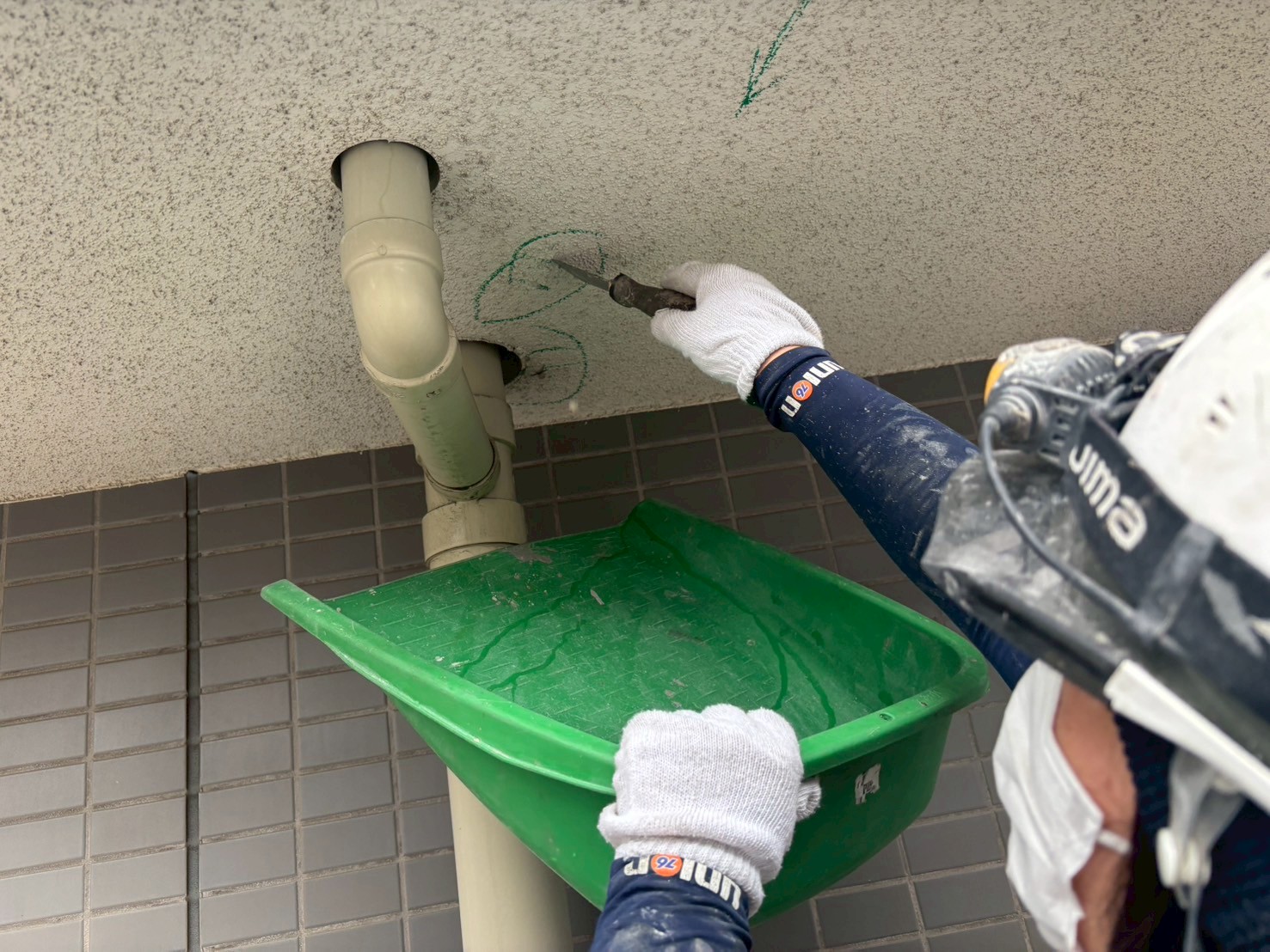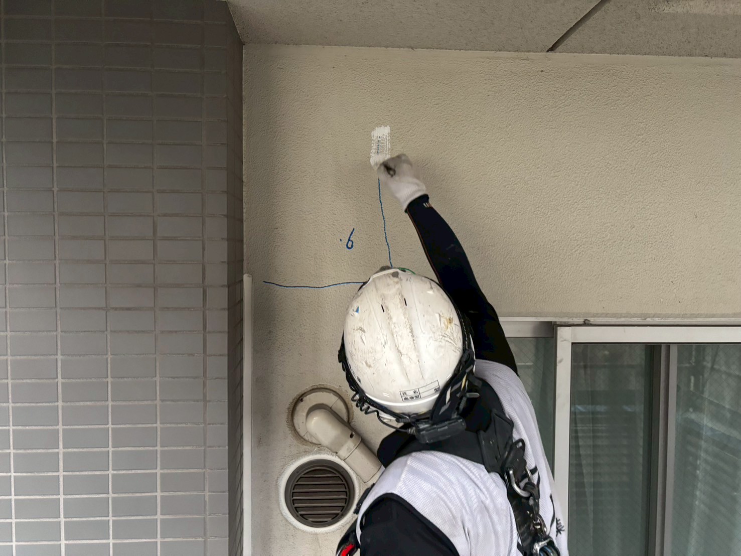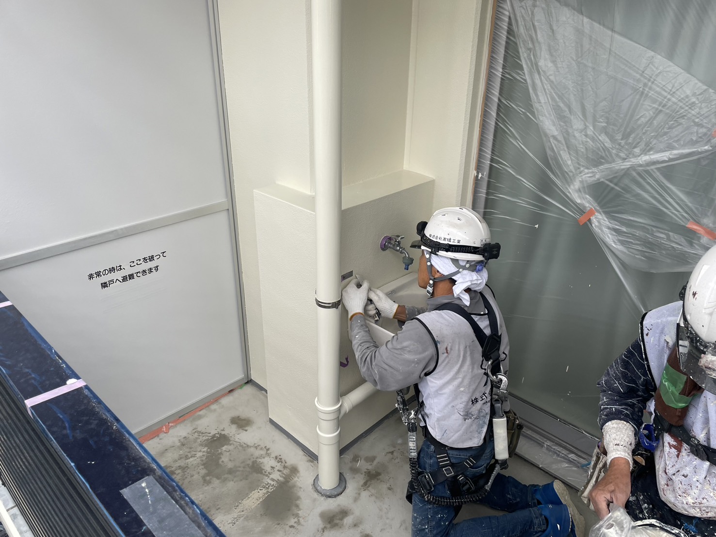 明日から外壁はタイルの斫り作業があり、シーリング工事はタイル作業の兼ね合いで進めていきます。