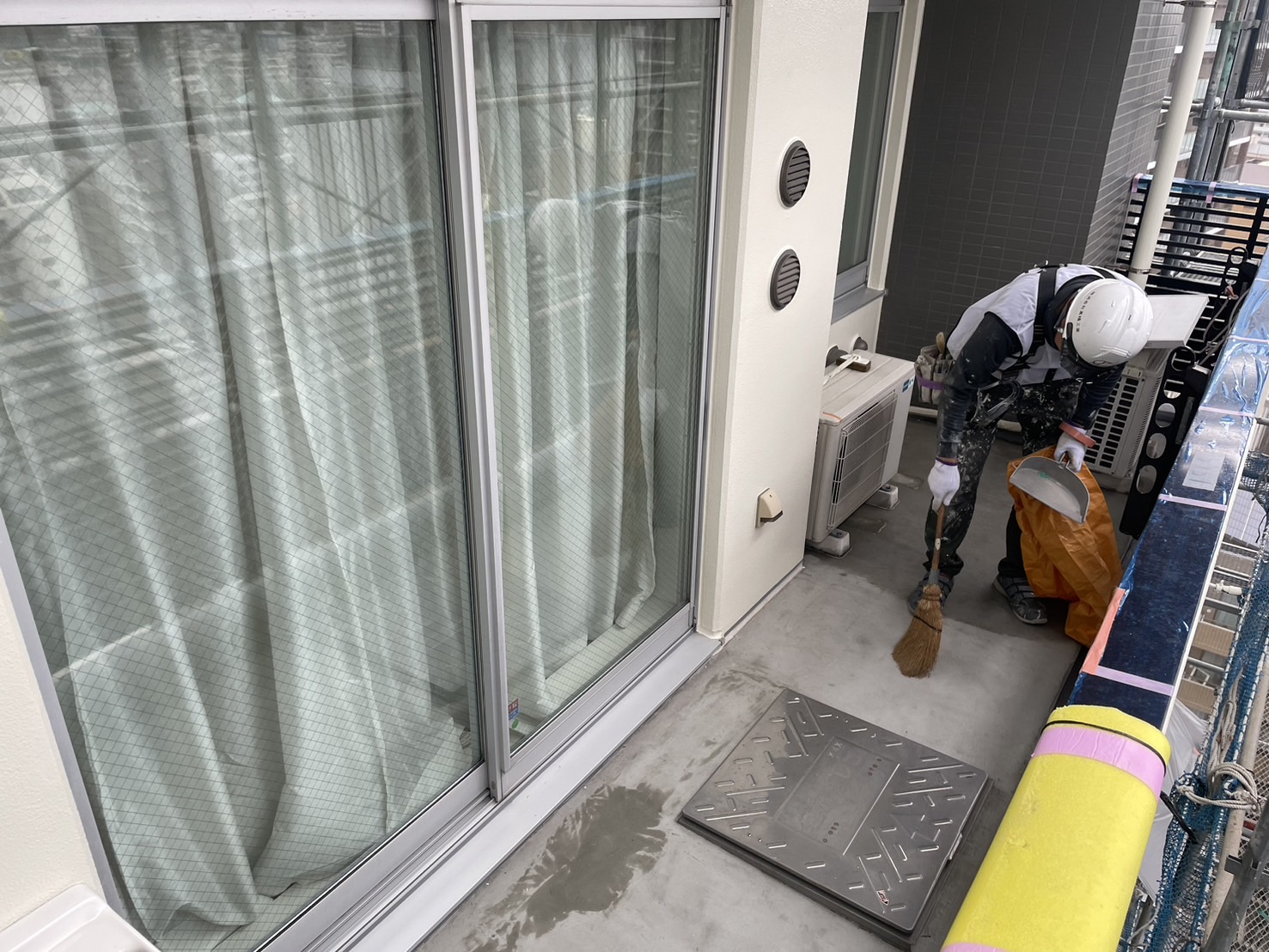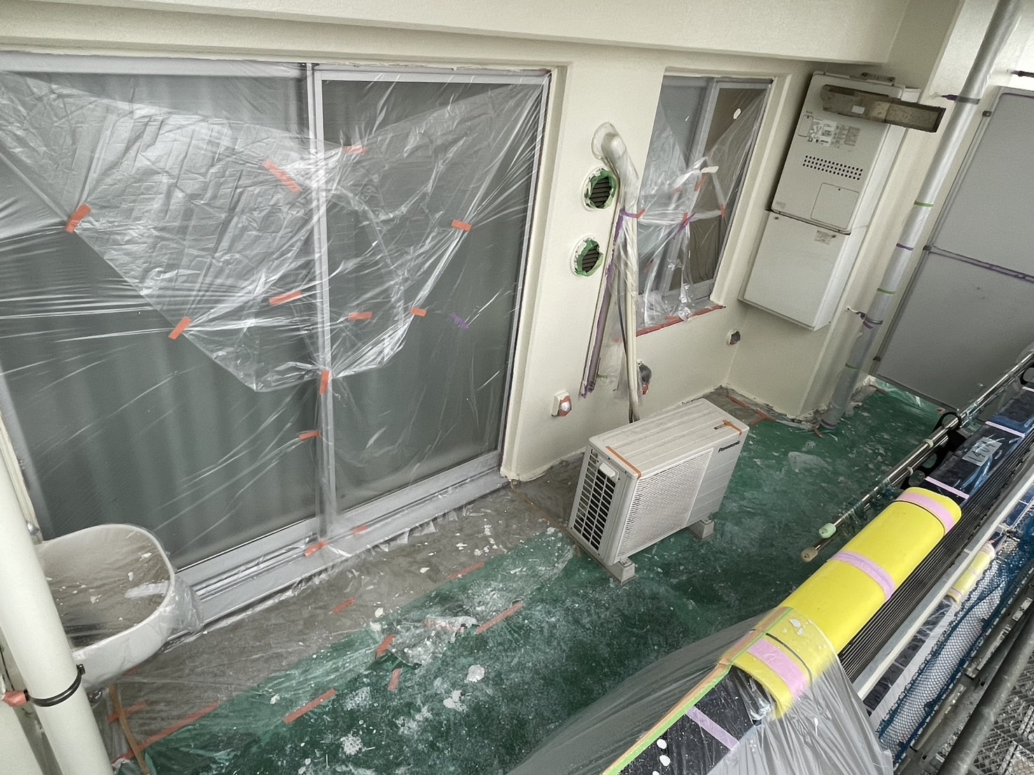 A棟バルコニーの塗装工事。