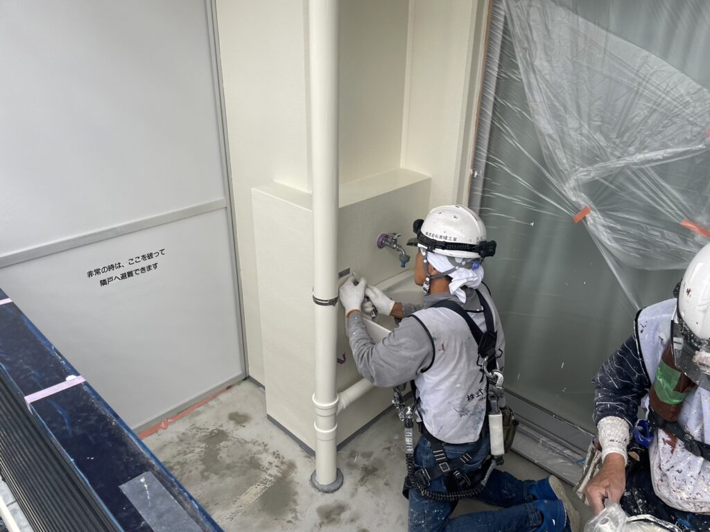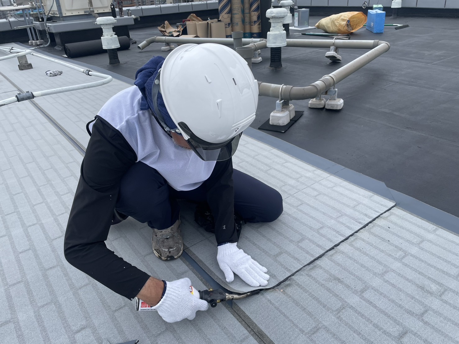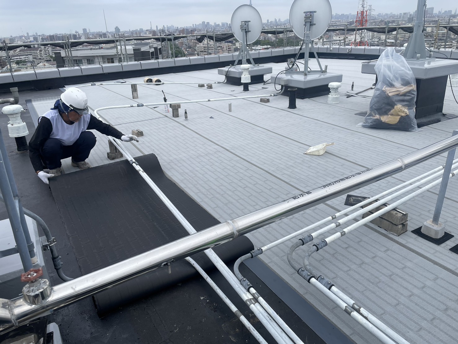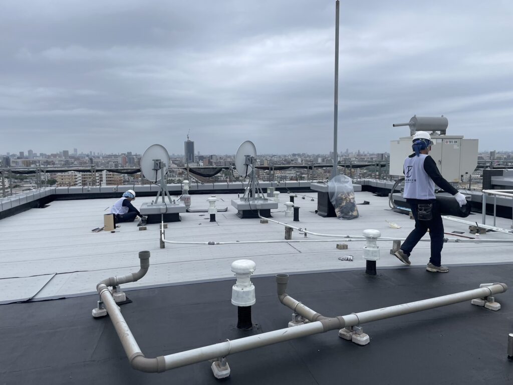 A棟屋上のトーチ防水、B棟屋上のウレタン防水工事をおこないました。