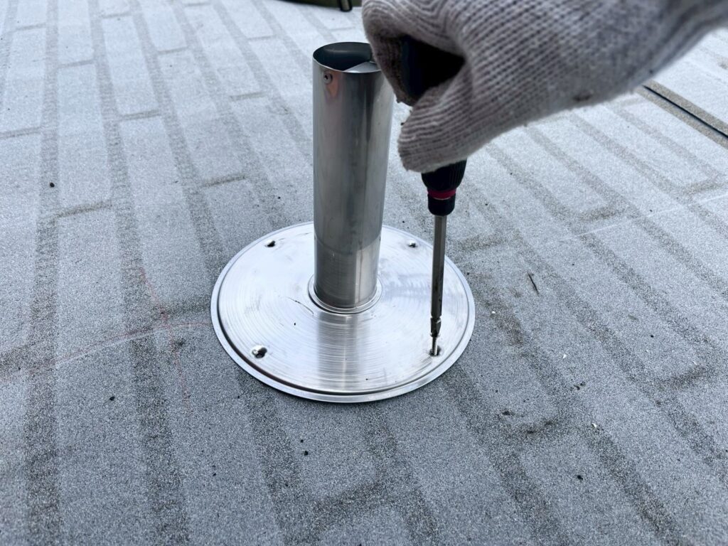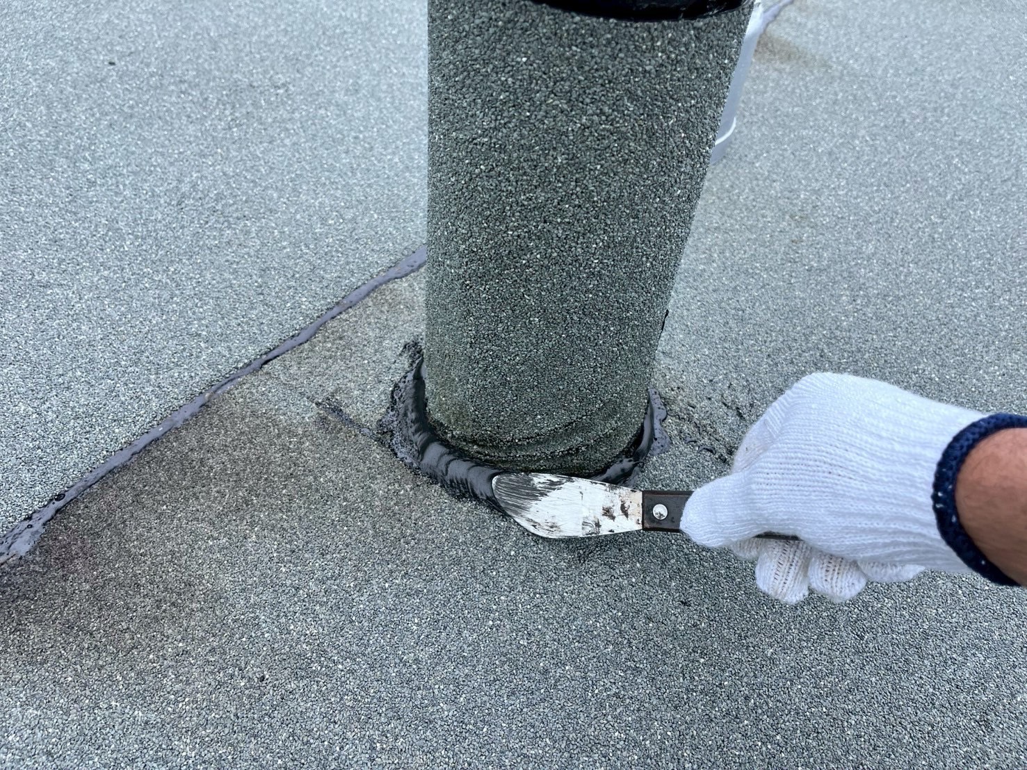 平場にアスファルトシート張り、臭気筒、脱気筒廻りの補修をおこないました。