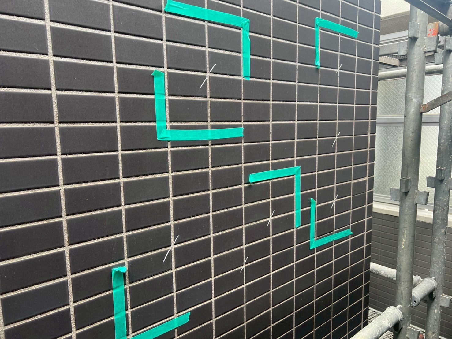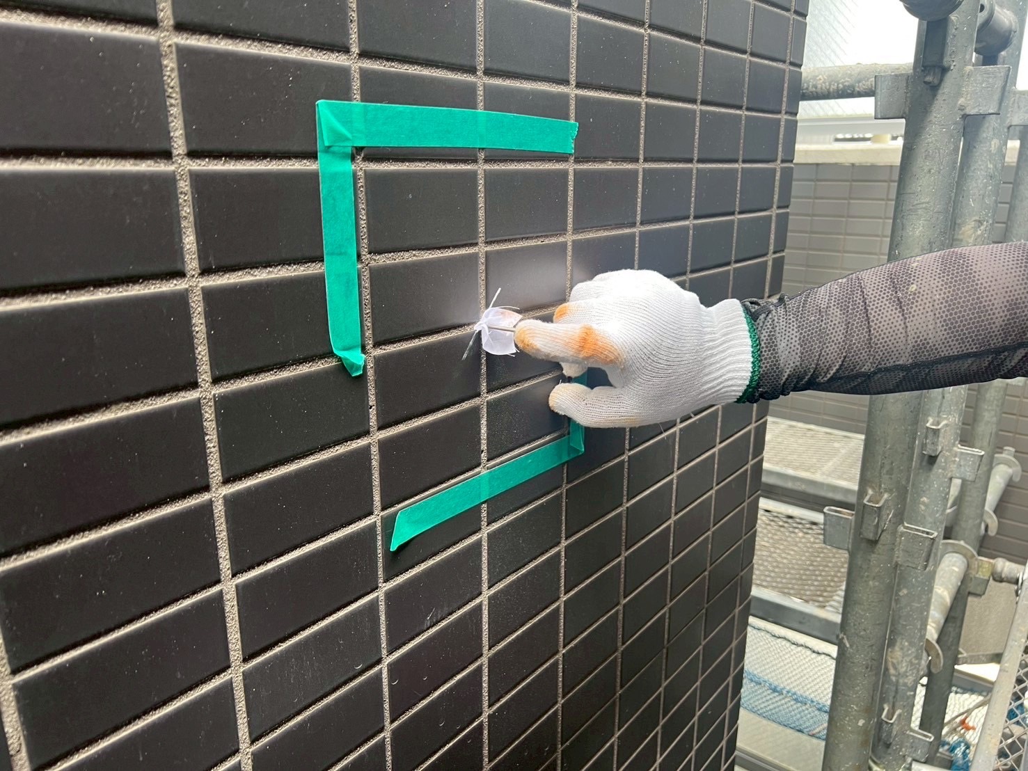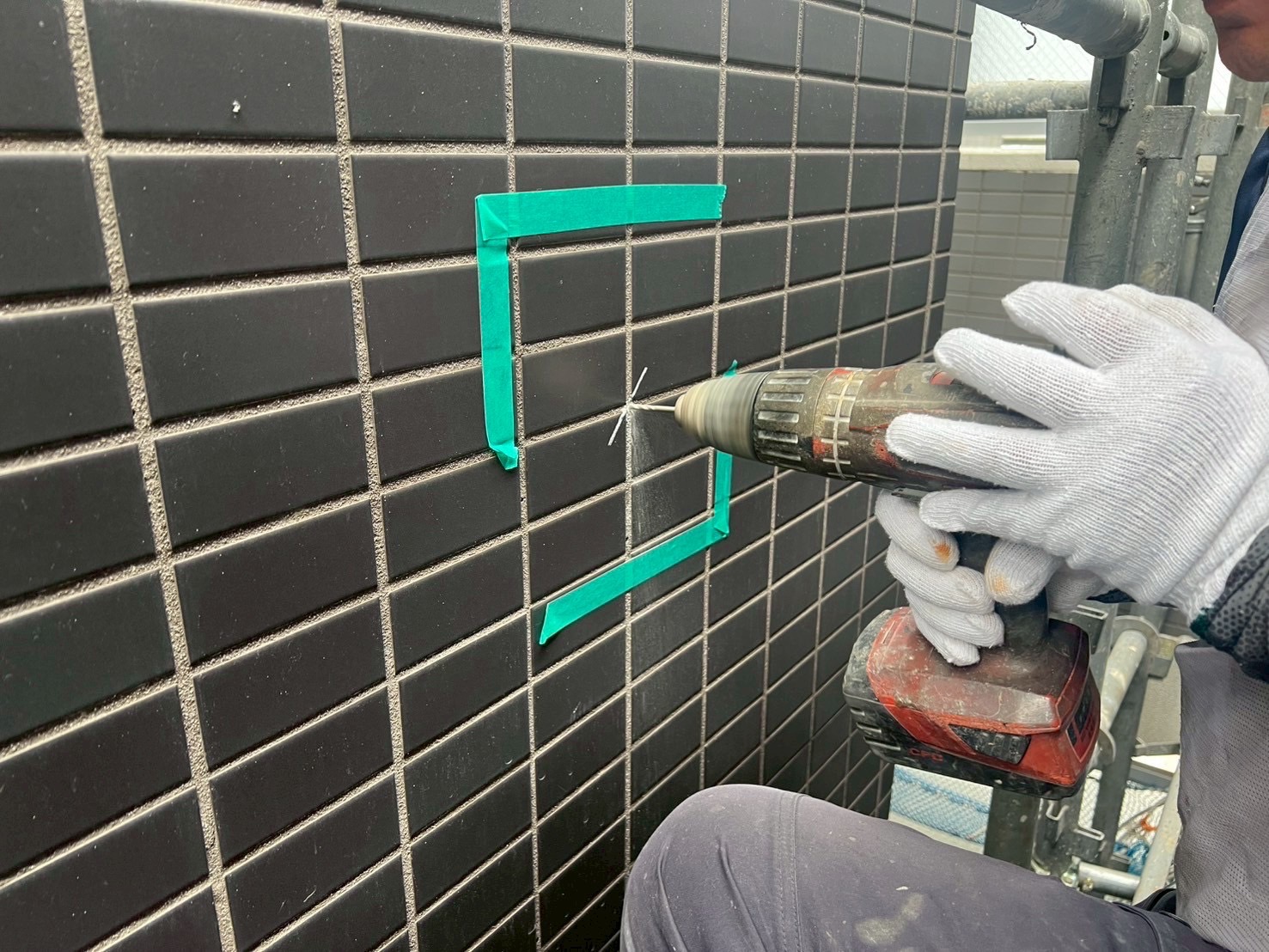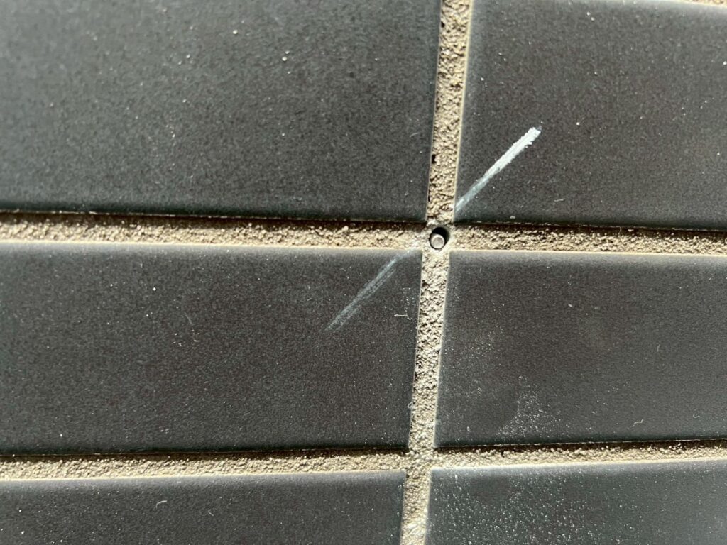 タイルの浮き箇所にエポキシ樹脂注入と、タイル下地のヒビ補修をおこないました。
