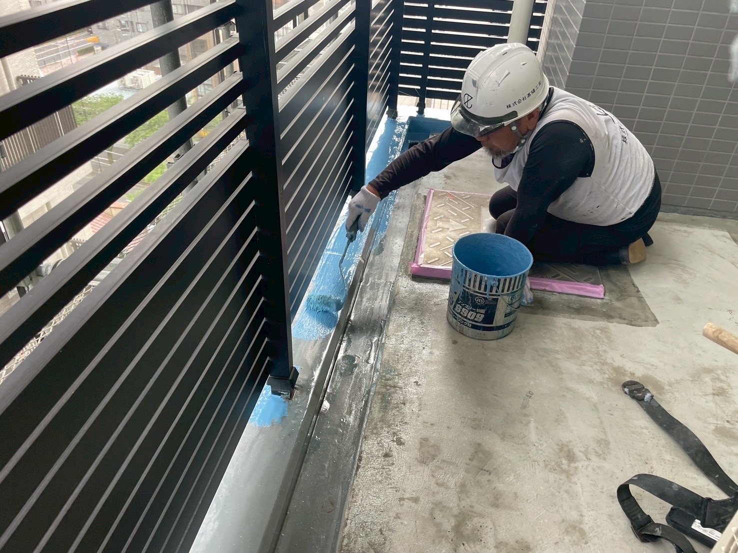 A棟バルコニー15階~9階のウレタン防水工事をおこないました。