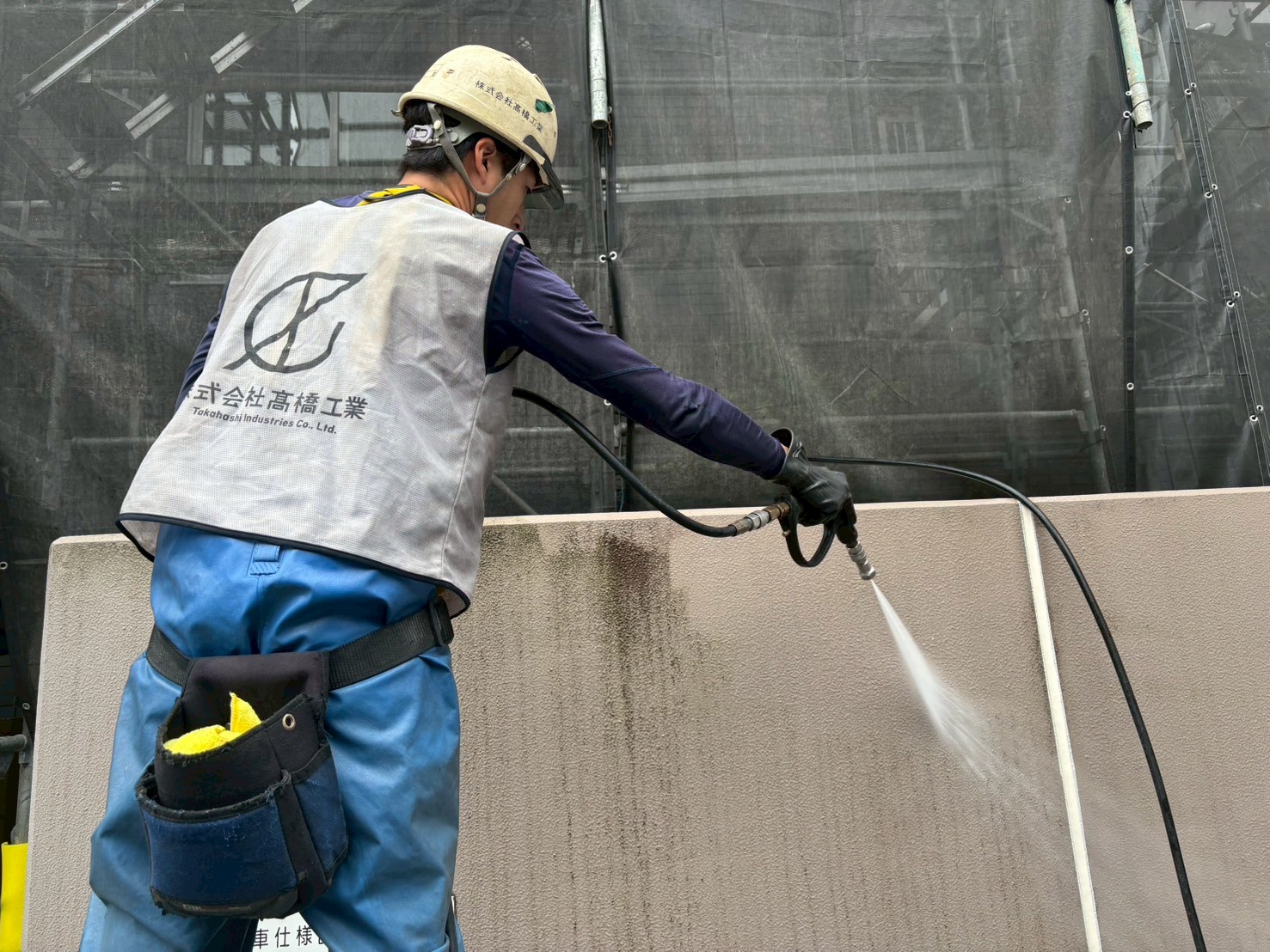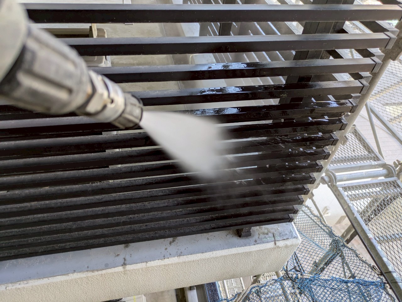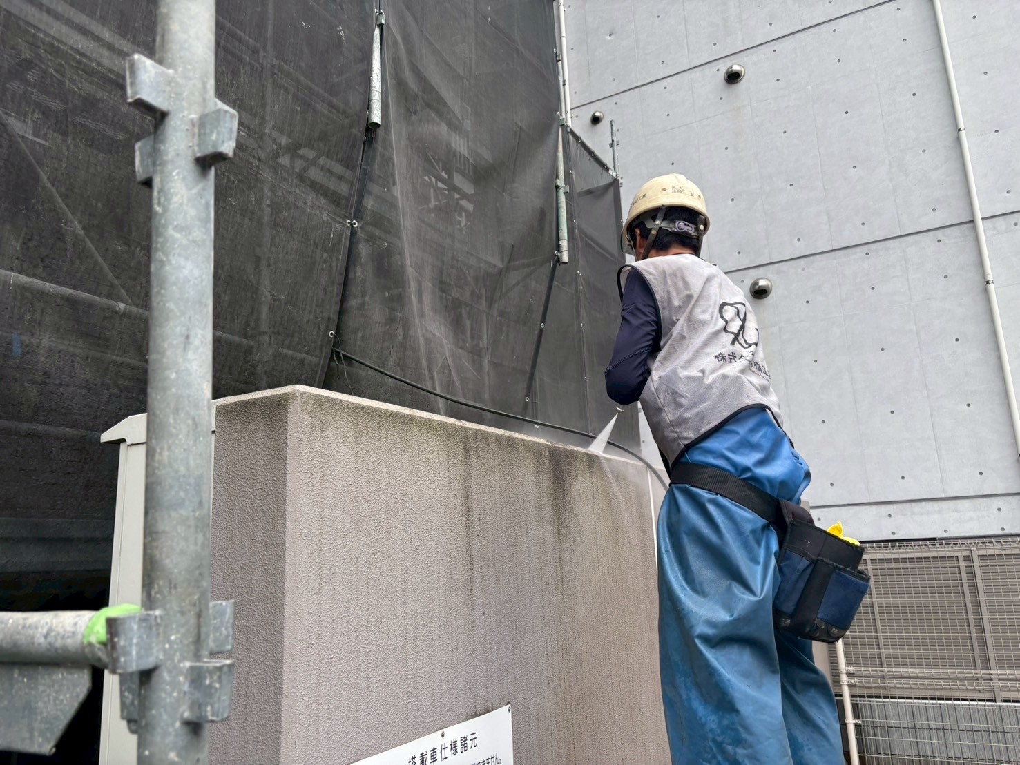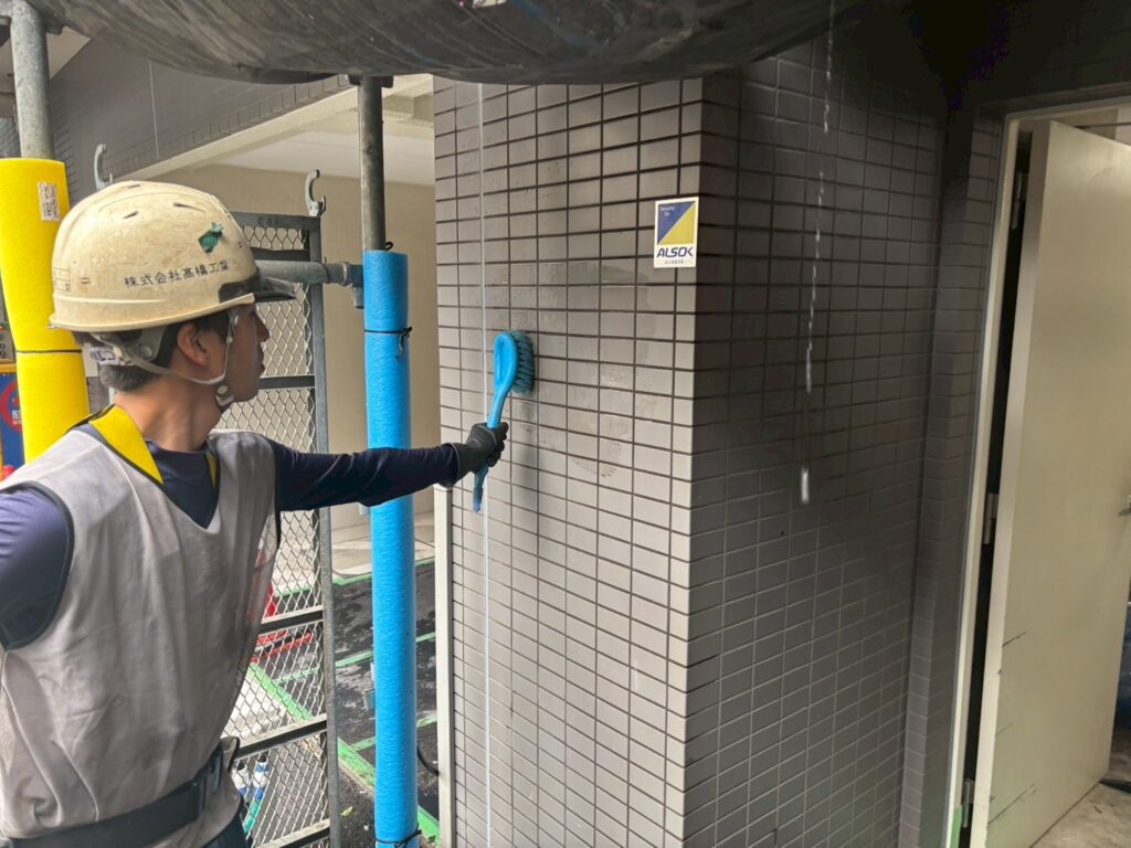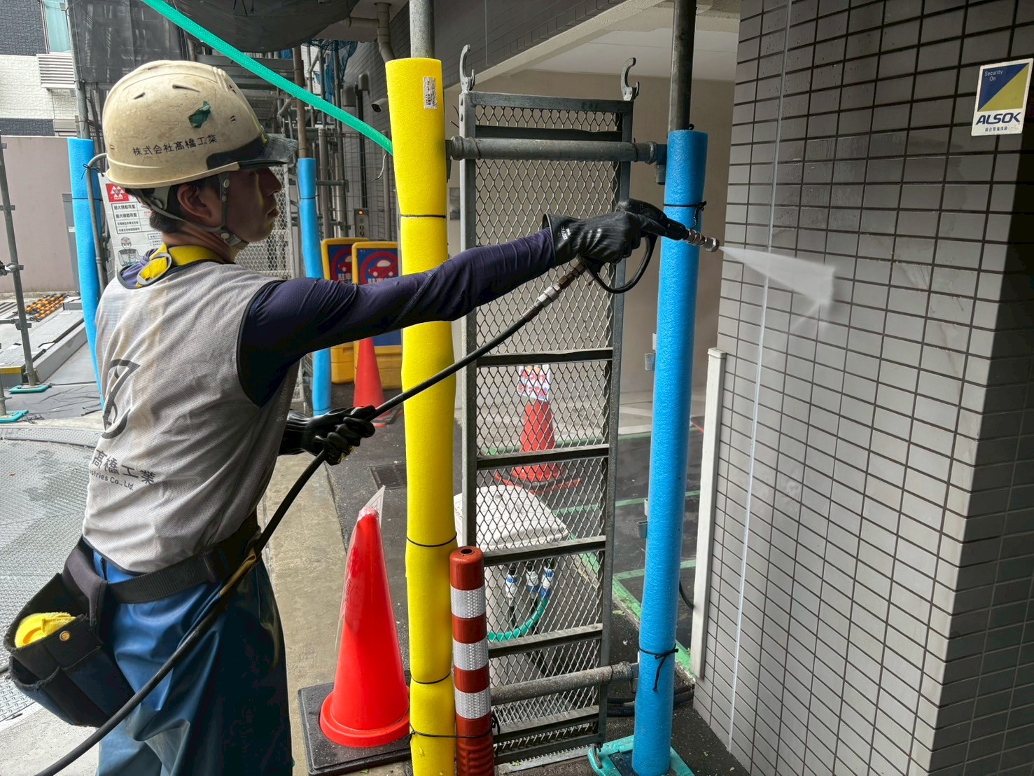 明日30日(金)はB棟南面、1階駐車場周りの洗浄工事をおこないます。