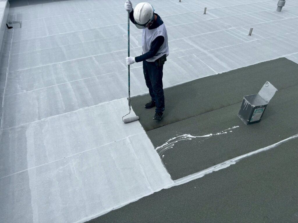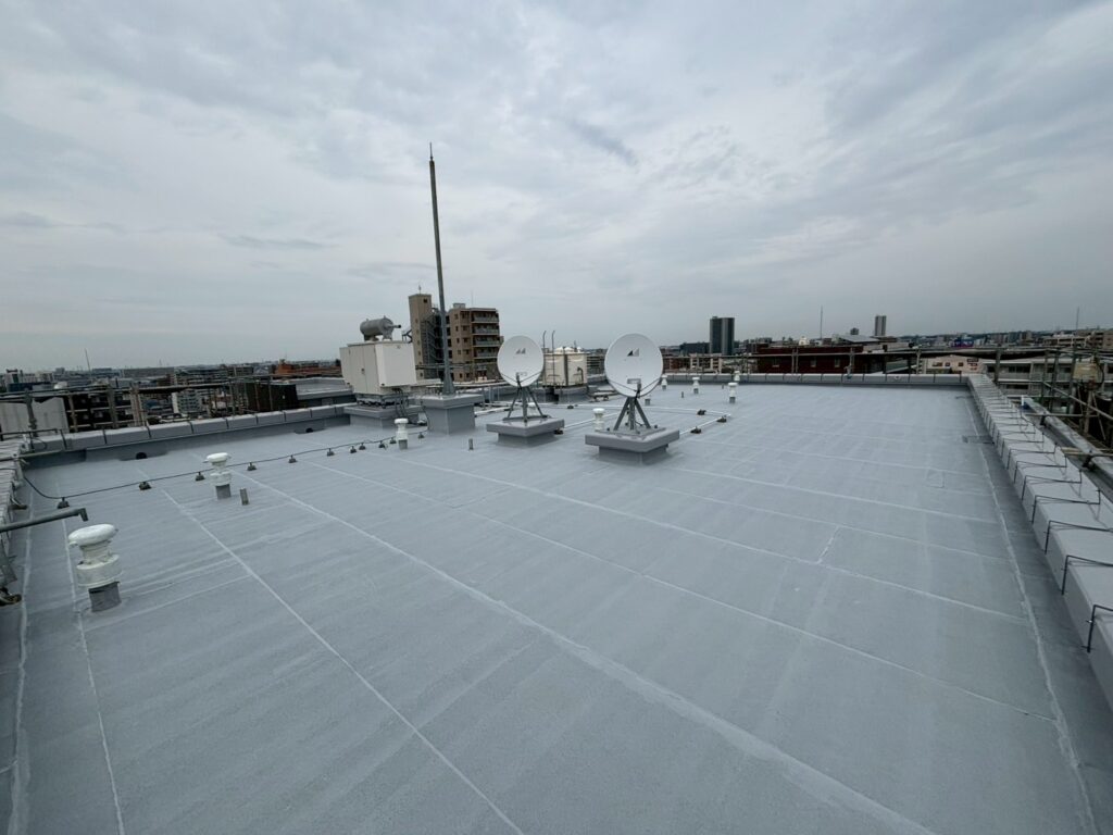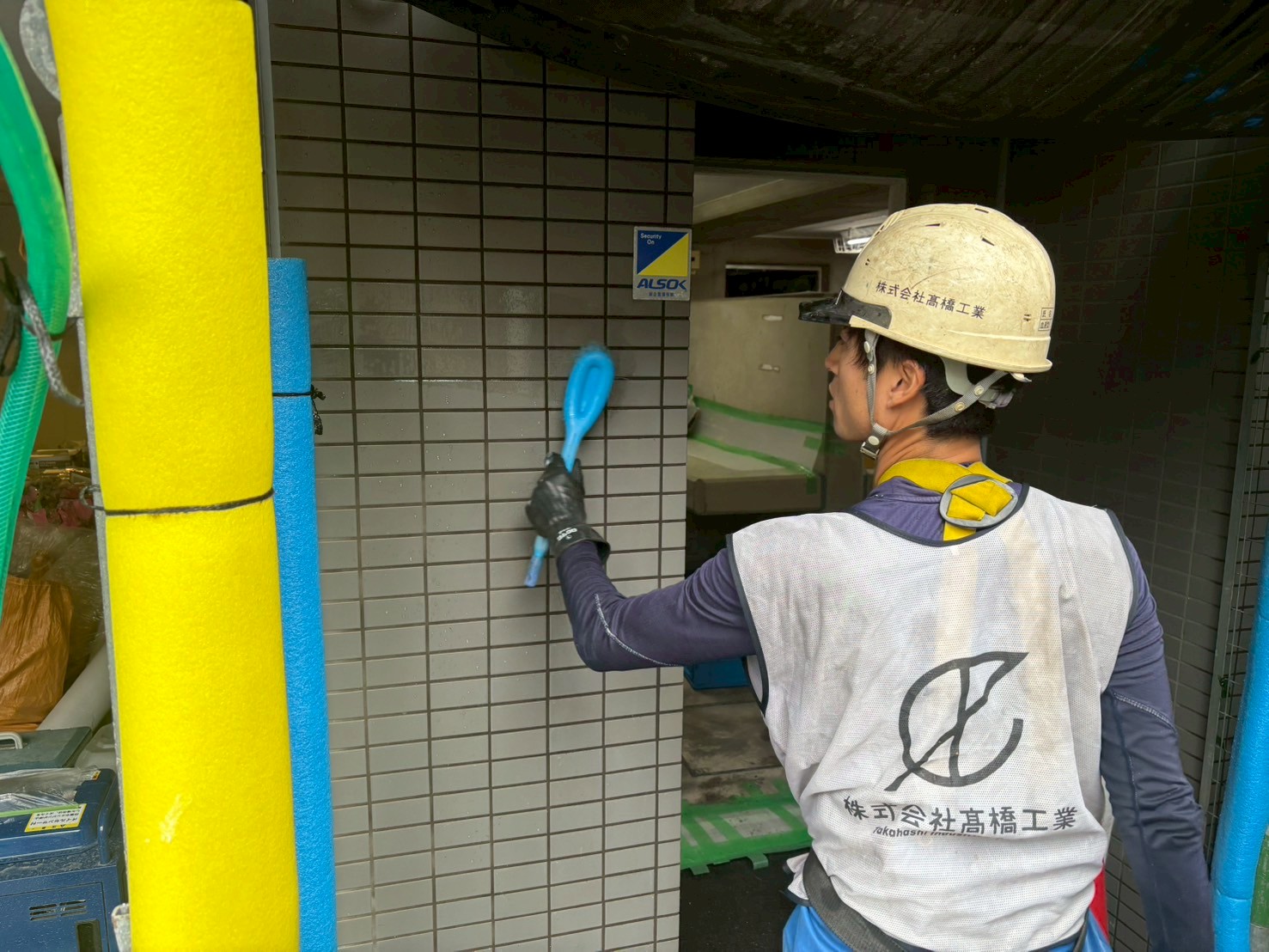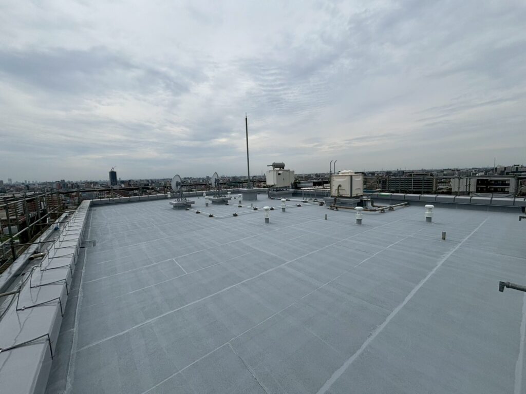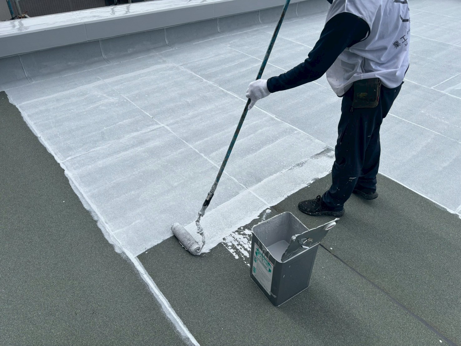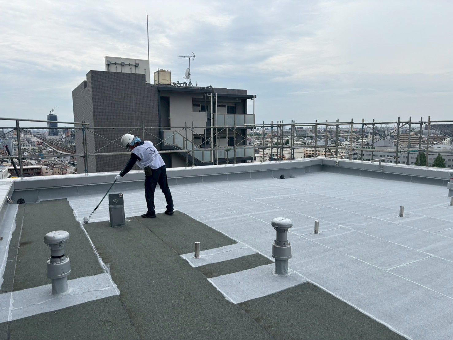 A棟15階から9階のウレタン防水はトップコート塗布をおこない完了いたしました。