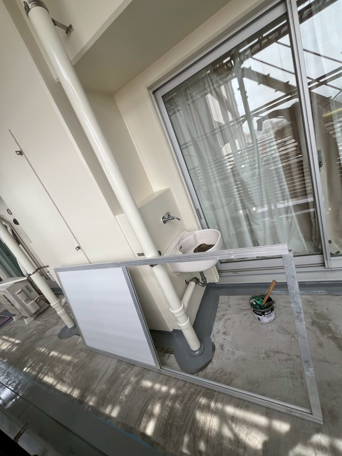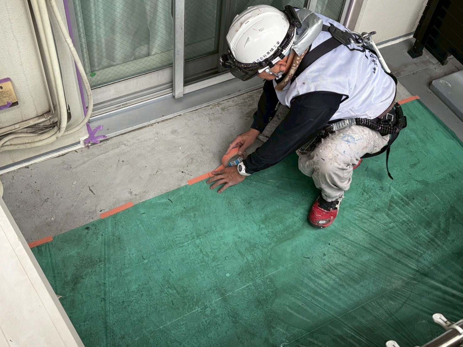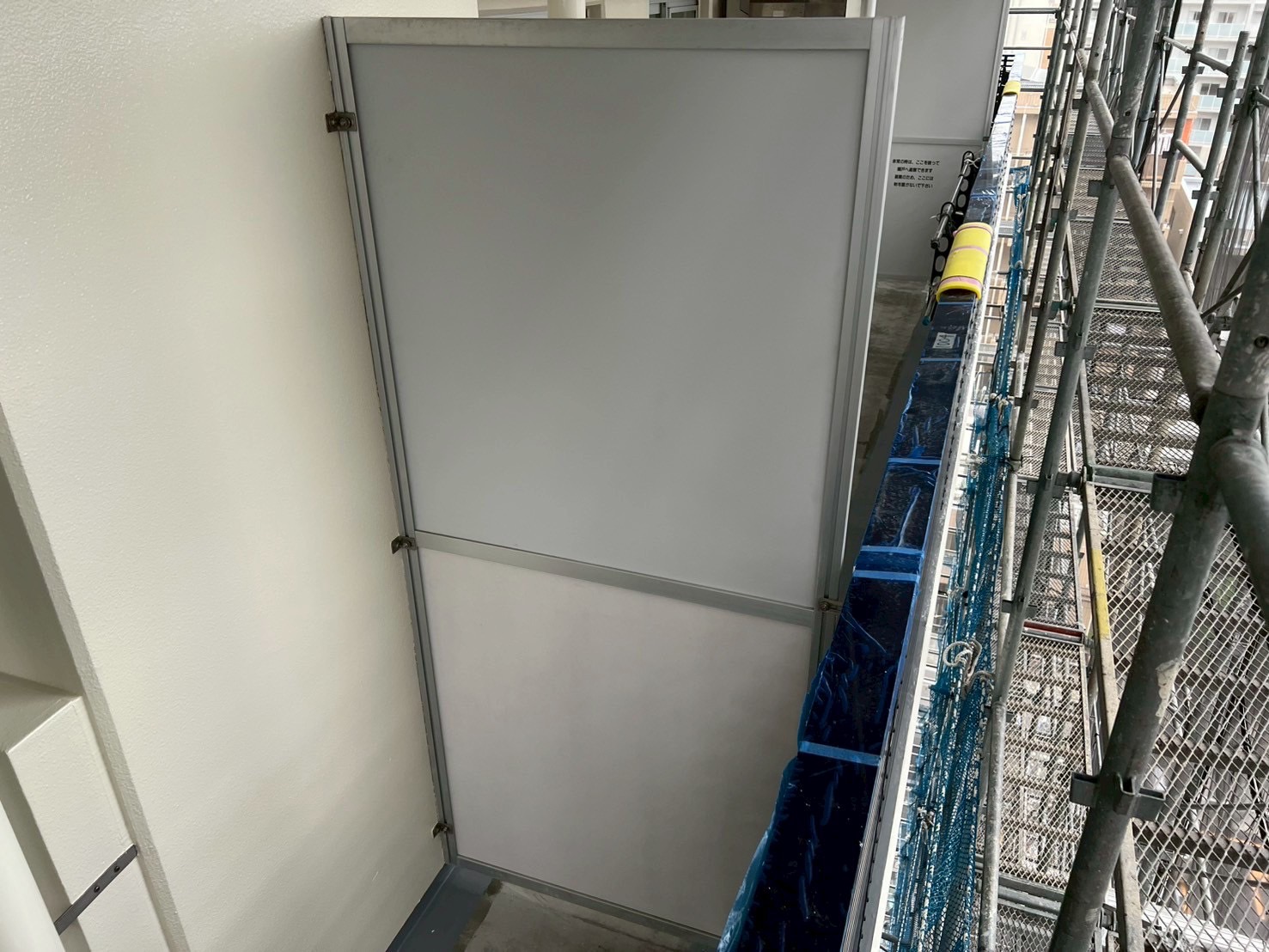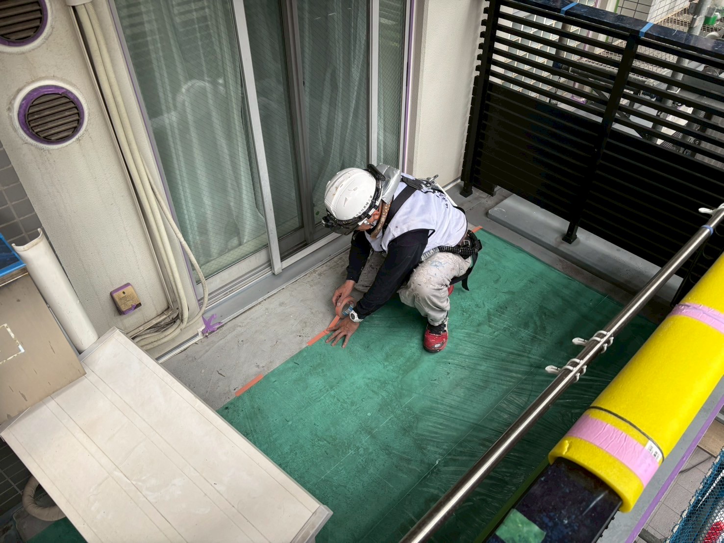 B棟バルコニーは養生が始まりバルコニーが使用できなくなりご迷惑をおかけいたしますがご理解ご協力をお願いいたします。