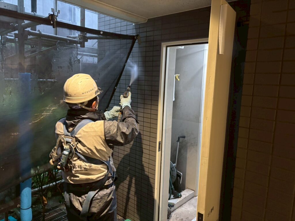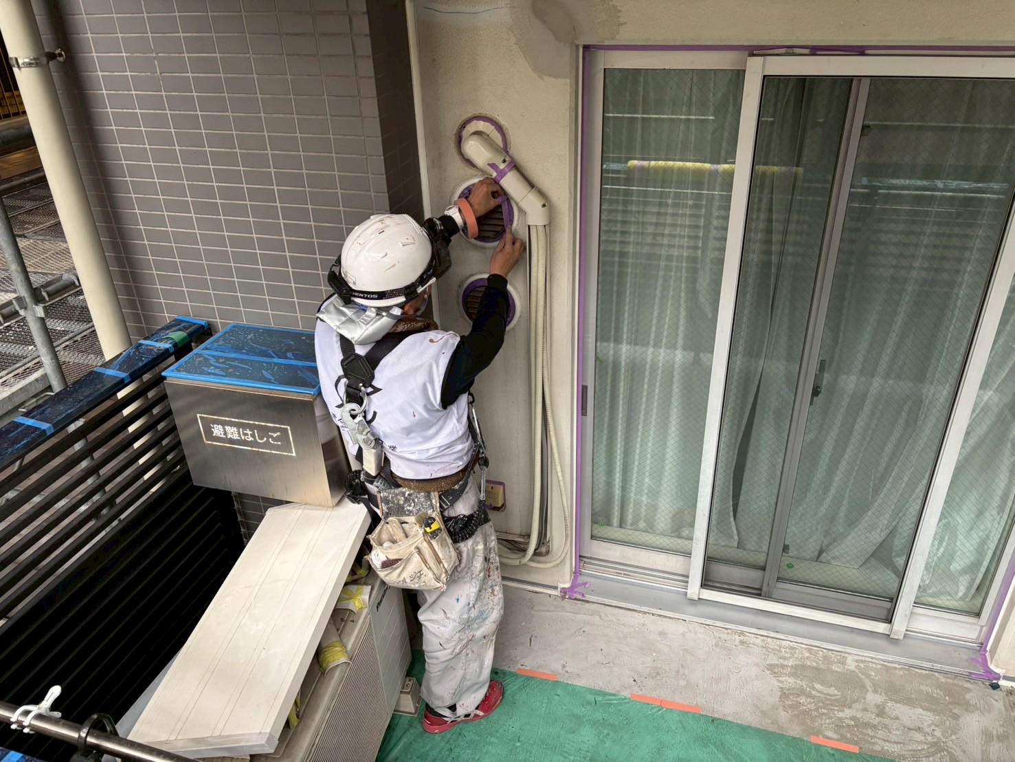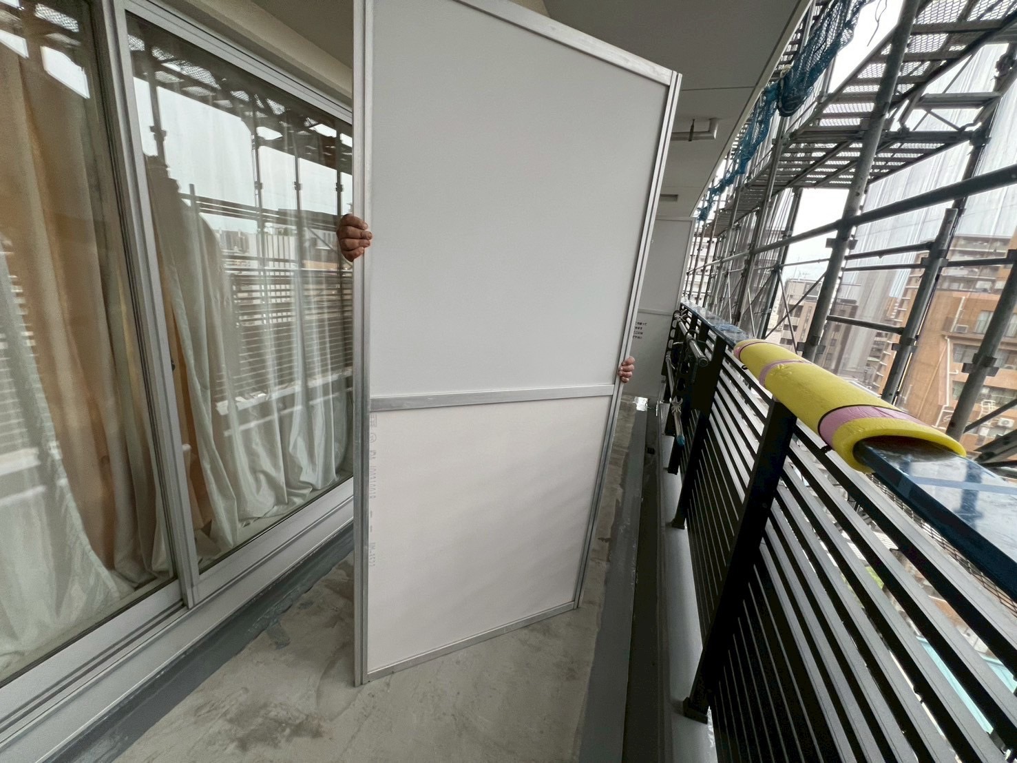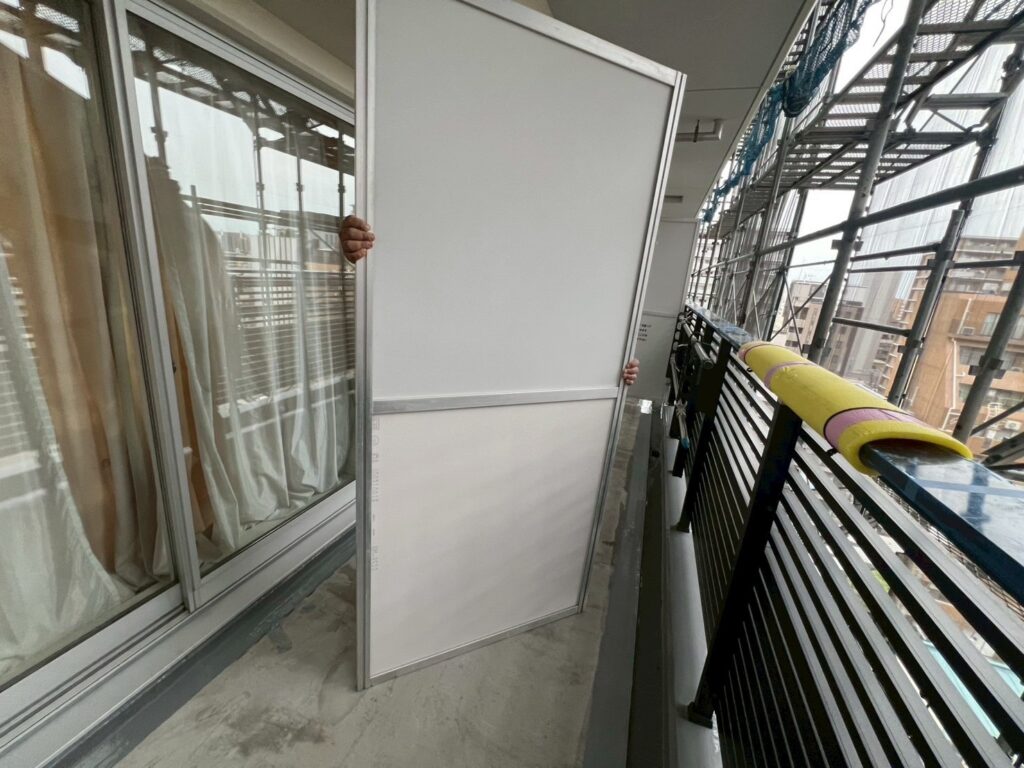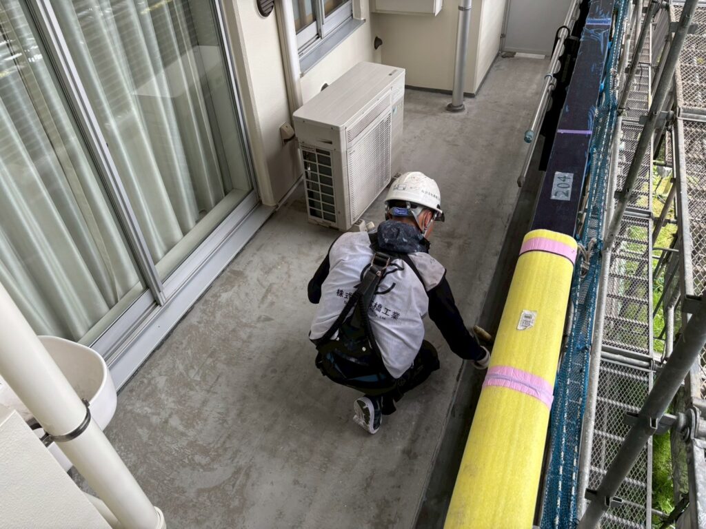 B棟バルコニーは養生が始まりバルコニーが使用できなくなりご迷惑をおかけいたしますがご理解ご協力をお願いいたします。