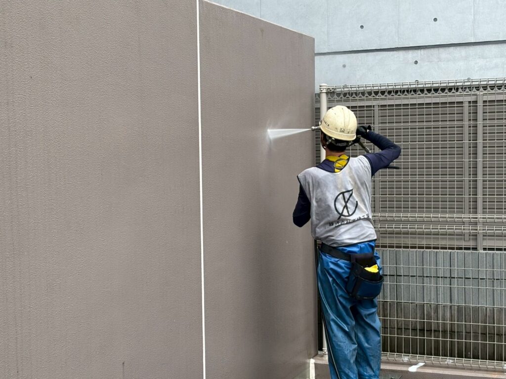 B棟北面、西面、駐車場内壁の洗浄工事をおこないました。