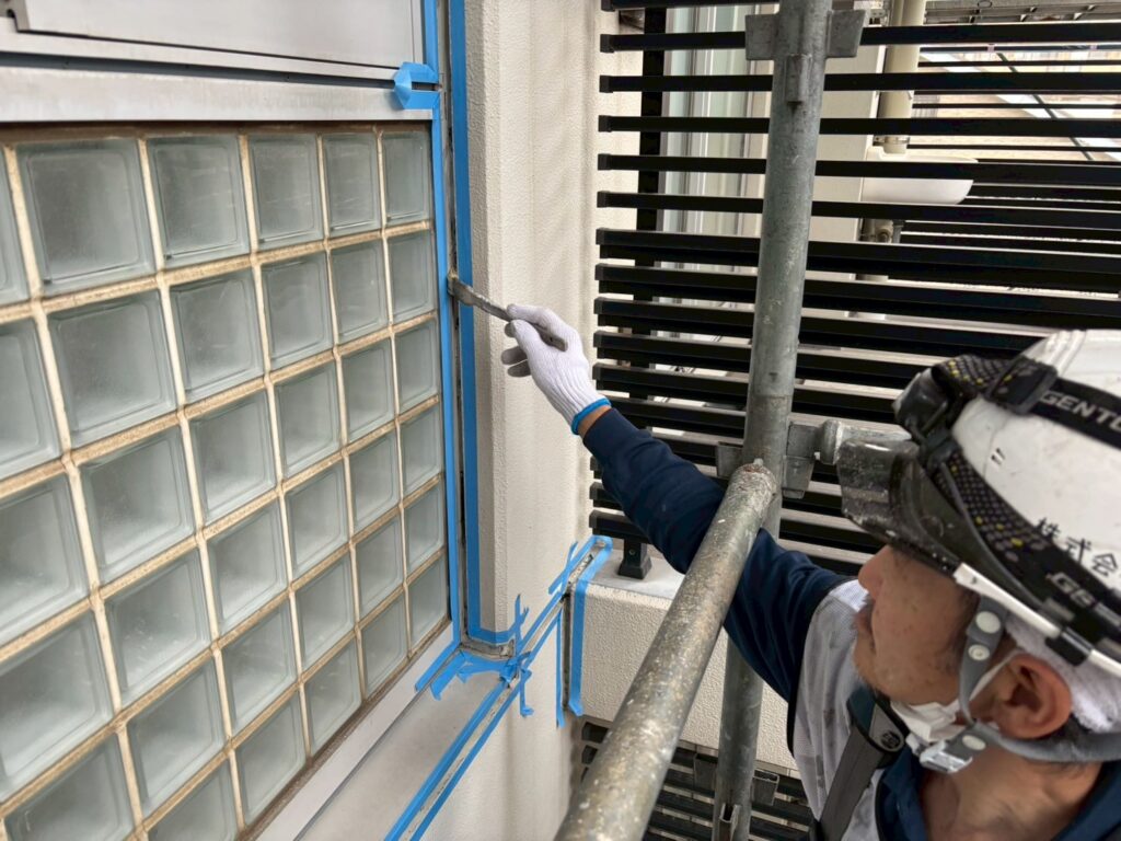 B棟東面(エントランス側)のシーリングの打ち替えをおこないました。