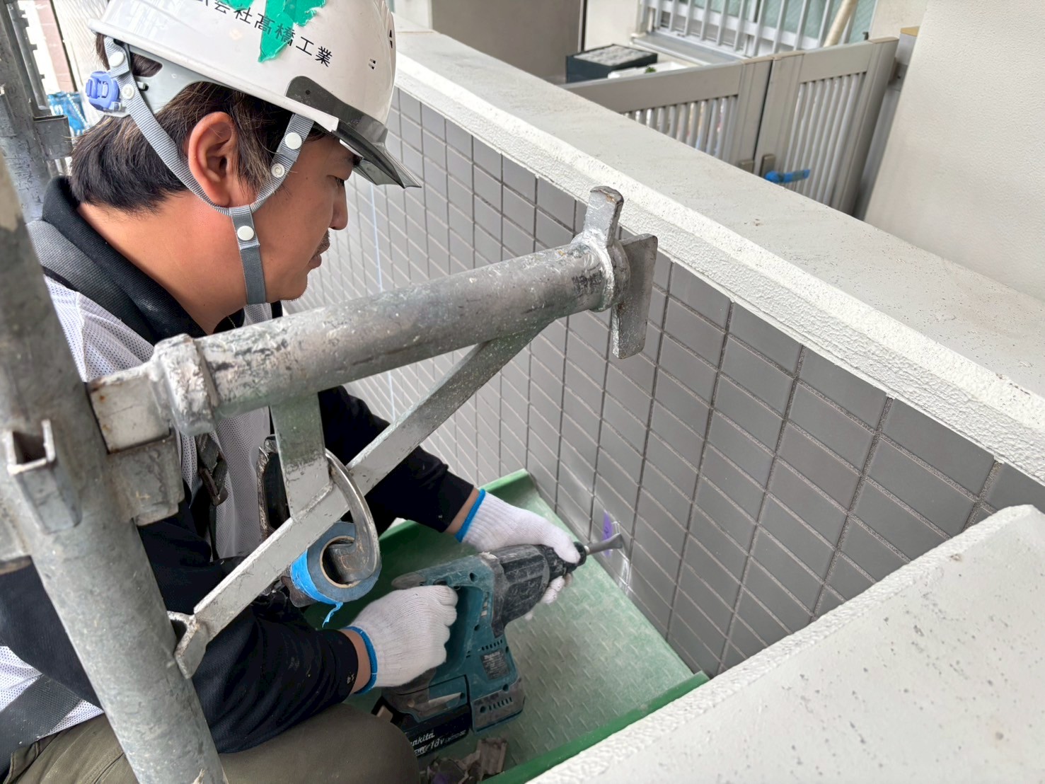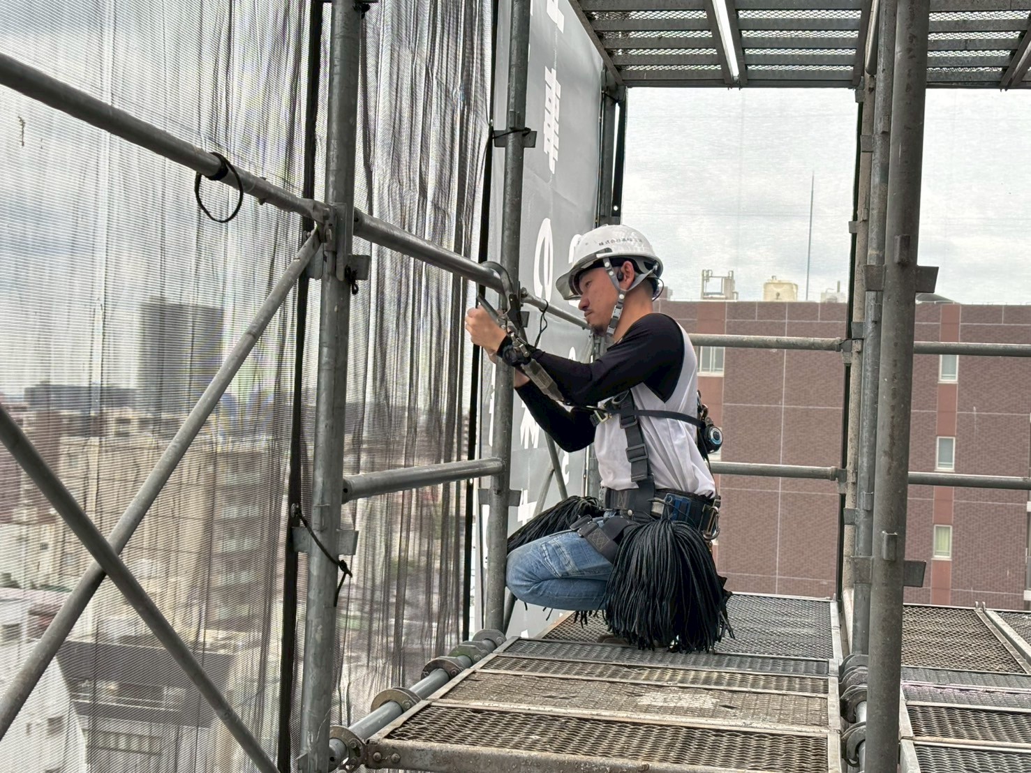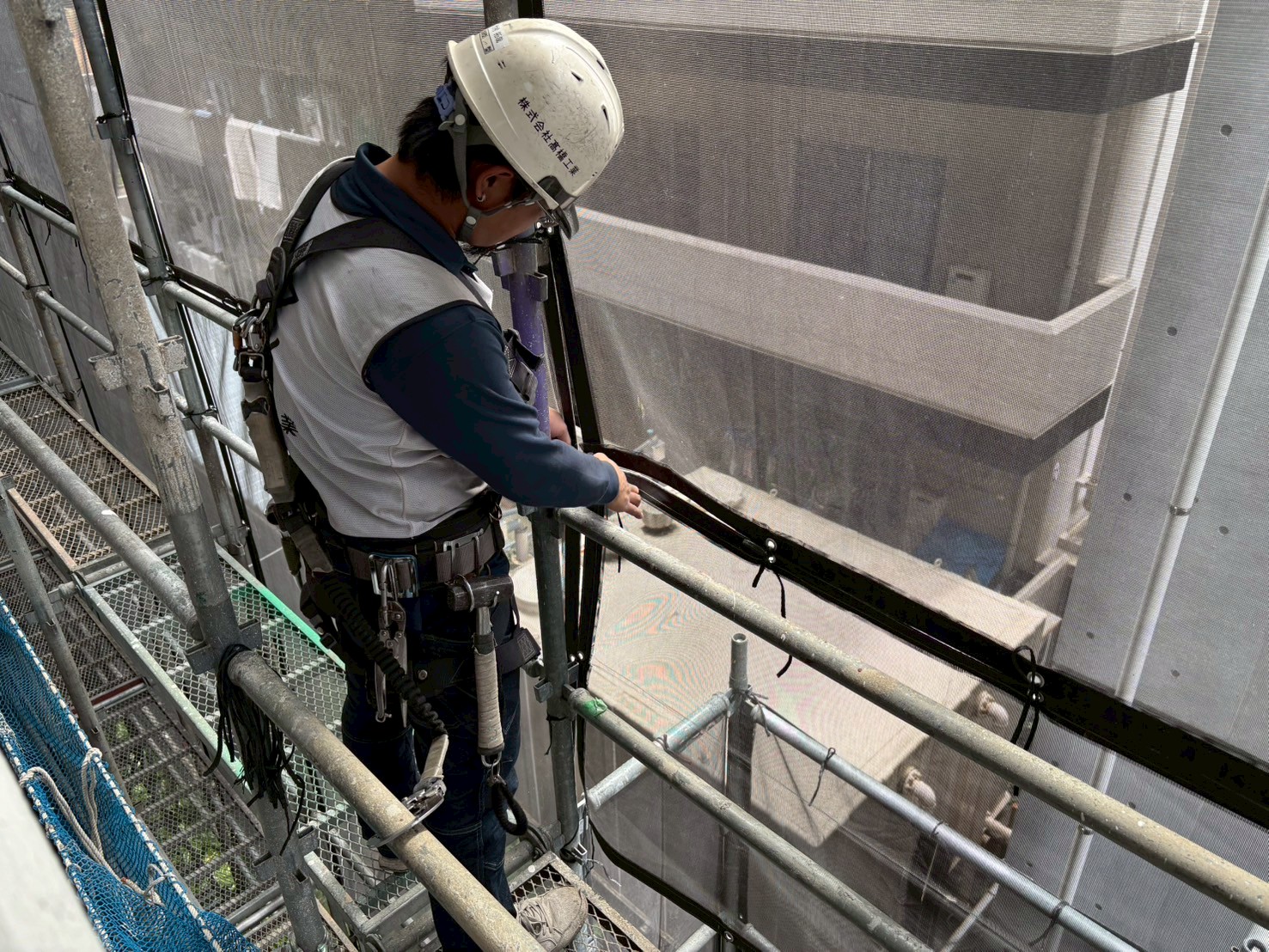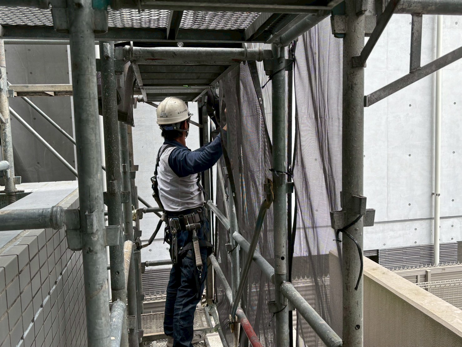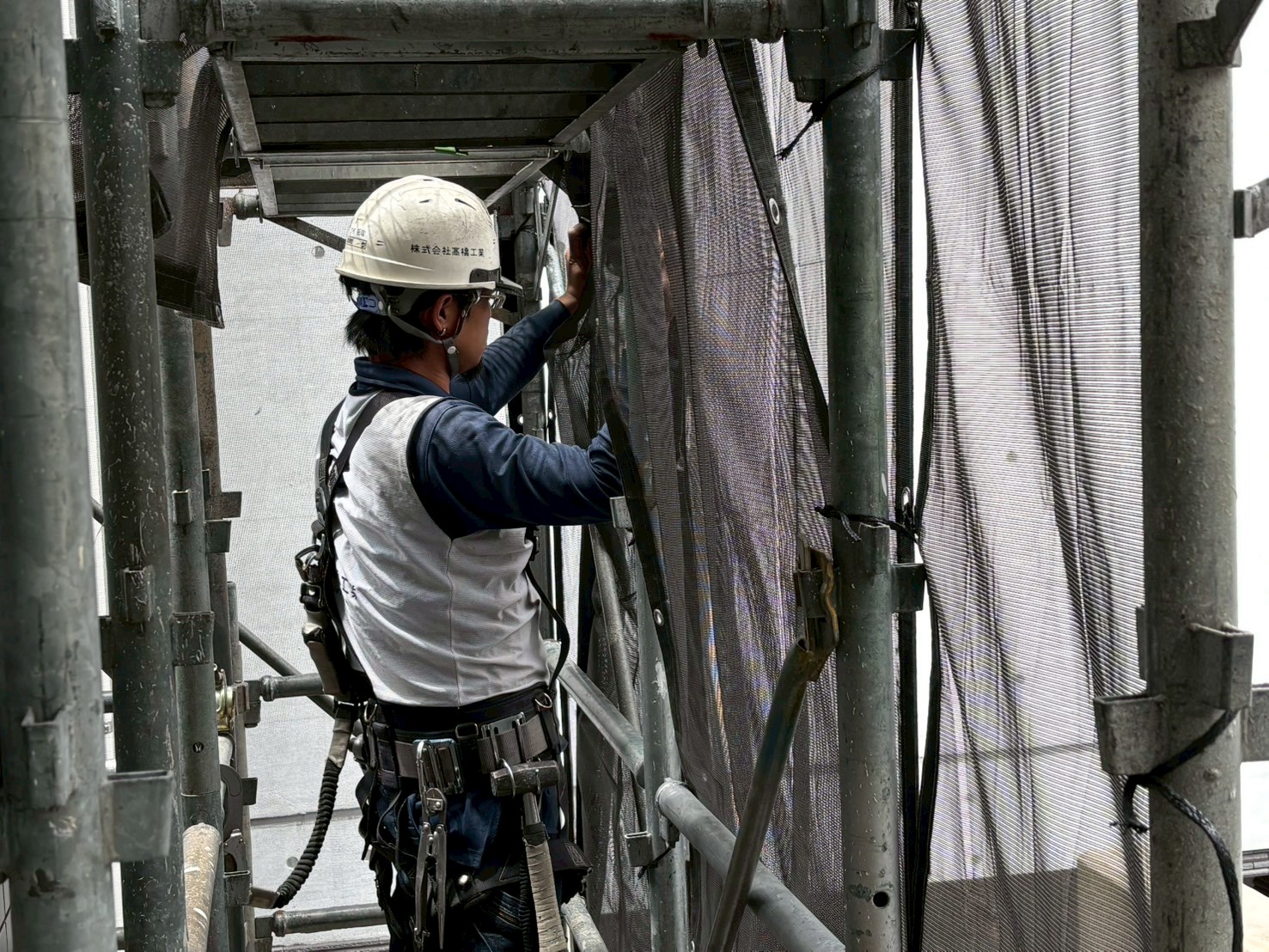 落下防止養生、飛散防止養生、金網設置等をおこないました。
