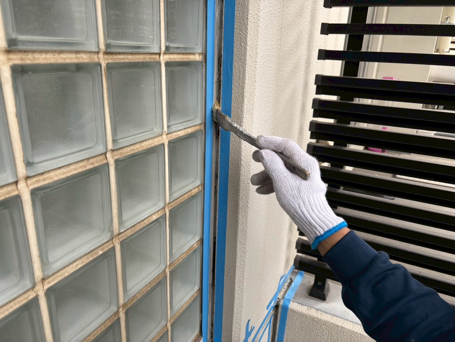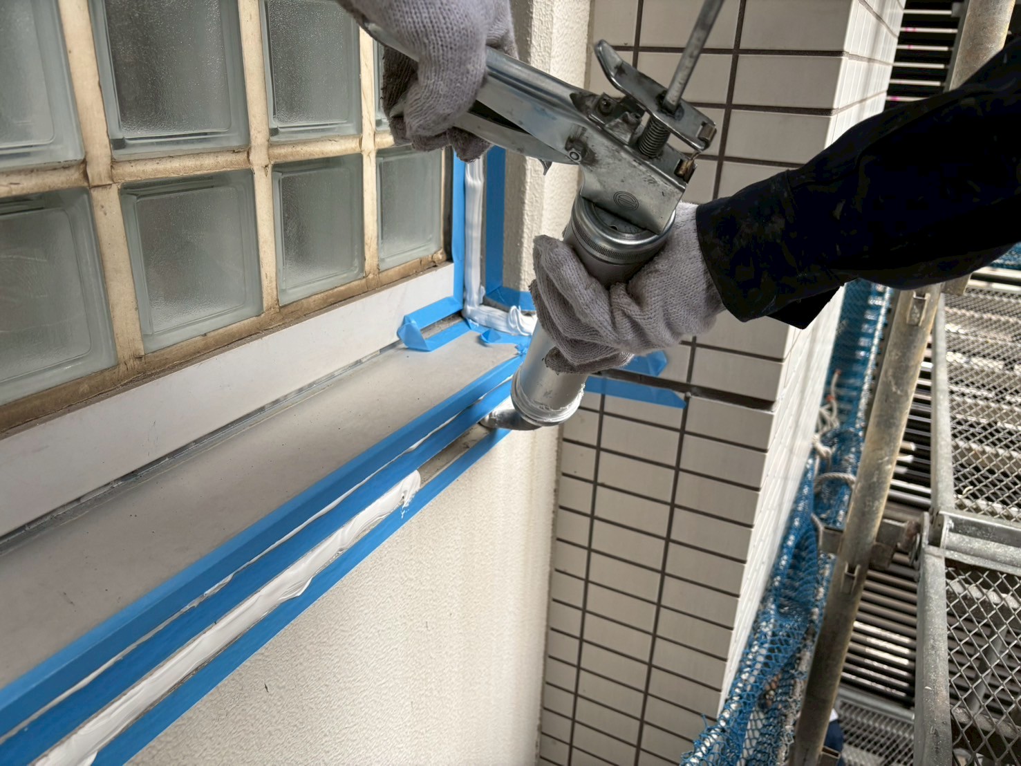 B棟東面(エントランス側)のシーリングの打ち替えをおこないました。