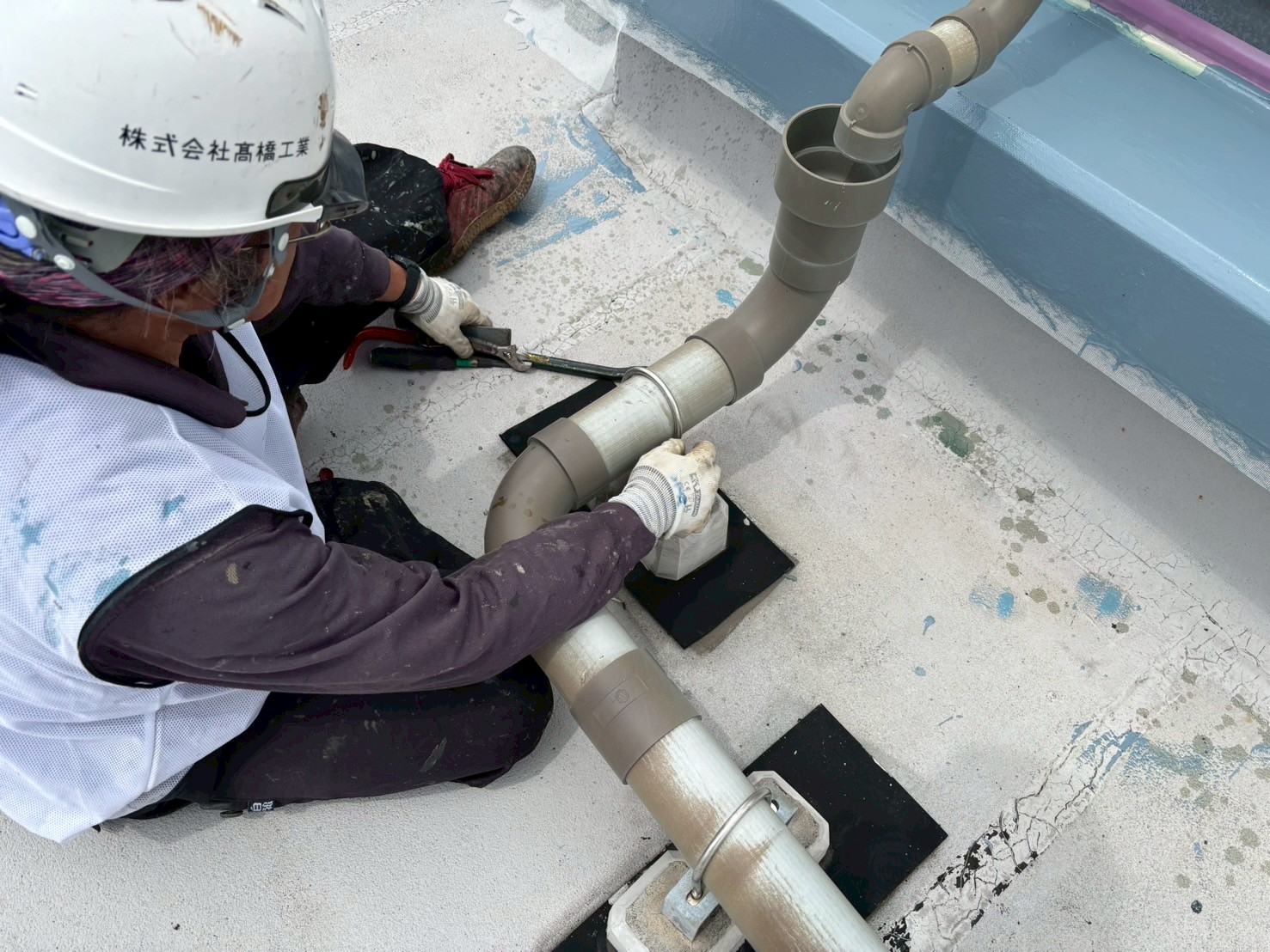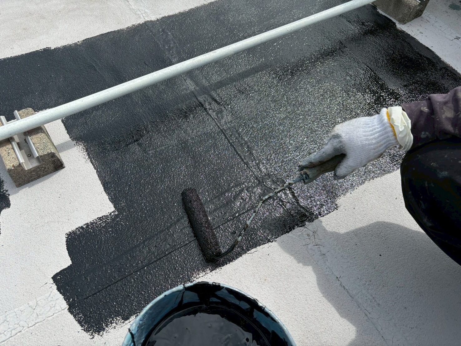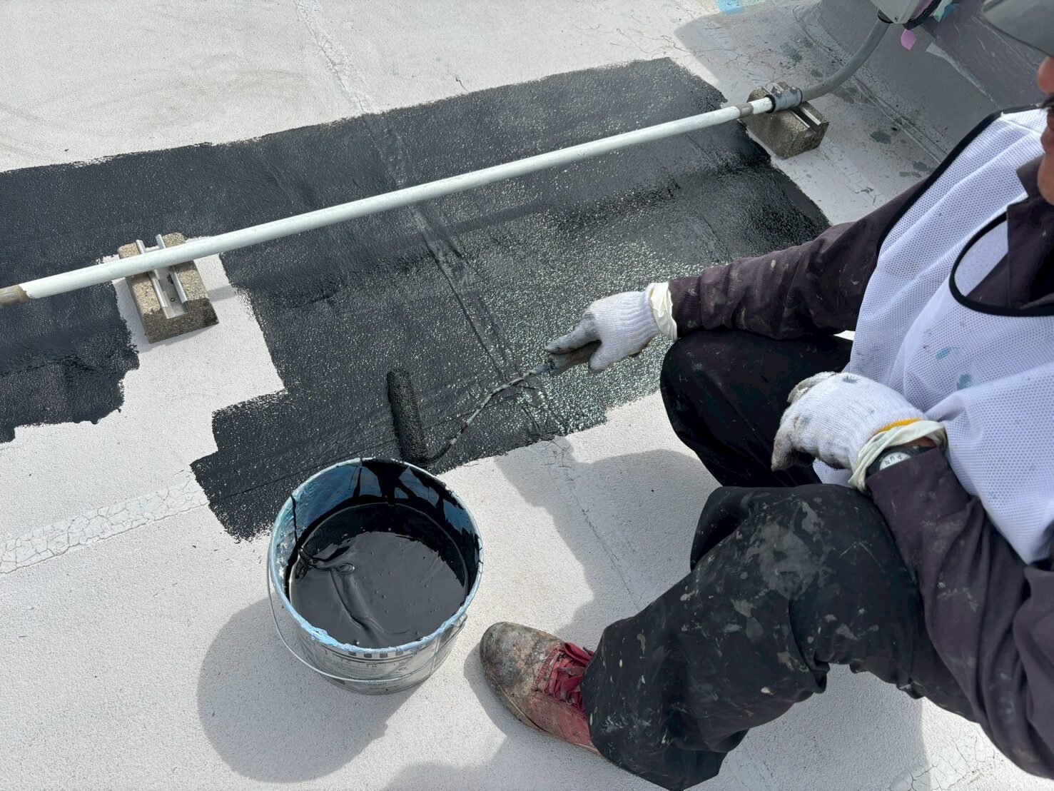 A棟屋上のパラペットのウレタン2層目、B棟屋上の下地調整をおこないました。