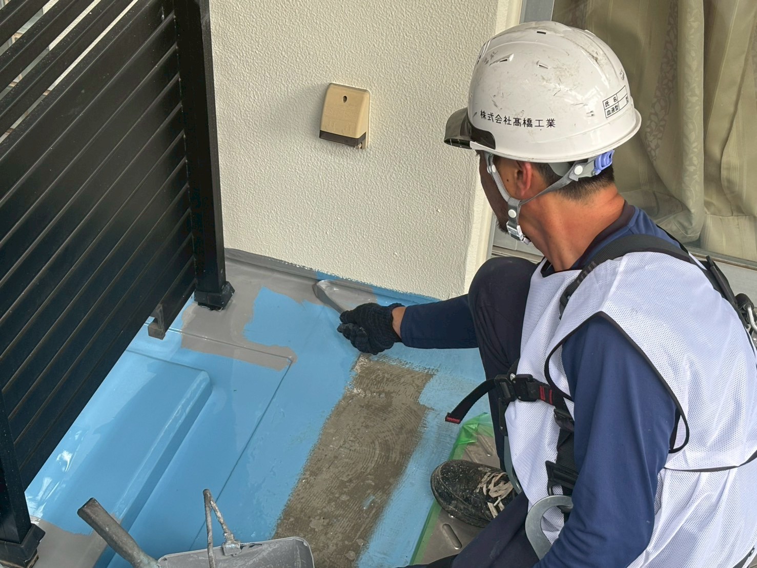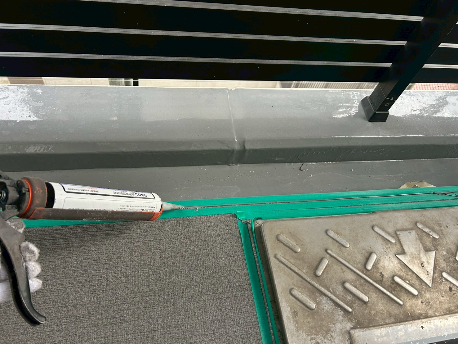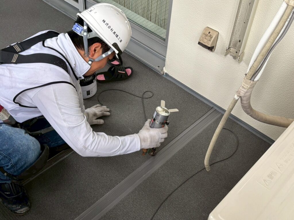数時間で表面は硬化しますが完全効果まで2日間程度かかるため、触らないようにバルコニーの使用は