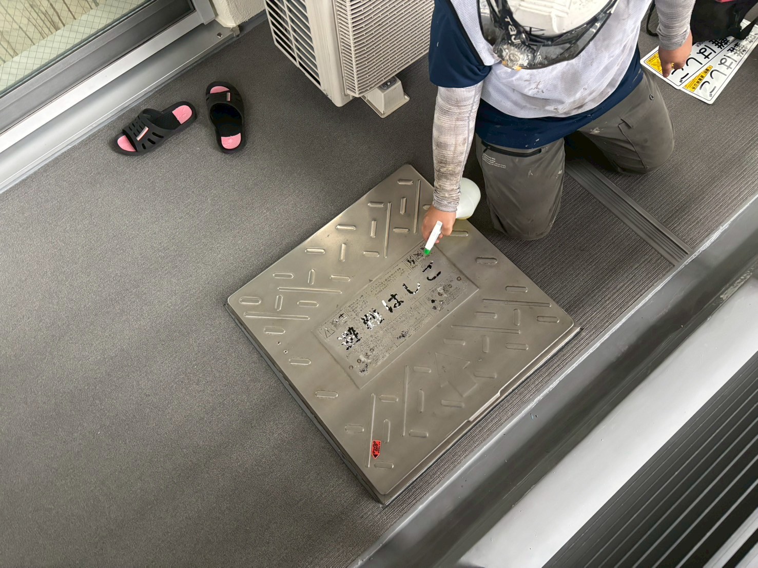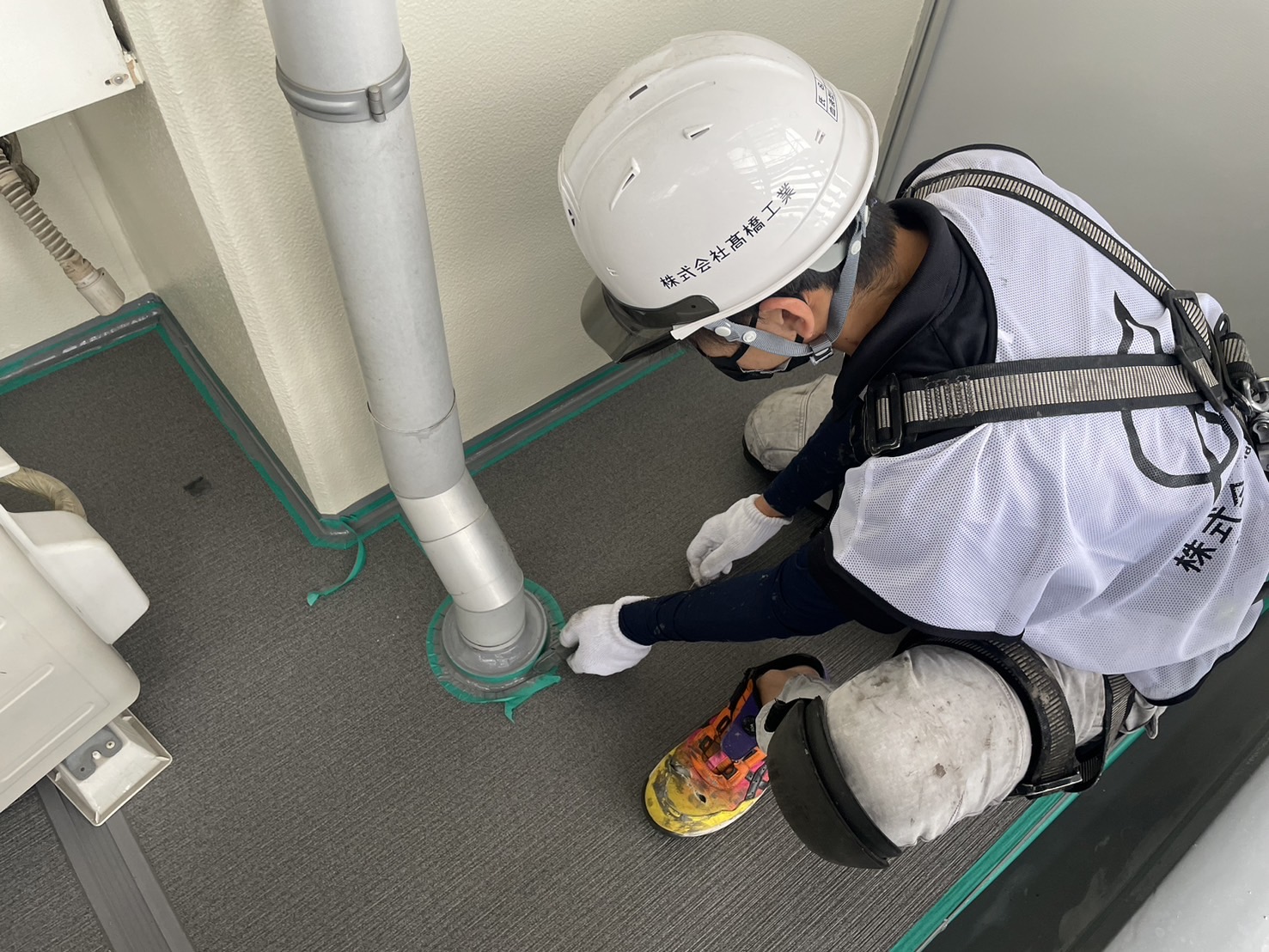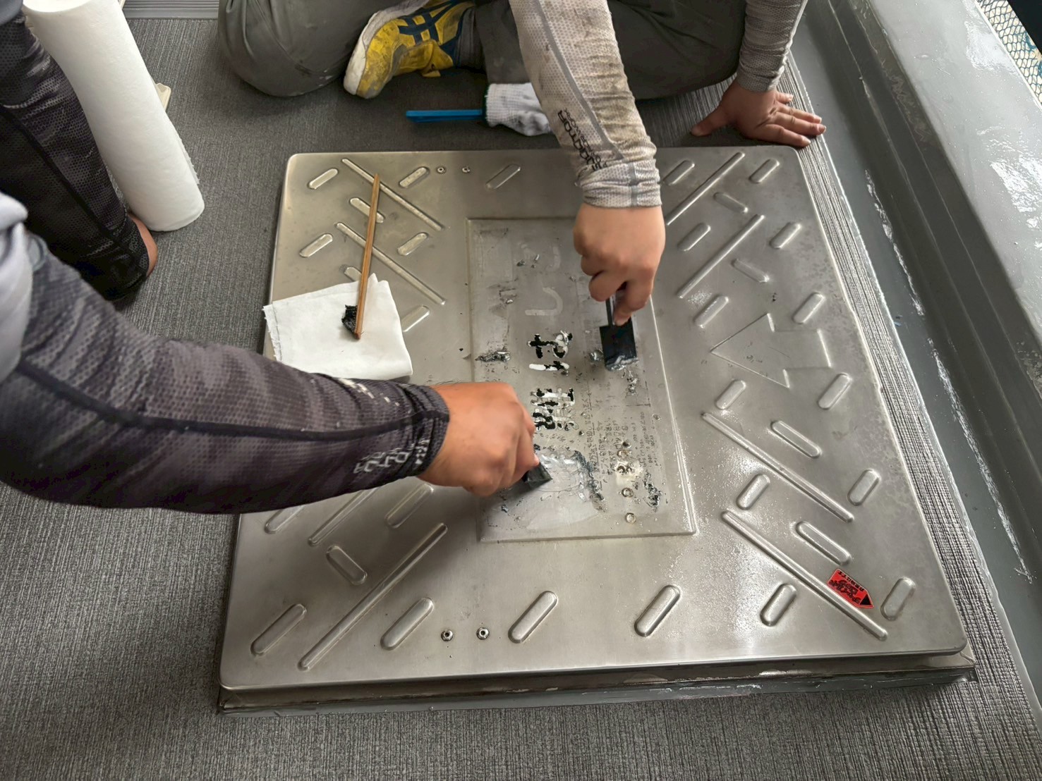 スリムダクトの復旧、避難ハッチのシール張替え作業をおこないました。