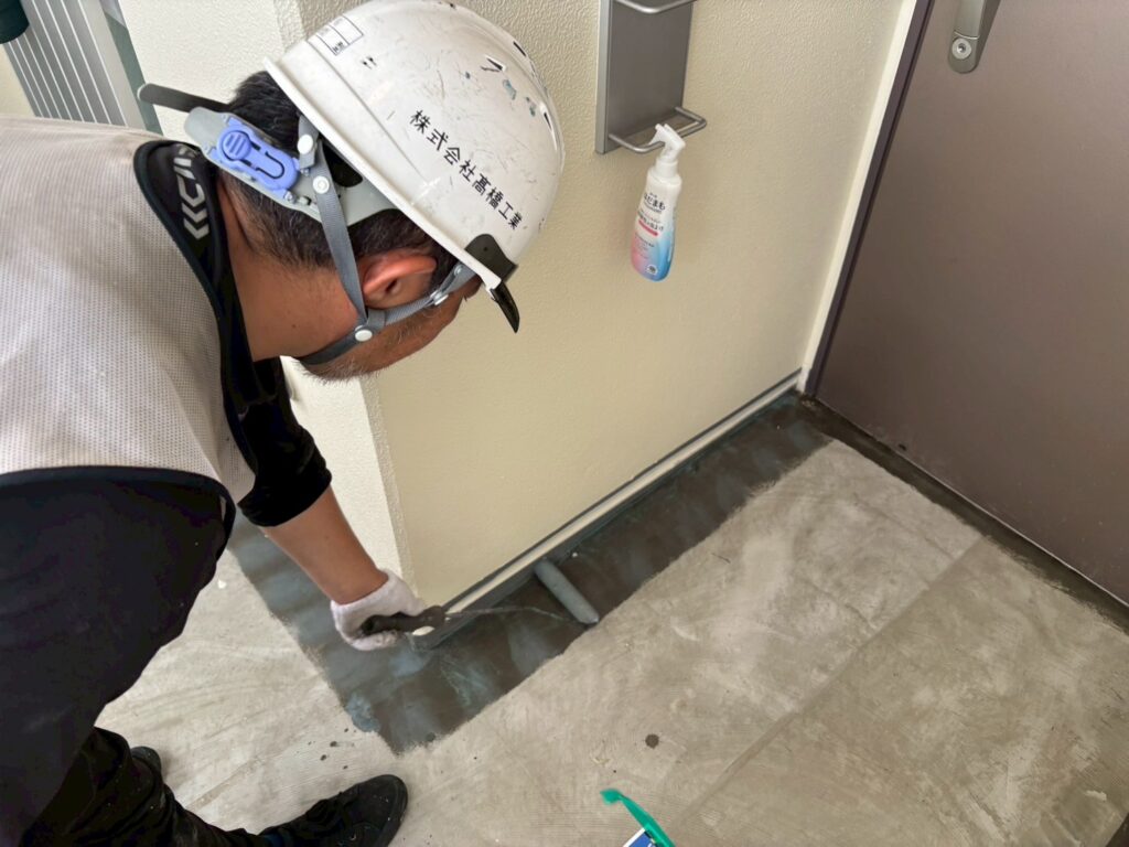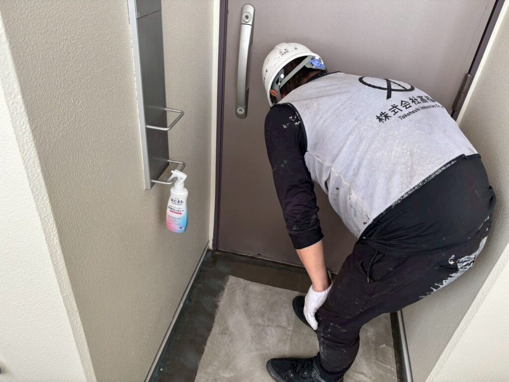 また共用廊下の清掃、ケレン、プライマー塗布作業をいたしました。