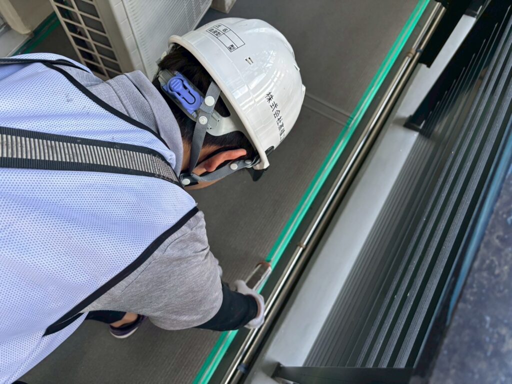 共用廊下のMB扉ビス交換、A棟バルコニーのスリムダクト戻しをいたしました。